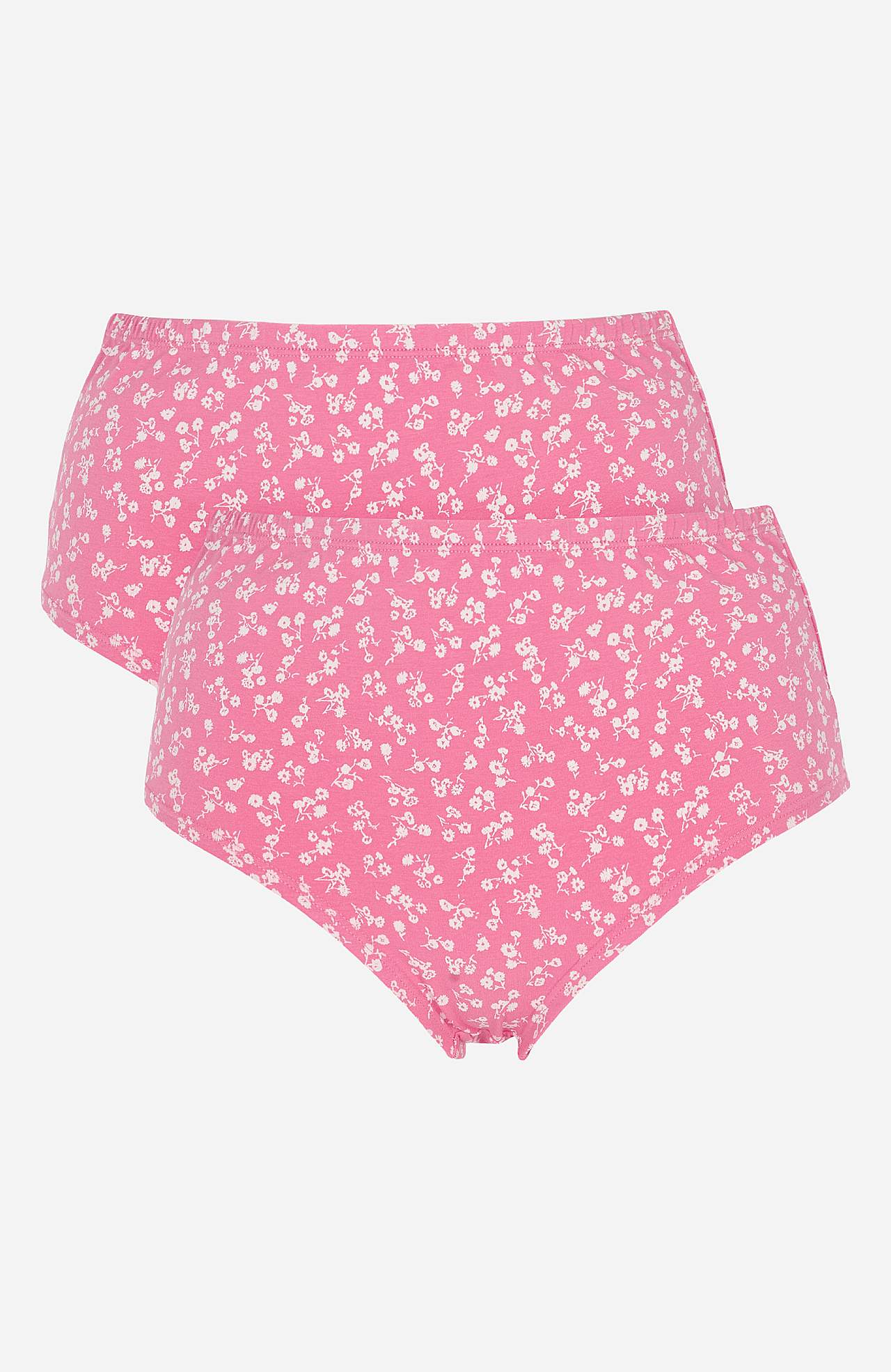 Malli korkealla vyötäröllä. Pehmeä, upotettu kuminauha vyötäröllä. Elastiset ompelut jalkojen aukoissa. Puuvillavuorellinen haarakiila.