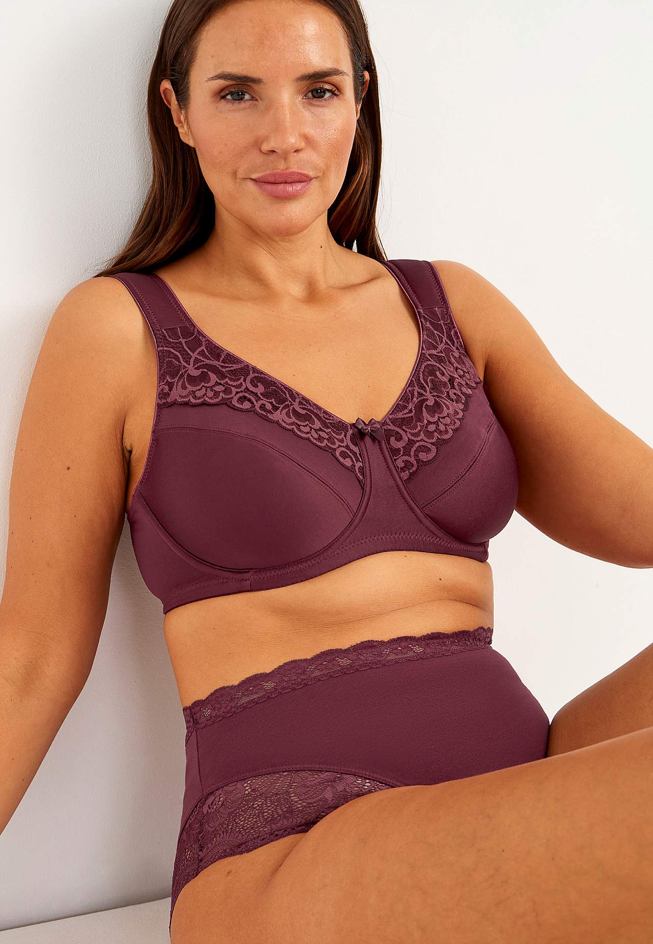 Toppaamattomat kaaritukiliivit kauniilla, elastisella pitsillä. Muovaillut, rintoja hyvin tukevat kupit. Kupin yläosa pitsillä ylhäällä. Litteät kuppisaumat. Leveät, topatut säädettävät olkaimet. 2-rivinen napitus takana, 3-rivinen napitus isommissa ko’oissa. Hienovarainen pieni rusetti sävy sävyyn -värillä.