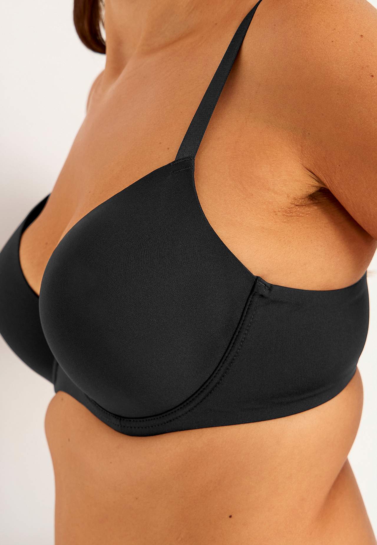 Säädettävät olkaremmit. Push up-vaikutus. Kaaritukiliivit. Topattu kuppi push-up efektillä. Säädettävät olkaimet. 2-rivinen napitus takana, 3-rivinen napitus isommissa ko’oissa.