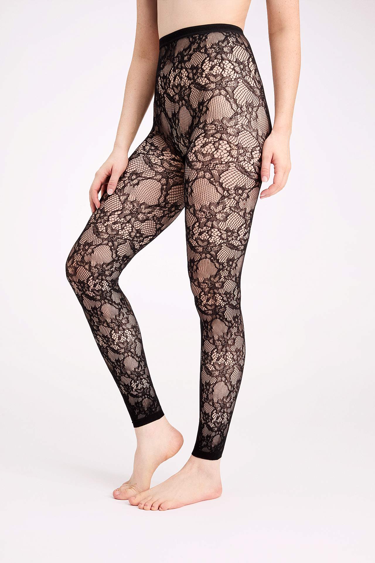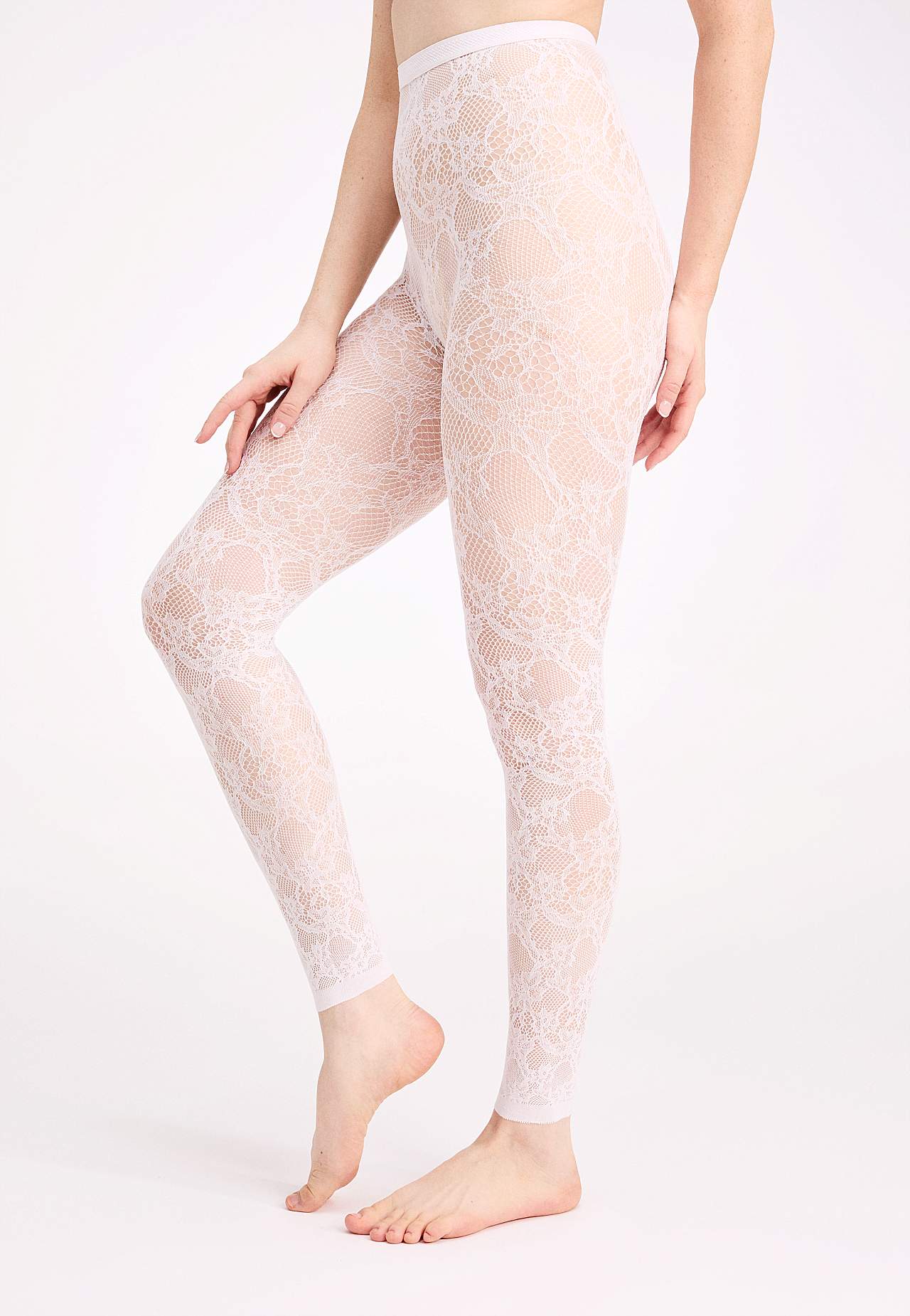 Läpinäkyvät, joustavat pitsileggingsit elegantilla kuvioinnilla. Vartalonmyötäinen istuvuus. Normaalikorkuinen vyötärö mukavalla, ohuella joustavalla reunalla. Vuorattu haarakiila. Puolihimmeä viimeistely. Suorat lahkeen pituudet. 60 denier.