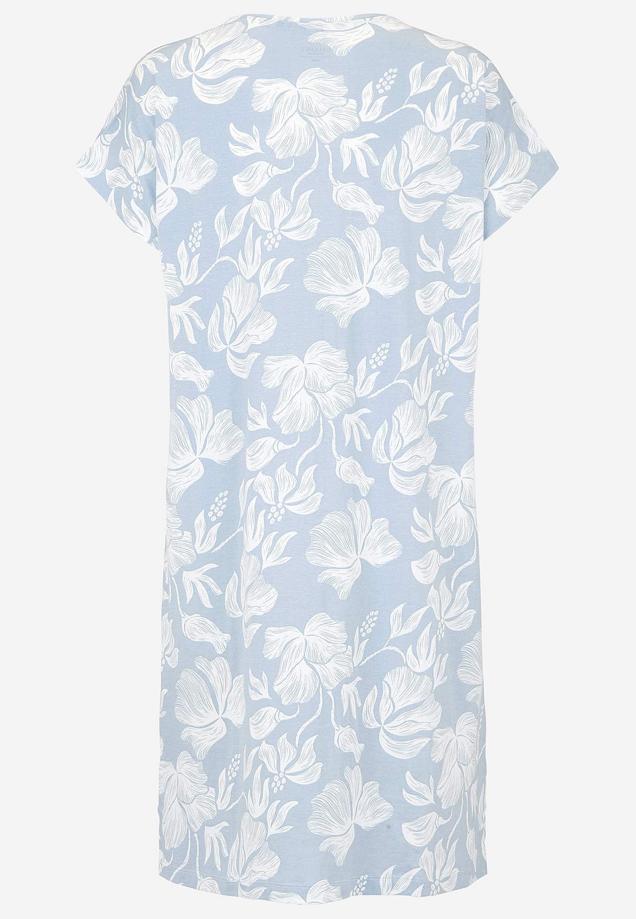 Lyhyt yömekko pehmeästä luomupuuvillasta. Rento, suora istuvuus. Pyöreä kaula-aukko. Lyhyet holkkihihat. Suora helma halkiolla sivuilla. Takapituus olkapäältä koon mukaan noin 95-105 cm.