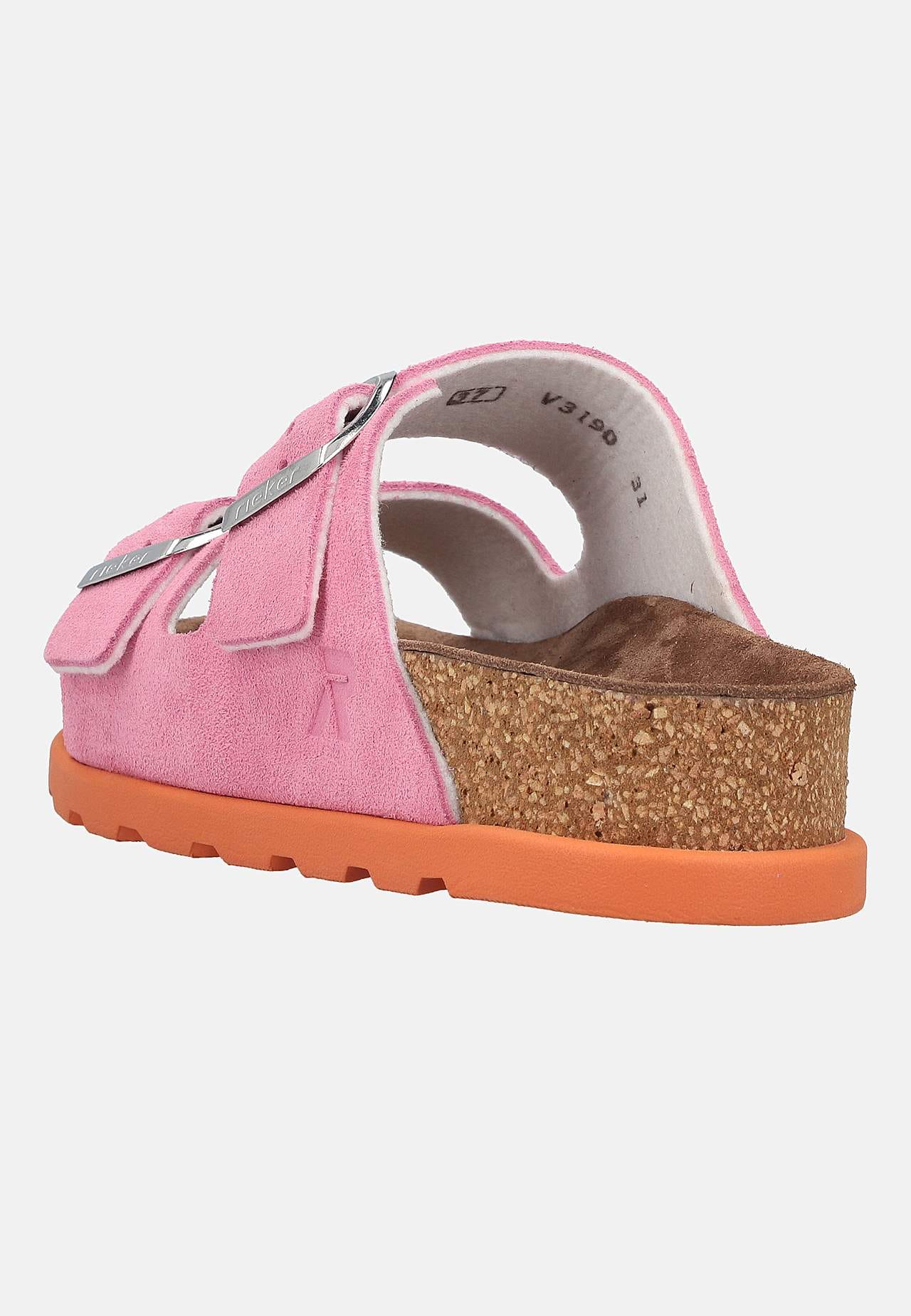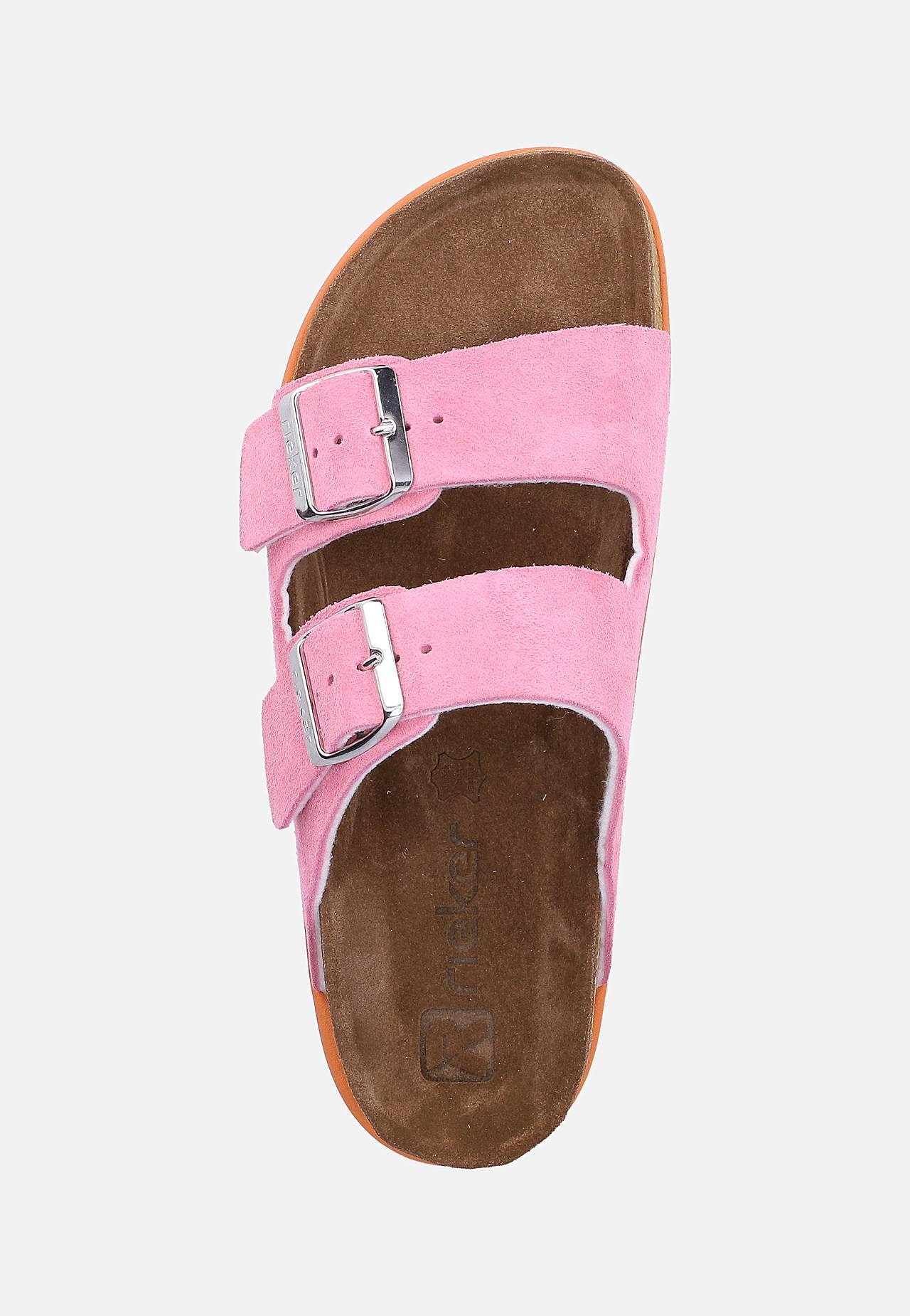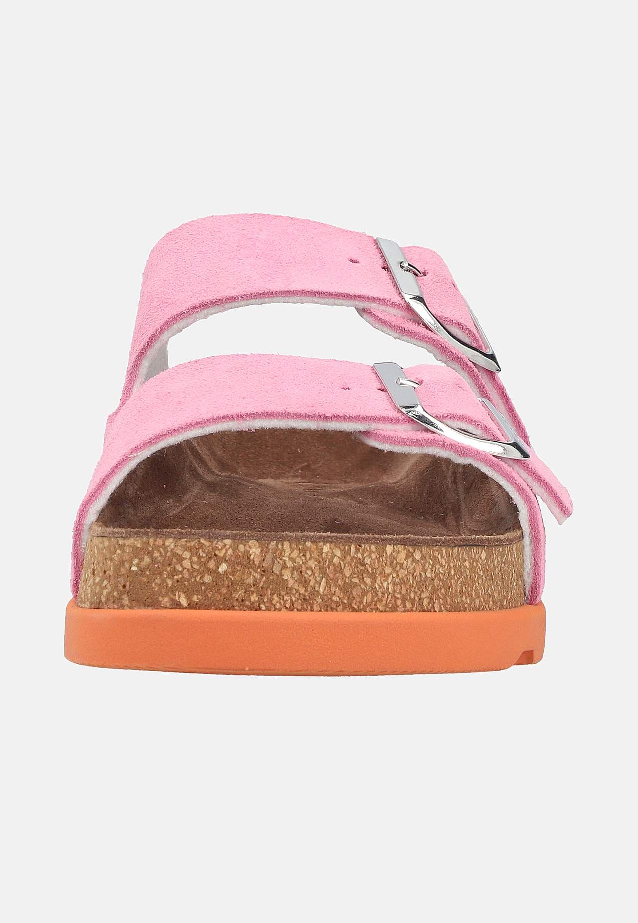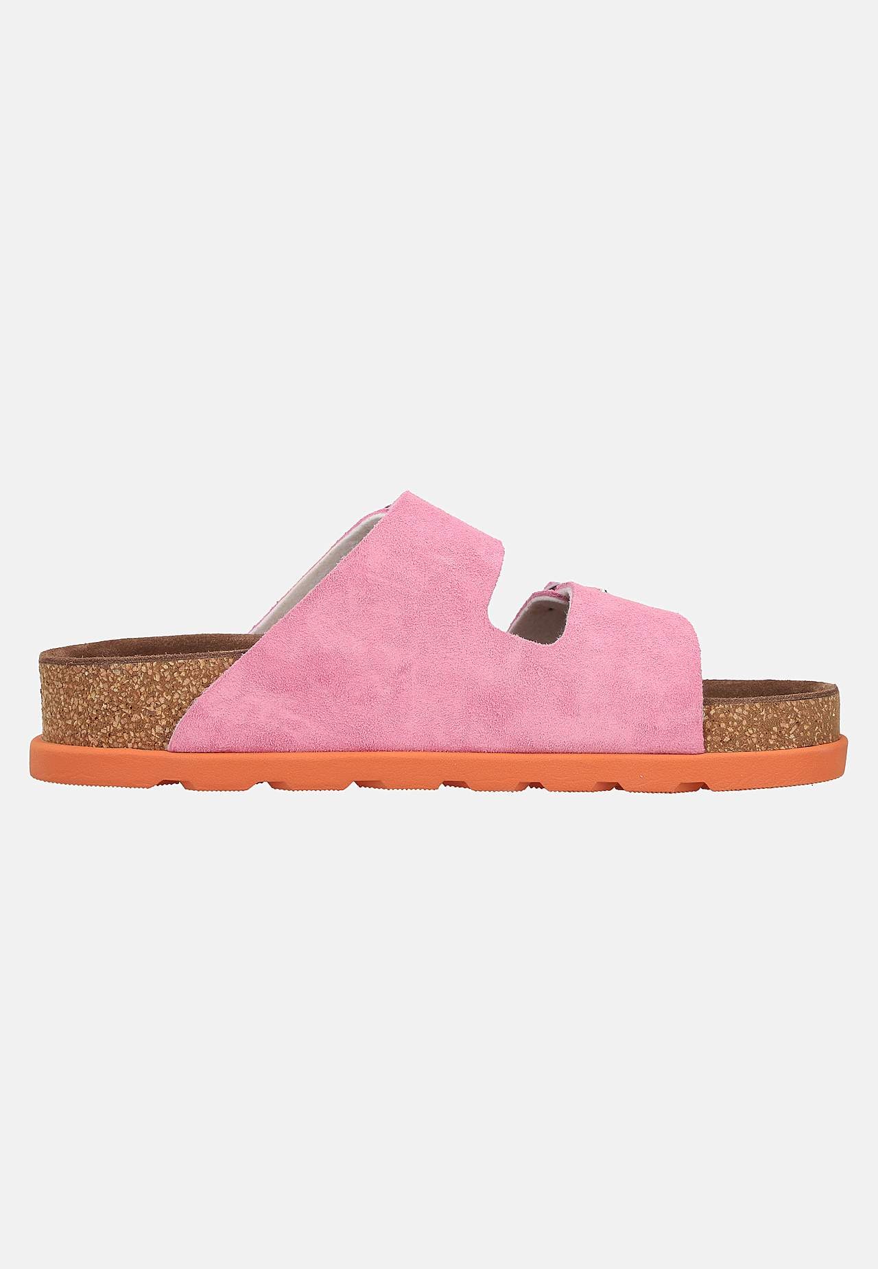 Jalkaan vedettävä nahkasandaali. Säädettävät hihnat parasta istuvuutta varten. Sisäpohja tuella parasta mukavuutta varten. Korkkikuvioitu pohja. Päällinen nahasta. Vuori nahasta ja tekokuidusta. Sisäpohja nahasta. Ulkopohja tekokuidusta.