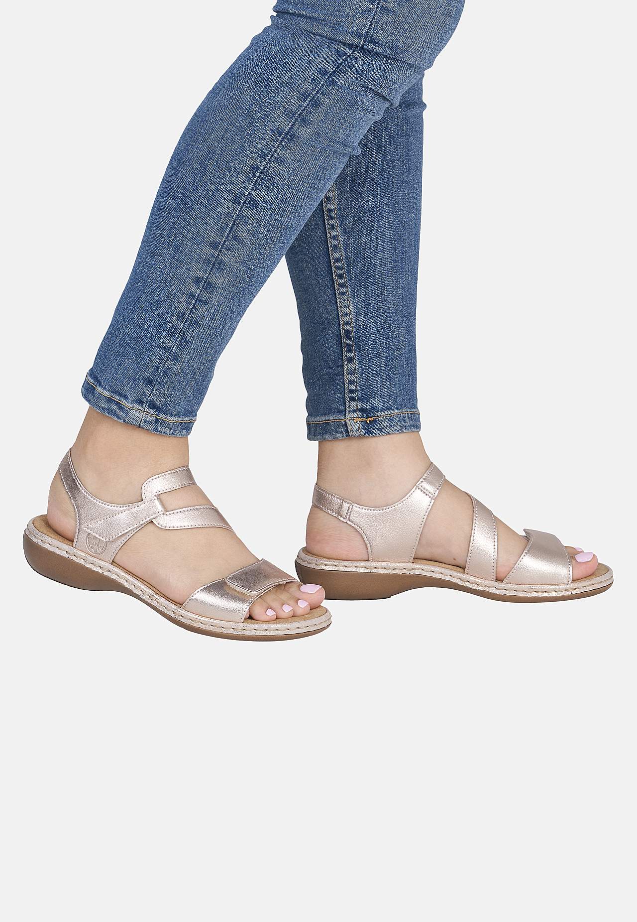 Tyylikkäät hihnat elegantilla muotoilulla. Kätketty, säädettävä tarranauhakiinnitys ranteessa ja edessä. Pehmeä, mukava sisäpohja. Kestävä ulkopohja. Antistress: Katso alta. Päällinen nahasta. Vuori tekokuidusta. Sisäpohja tekstiilistä. Ulkopohja tekokuidusta. Antistress