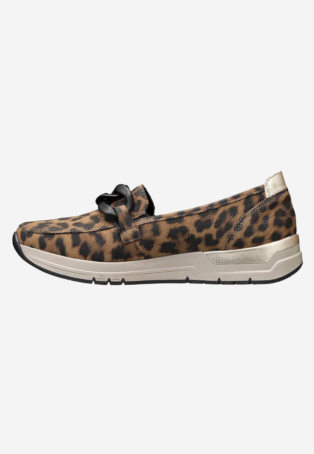 Pistokaskenkä koristekiinnityksellä muovista. Musta väri mokka-lookilla. Leopardikuvio sileästä tekonahasta. Käytännölliset joustavat varsikiristykset helppoa pukemista ja riisumista varten. Topattu, pehmeä, irrotettava sisäpohja. Kontrastivärinen ulkopohja kultayksityiskohdilla. Kuvioitu kumipohja hyvällä pidolla. Logoyksi... Lue lisää