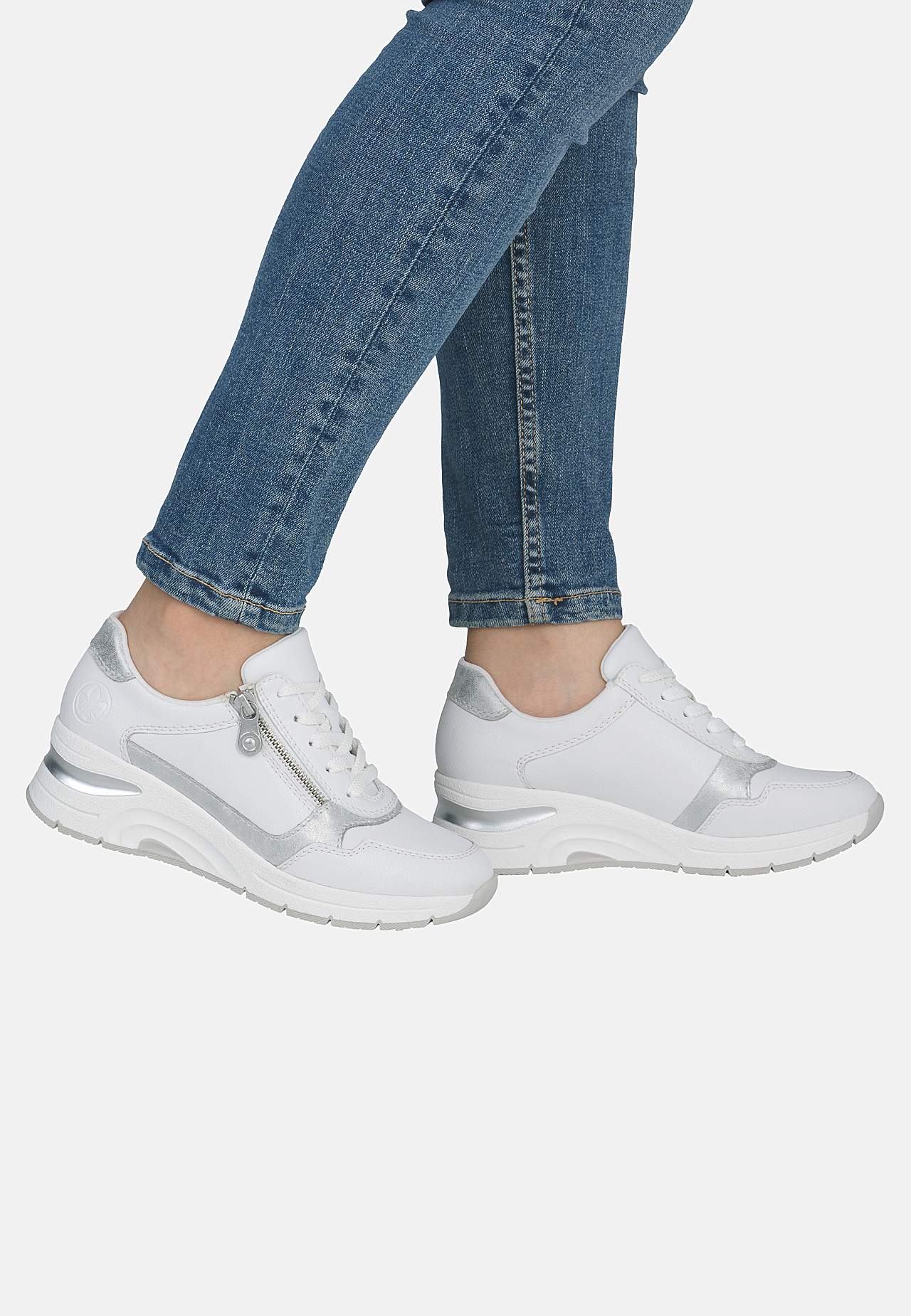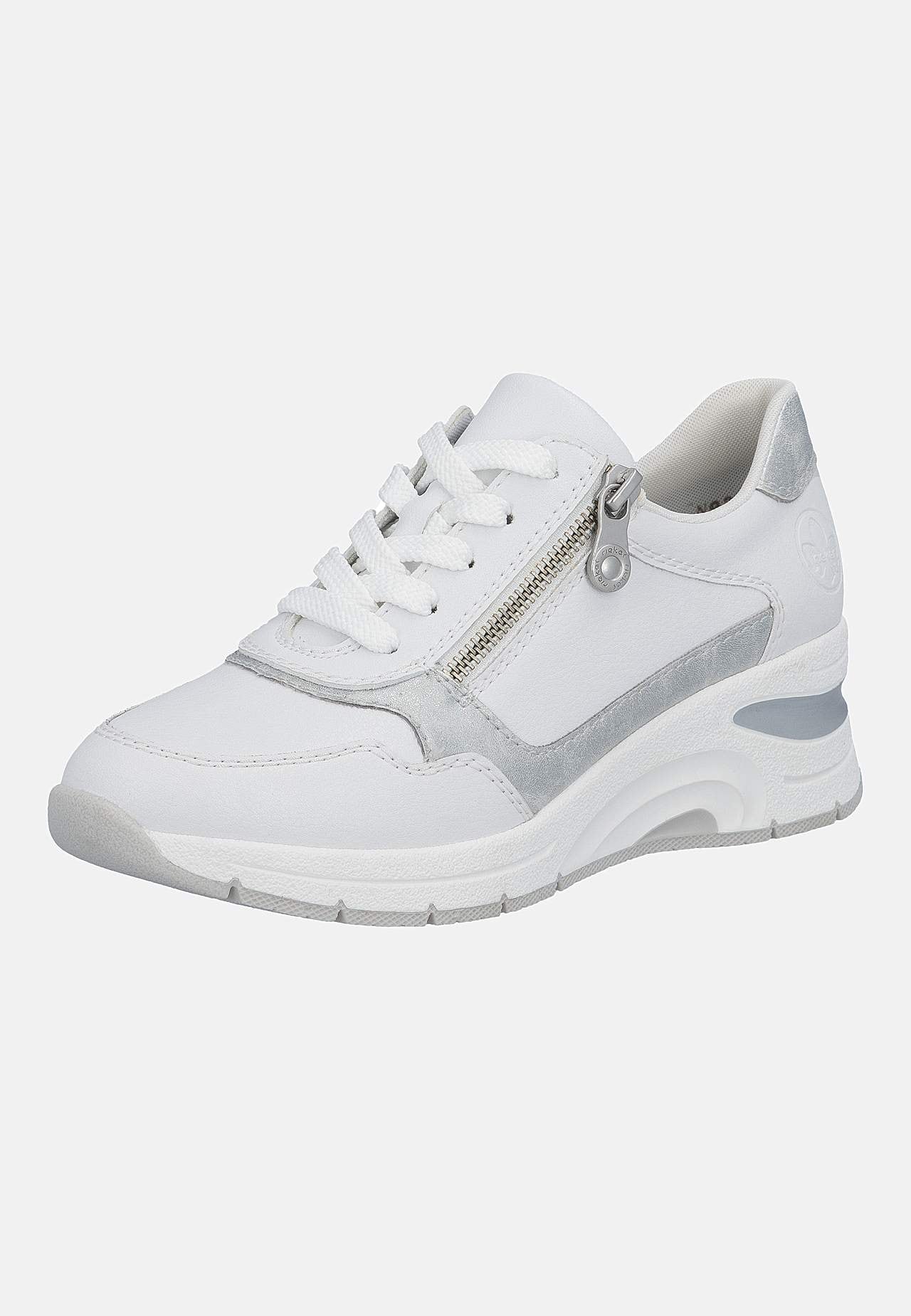 Nahkakengät hopeilla yksityiskohdilla. Kenkä nyörityksellä ja vetoketju jalkaterän ulkopuolella helppoa pukemista ja riisumista varten. Topattu iltti. Pehmeä, irrotettava sisäpohja. Kumipohja. Rieker Antistress Katso alta. Päällinen nahasta ja tekokuidusta. Vuori tekstiilistä. Sisäpohja tekstiilistä. Ulkopohja tekokuidusta... Lue lisää