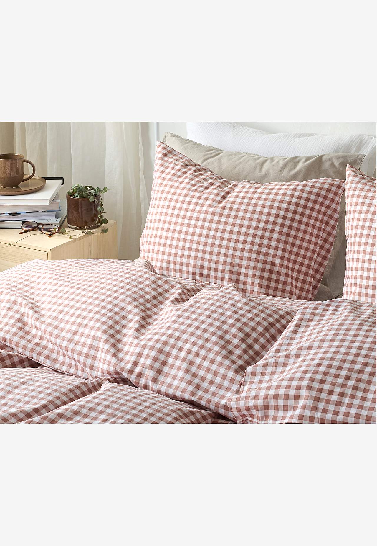 Pussilakanasetti pehmeästä, mukavasta puuvillasta. Pieniruutuinen printti. Sama kuvio edessä ja takana. 2 osaa. Pussilakanan koko 150 x 210 cm, tyynynpäällisen koko 50 x 60 cm. Pussilakana, yläosassa kädenreiät. Kirjekuoriaukkoinen tyynyliina. Langantiheys: 144.