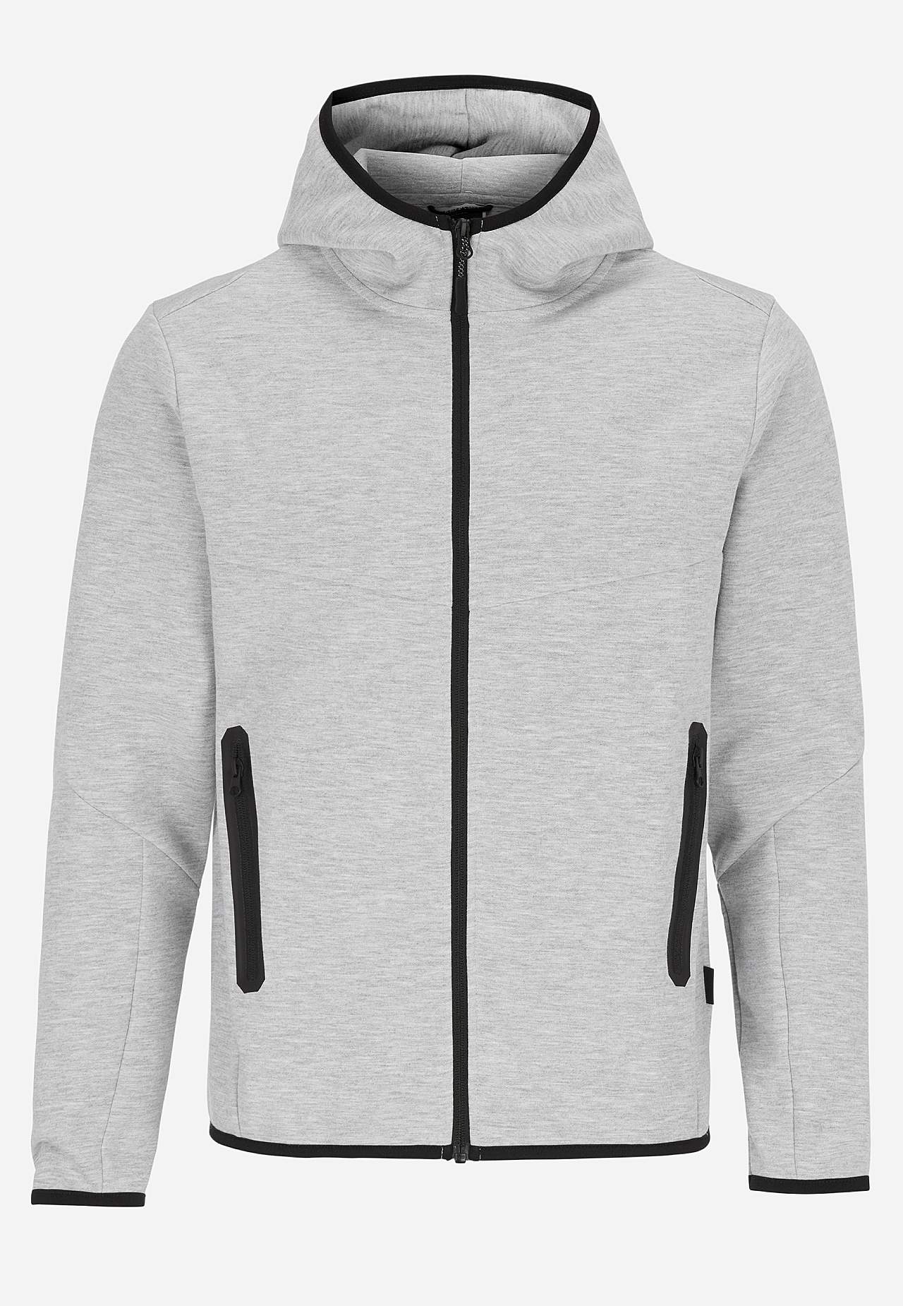Sporttinen pusero hieman paksummasta laadusta. Vetoketju edessä. Vuorattu huppu. Kaksi koristeellista taskua edessä. Pitkät hihat kanttauksella hihansuissa. Suora helma kanttauksella. Pituus olkapäästä n. 68 cm koossa M.