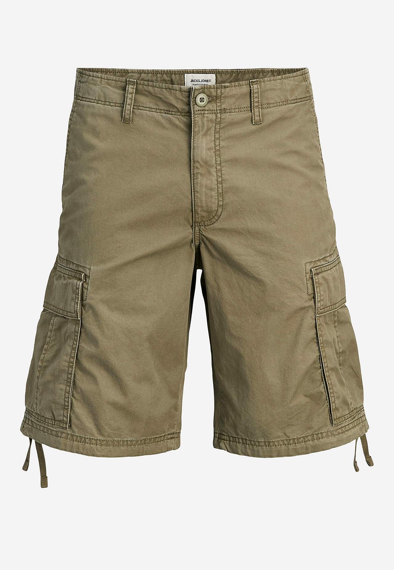 Kudotut shortsit puuvillalaadusta. Normaali vyötärö vetoketjusepaluksella ja vyönlenkeillä. Sivutaskut. Reisitaskut läpällä. Takana olevat teretaskut läpällä ja nepparikiinnityksellä. Kiristysnyöri alhaalla. Sisäjalan pituus n. 28 cm koossa 46.