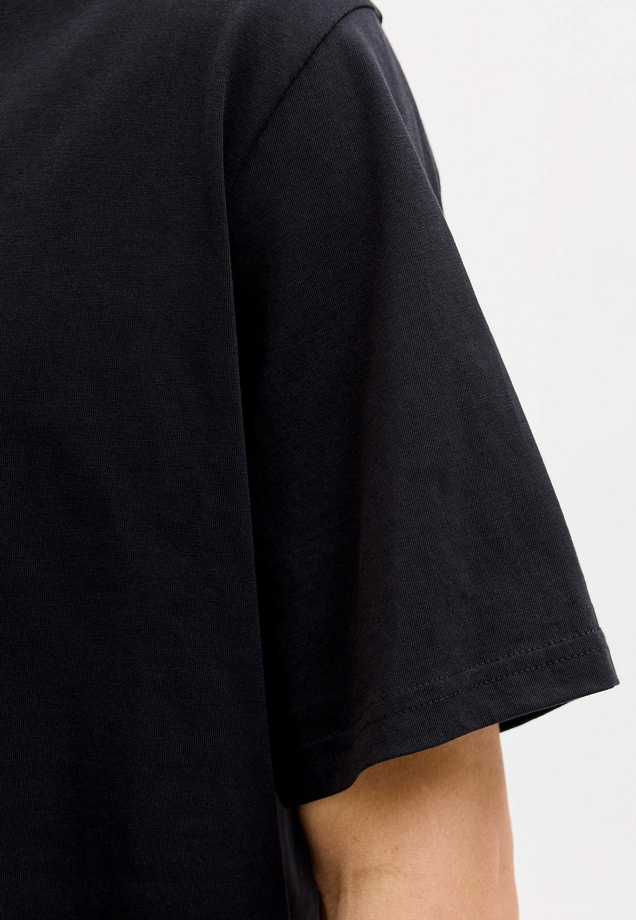 T-paita tekstillä edessä. Pehmeä, orgaaninen puuvillatrikoo. Tilava istuvuus. Klassinen, pyöreä kaula-aukko. Lyhyt hiha. Suora helma. Pituus olkapäästä n. 83 cm koossa 3XL.