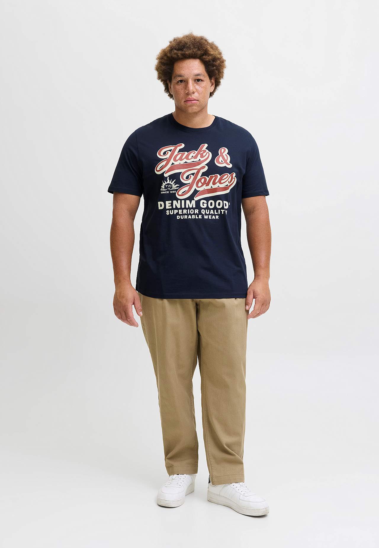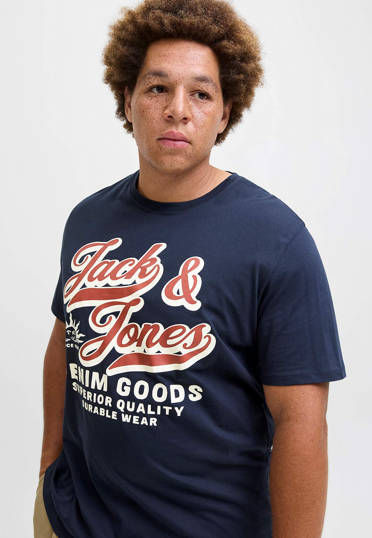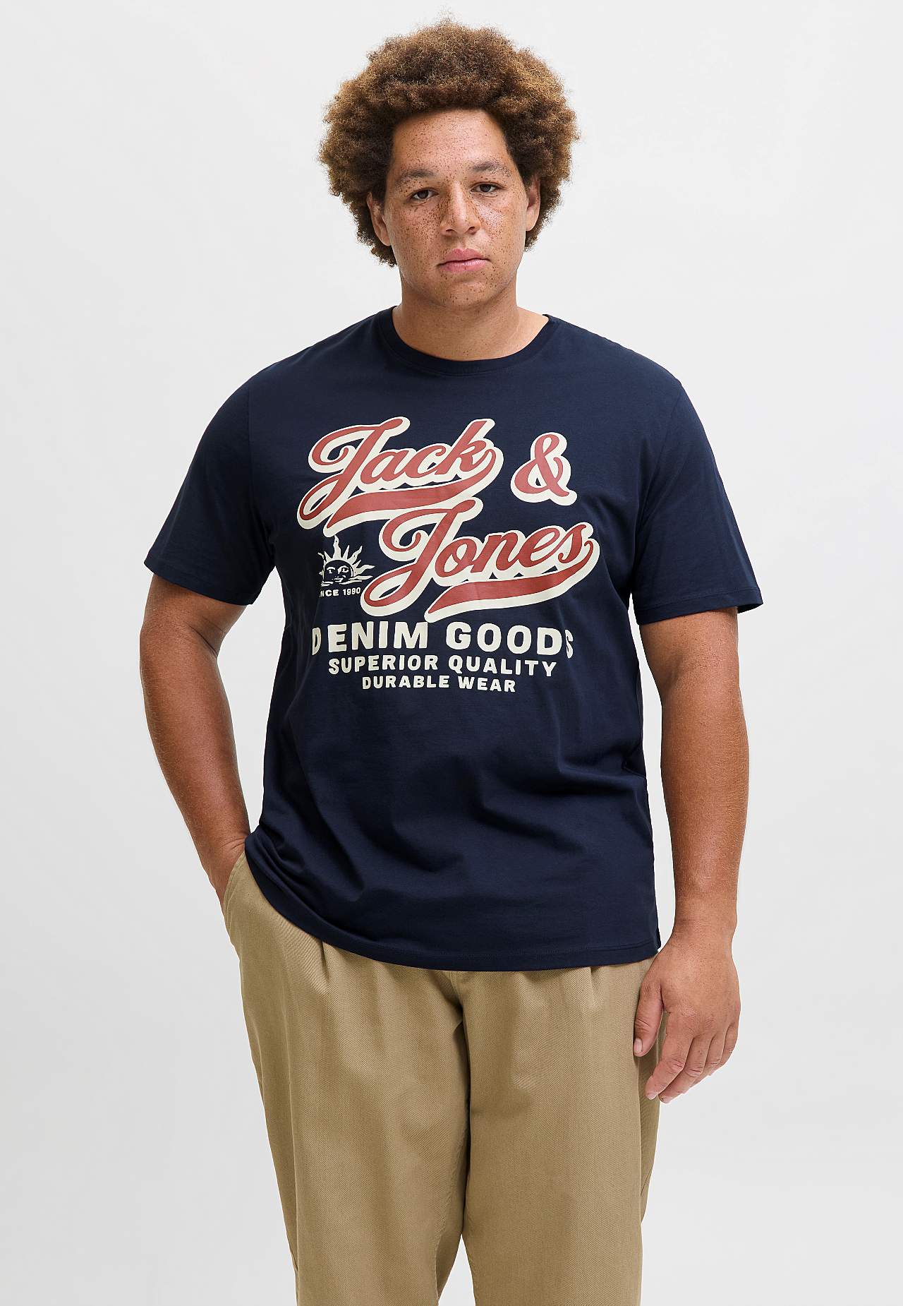 T-paita tekstillä edessä. Pehmeä puuvillatrikoo. Tilava istuvuus. Klassinen, pyöreä kaula-aukko. Lyhyt hiha. Suora helma. Pituus olkapäästä n. 84 cm koossa 3XL.