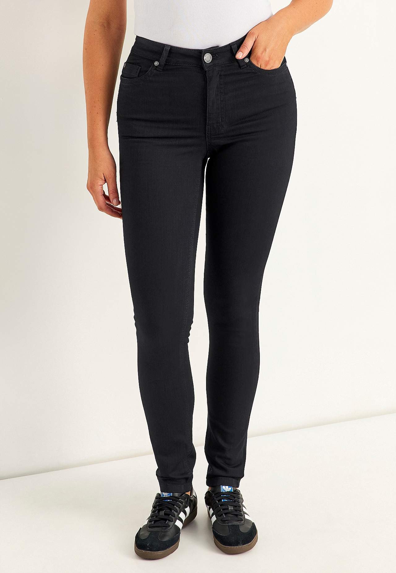 Erittäin joustavat tiukkamalliset farkut, vartaloa myötäilevä istuvuus. Joustava laatu seuraa kehon liikkeitä ja luonnollisia muotoja menettämättä muotoaan. Erittäin joustavat 5-taskuiset farkut. Muovailtu vyötärönauha vyönlenkeillä. Vartalonmyötäinen malli kapeilla lahkeen pituuksilla. Korkea vyötärö. Vetoketjusepalus. Kak... Lue lisää