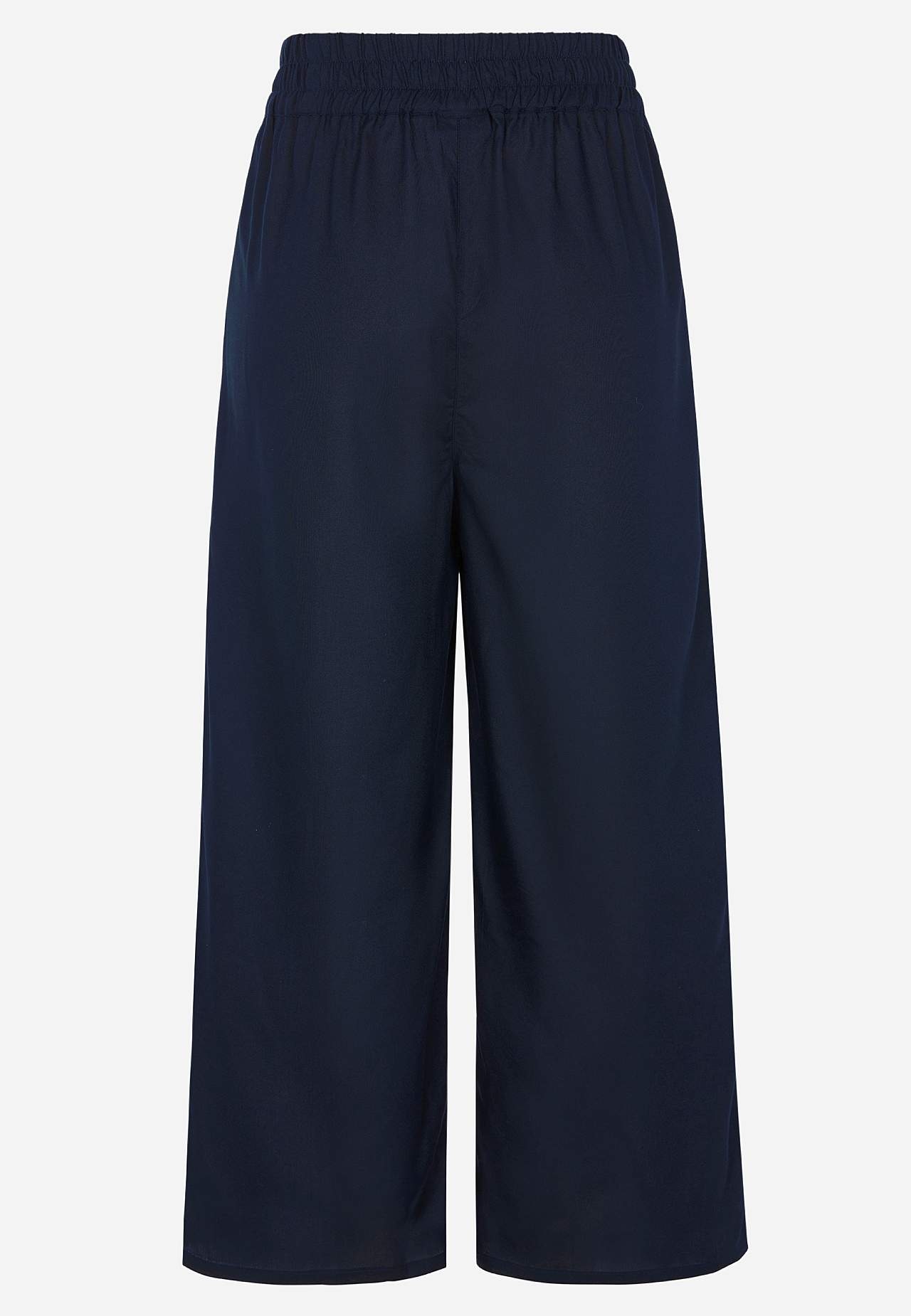 Kudotut, ilmavat culottehousut. Sileä, joustava, viileä viskoosi. Leveä, pehmeä joustava vyötärönauha. Vinotaskut edessä. Lahkeen sisäpituus n. 60 cm joka koossa. Yhdistä vapaasti tähän tuotteeseen: 702443.