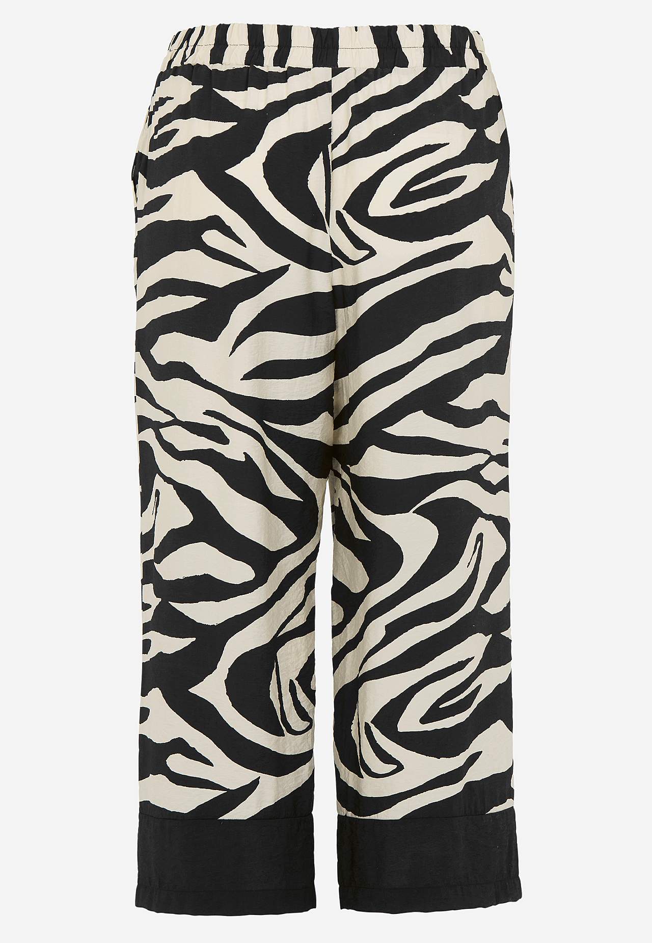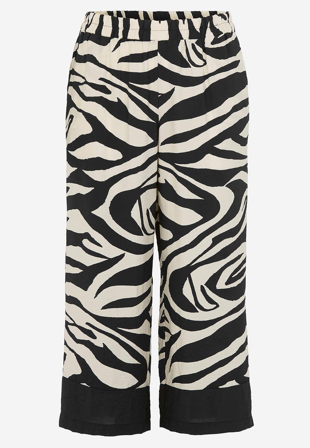 Kudotut housut sileästä viskoosisekoitteesta. Leveä istuvuus. Seeprakuvio. Leveä resori vyötäröllä. Nilkkaan ulottuva lahje. Yhdistä vapaasti tähän tuotteeseen: 701009. Etuosa: n. 37 cm. Sisälahkeen pituus: n. 68 cm.
