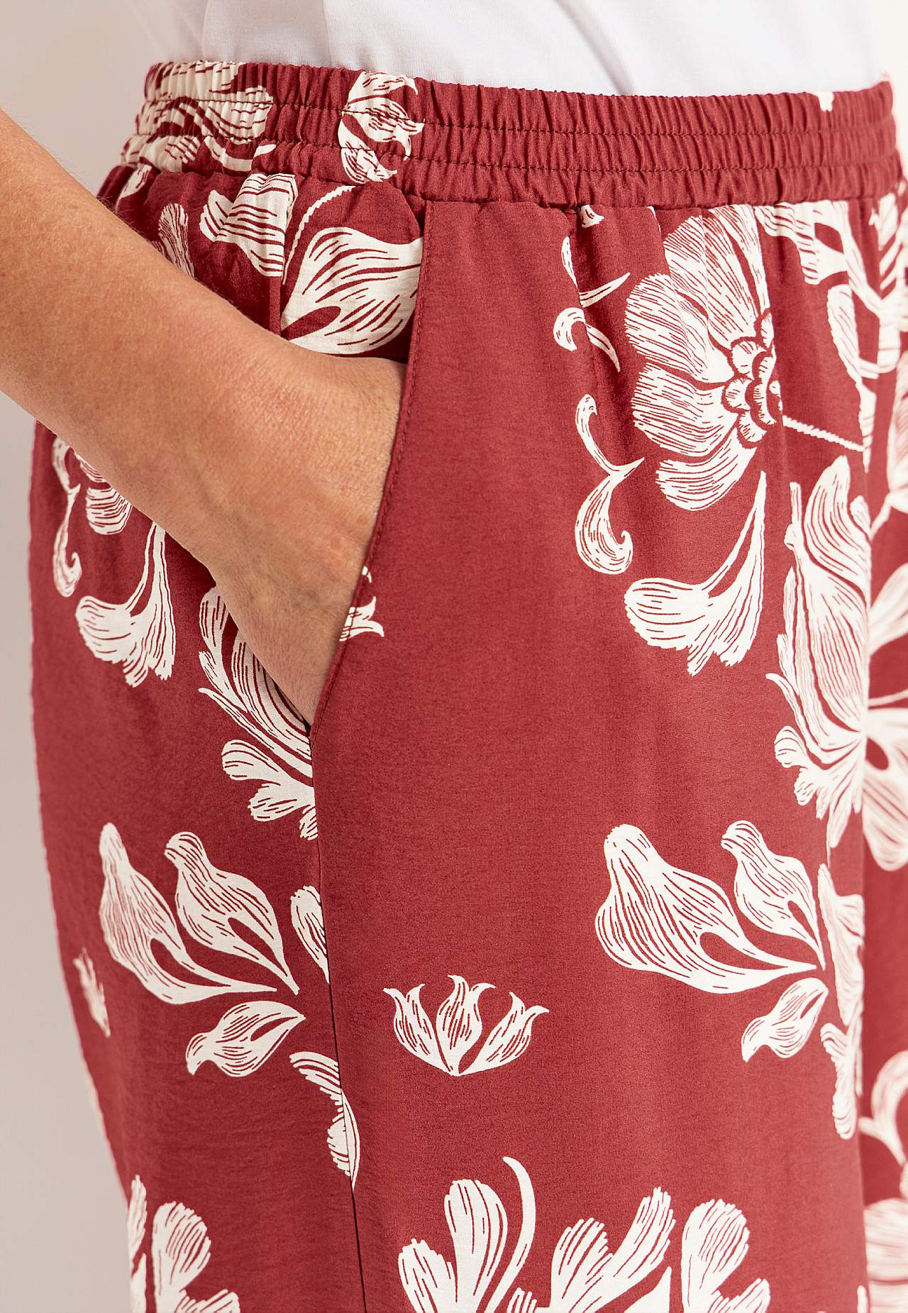 Leveät housut taskuilla