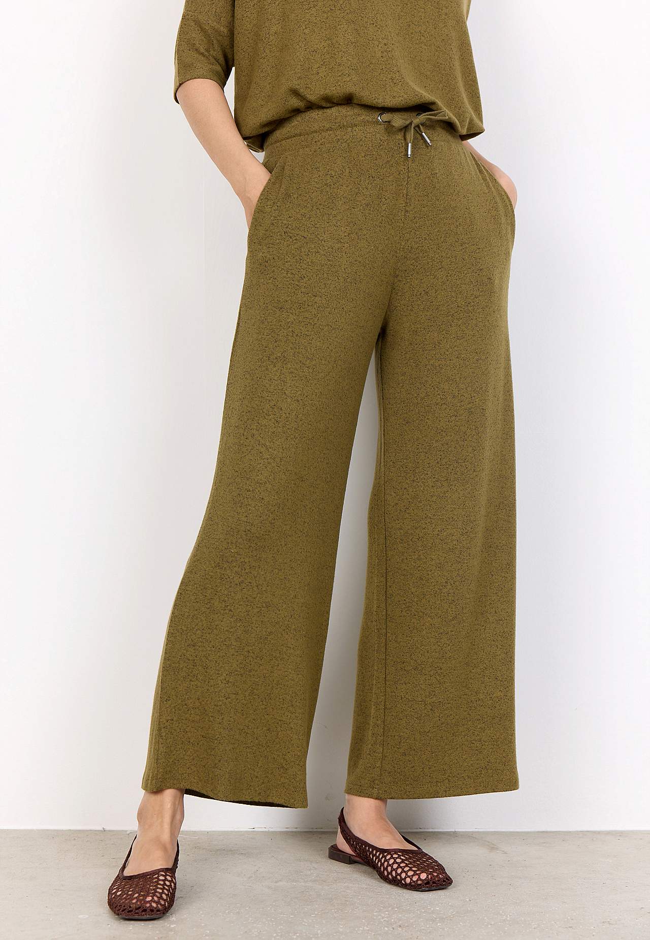 Pehmeä, hieman raskaampi trikoo harjatulla pinnalla. Rento istuvuus. Resori vyötäröllä kiristysnyörillä. Taskut edessä. Suorat lahkeet. Sisäjalan pituus n. 64 cm koossa S (38). Yhdistä vapaasti tähän tuotteeseen: 700967.