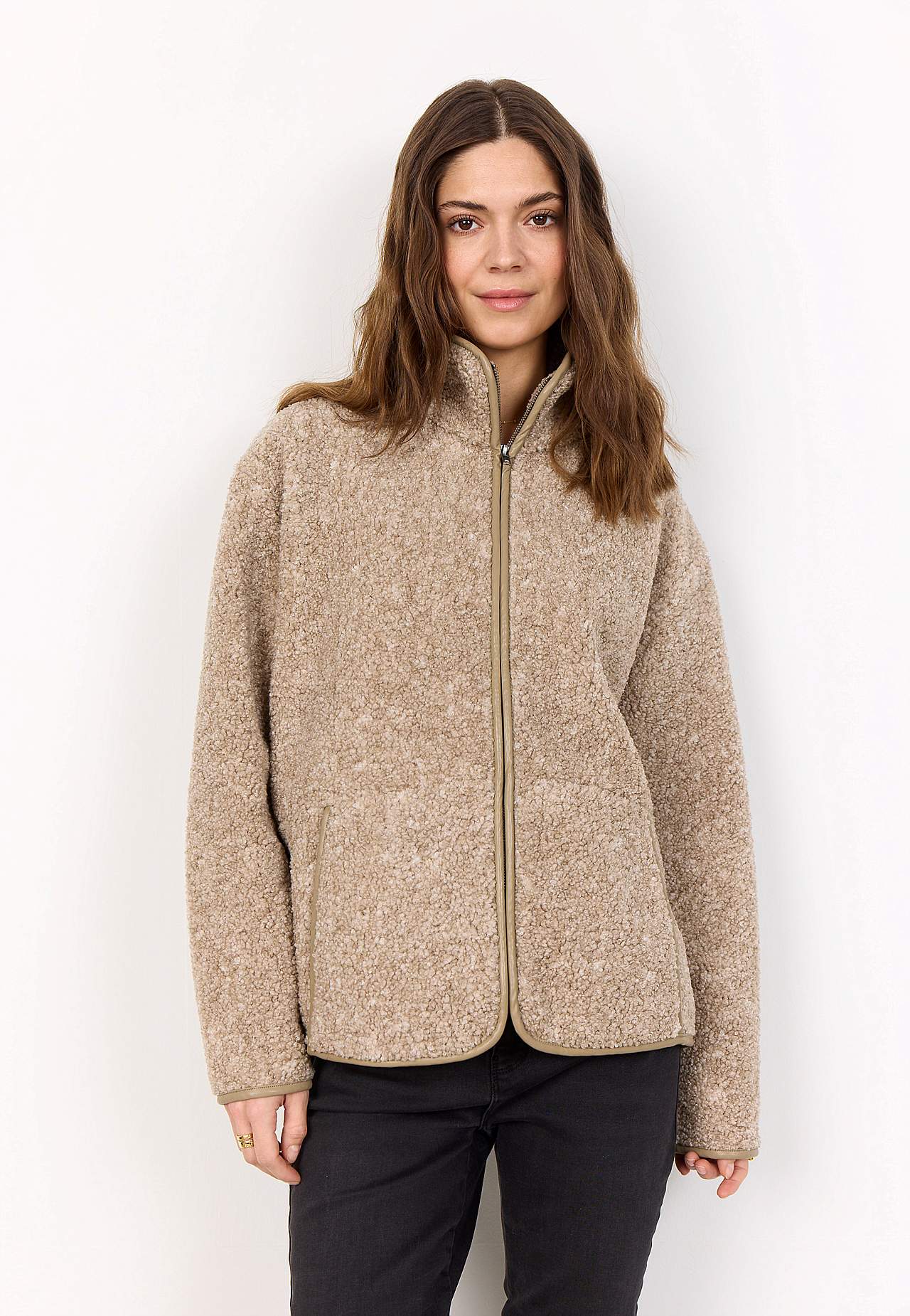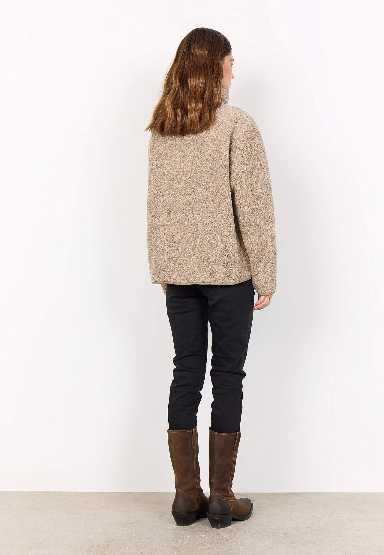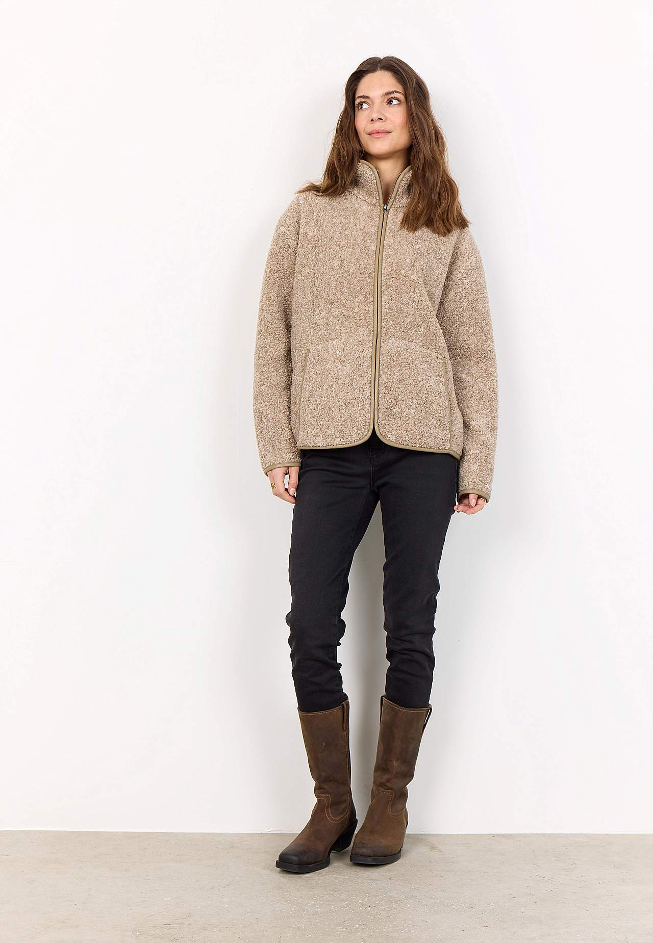 Hyvin pehmeä nukkatakki pehmeällä fleecevuorilla. Ylikokoinen istuvuus. Mukava pystykaulus. Pudotettu olkapää. Vetoketju. Taskut edessä pehmeällä vuorilla. Pitkät hihat kanttauksella hihansuissa. Lievästi pyöristetty helma kanttauksella. PItuus noin 62 cm koossa M (40).