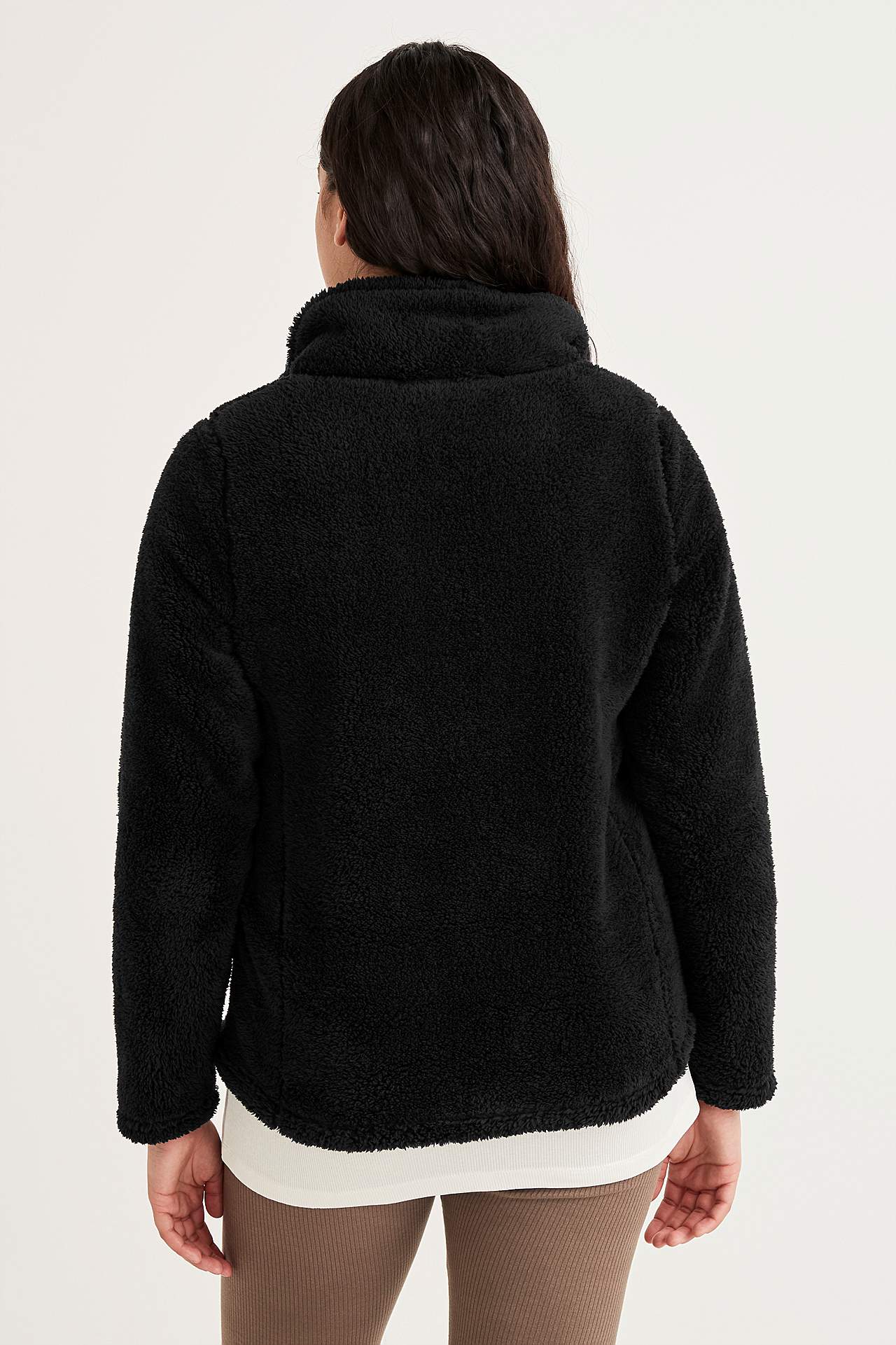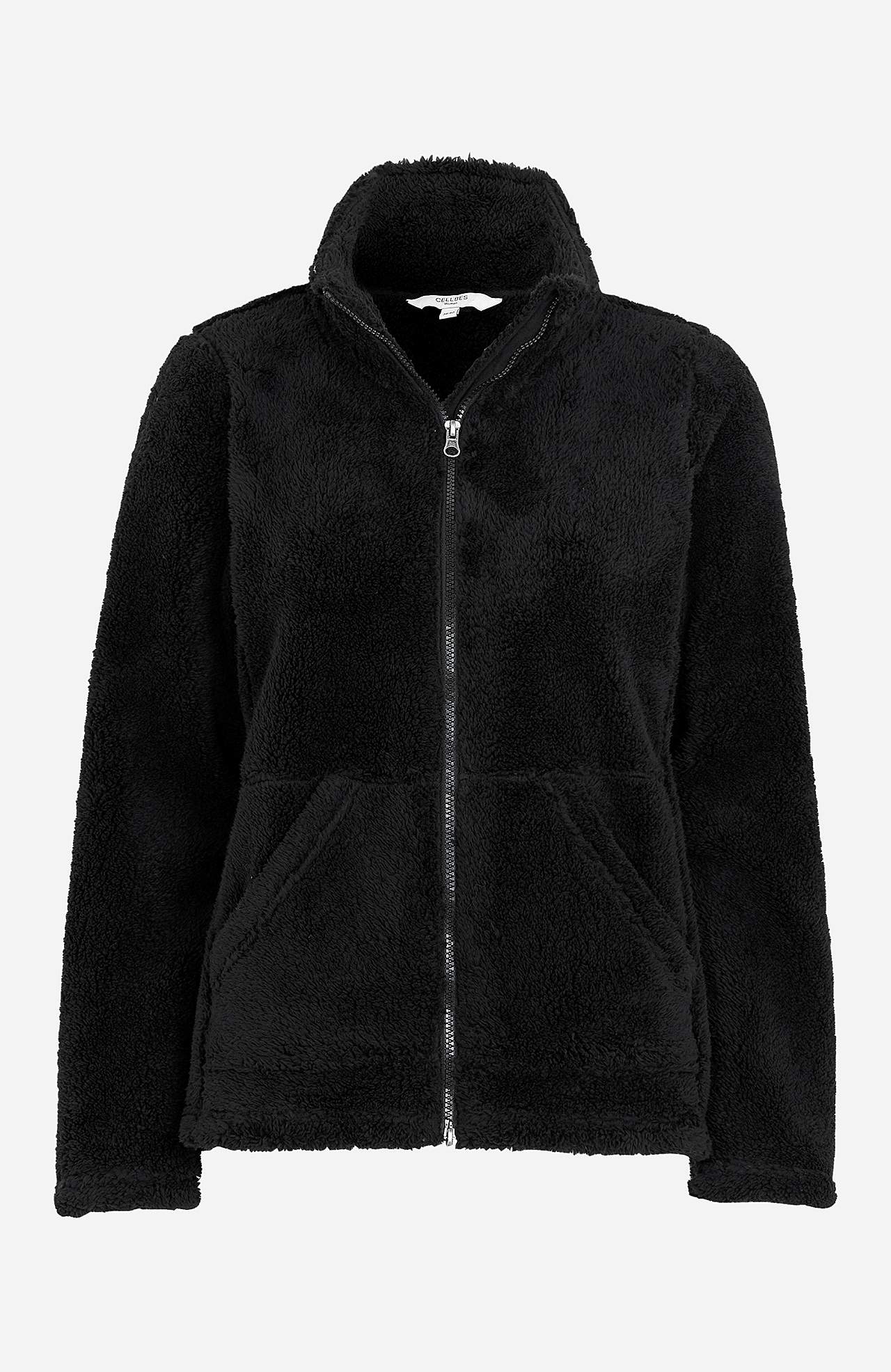 Pehmeä fleece-takki pystykauluksella. Kaksisuuntainen vetoketju. Kaksi taskua edessä. Vuoraamaton. Takapituus olkapäältä koon mukaan noin 65-72 cm.