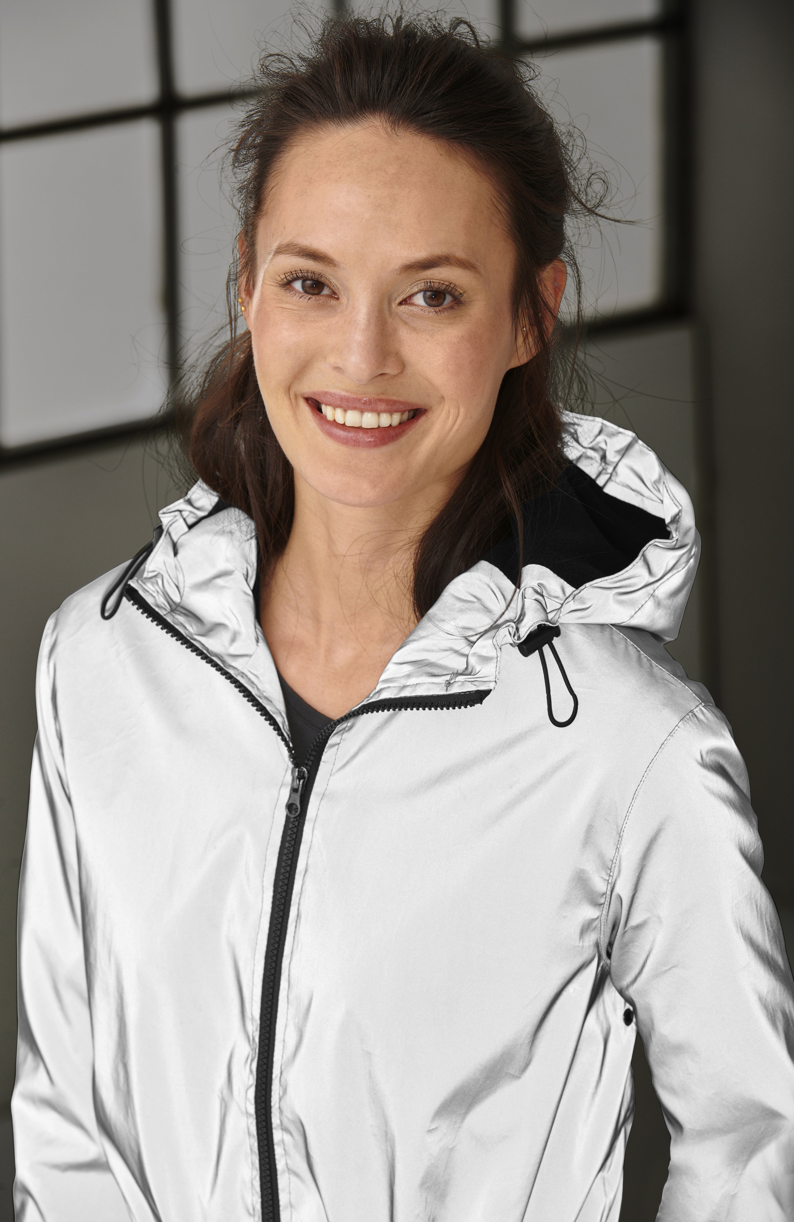 Fleecevuorattu tuulitakki heijastavaa materiaalia. Hihoissa on ohuempi vuori. 2-suuntainen vetoketju. Nauhakuja hupussa ja vyötäröllä. Taskuissa painonapit. Hihansuissa resorit. Takapituus koon mukaan n. 94-105 cm.