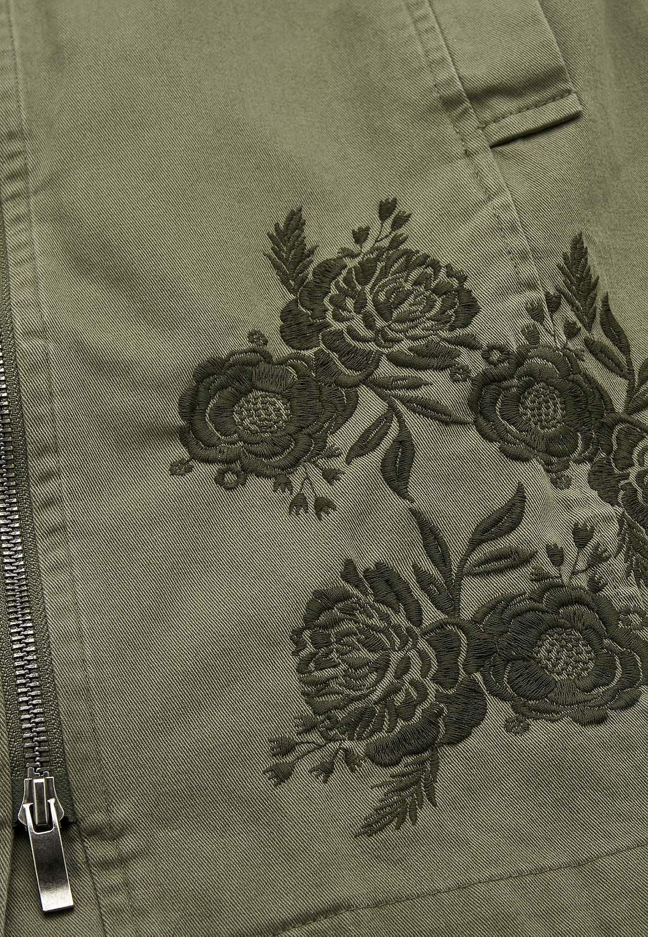 Pitkä takki kirjaillulla yksityiskohdalla. Kiinniommeltu huppu kiristysnyörillä. Käytännöllinen kaksisuuntainen vetoketju edessä. Säädettävä kiristysnyöri vyötäröllä. Kahden kantin taskut edessä. Joustavat hihansuut. Hieman pidempi takaosa. Vuoraamaton malli. Takapituus koon mukaan n. 91-99 cm.