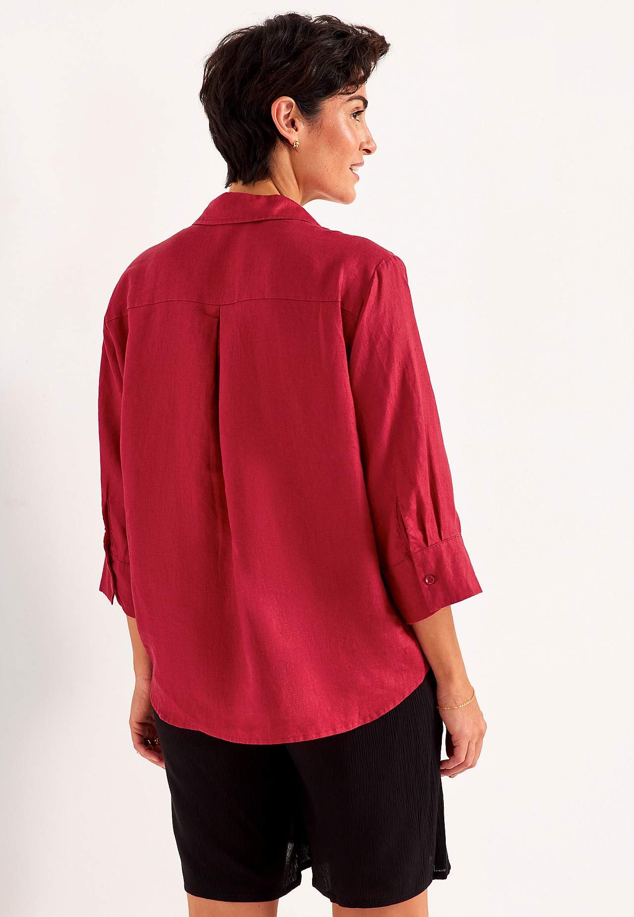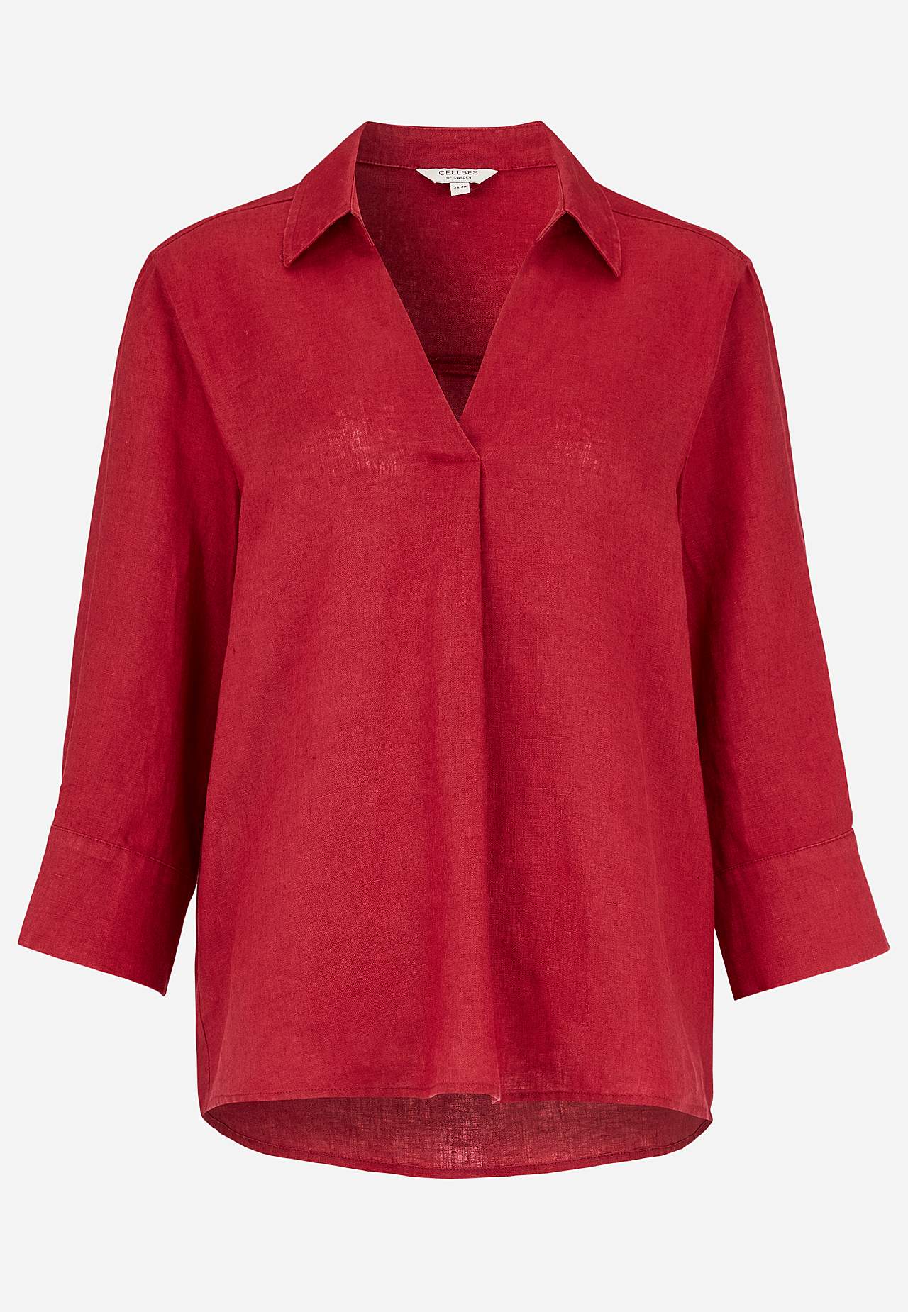 Naisellinen, ilmava pellavapaita kauluksella. Hieman A-linjainen malli ylikokoisella istuvuudella. Kaulus ja v-pääntie muovaillulla sisäpuolella ja tyylikkäällä vekillä edessä. 3/4-hiha leveällä kalvosimella halkiolla ja napilla. Kaarroke takana tyylikkäällä vekillä. Pyöristetty, takaa hieman pidempi helma. Takapituus koon... Lue lisää