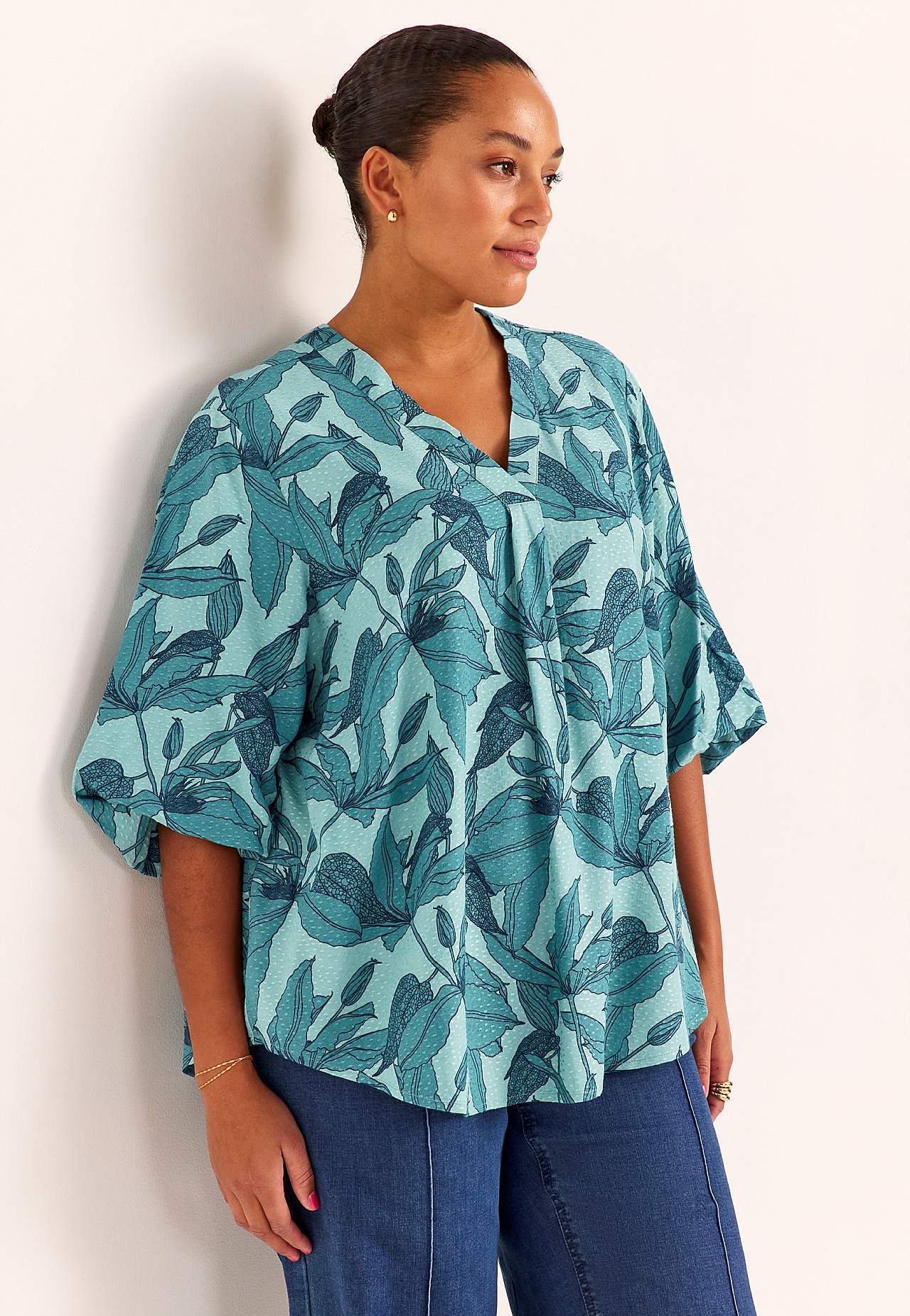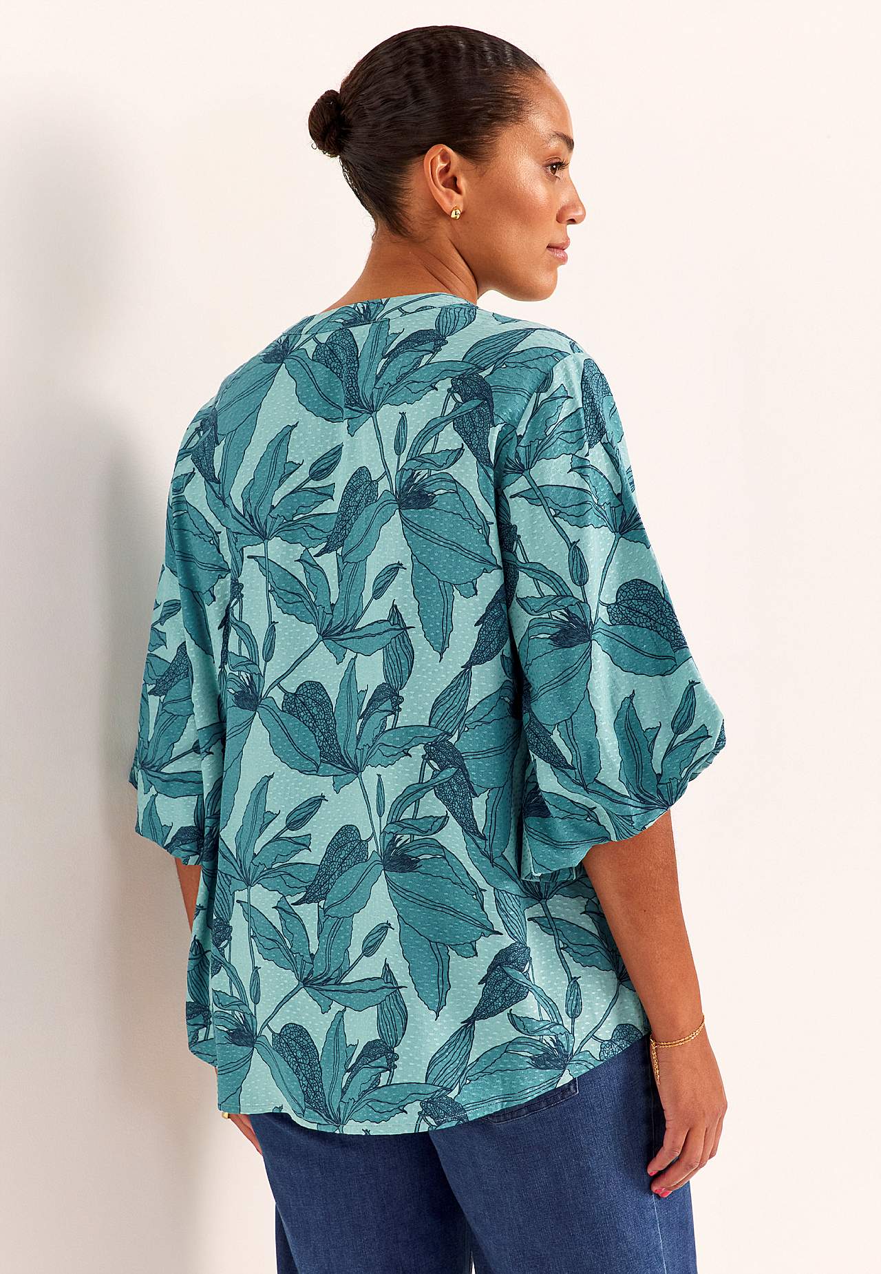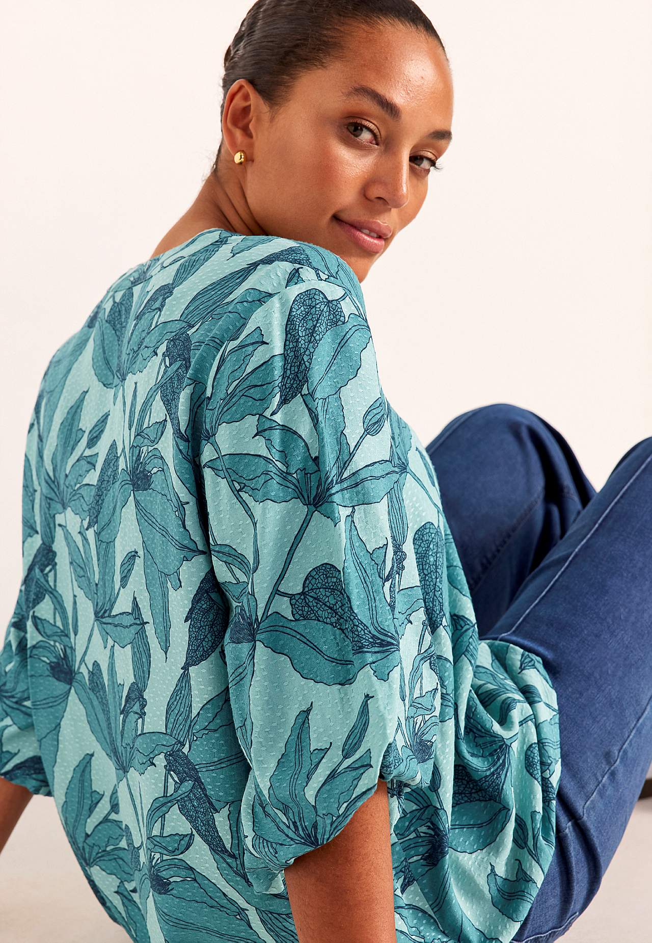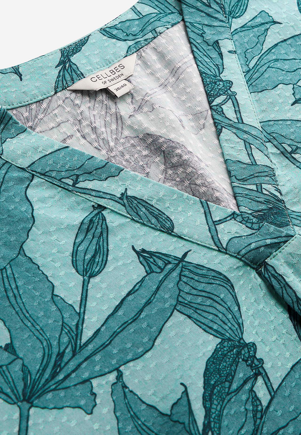 Juhlapaitapusero viskoosista ihanalla laskeutumisella. Dobbykudottu kangas ainutlaatuisella kudotulla kuviolla. Erittäin pehmeä, hieno pintarakenne ja kiilto. Kukkakuvioinen, samansävyinen printti. Normaali istuvuus hieman leveämmillä alaosalla. V-aukko vekillä edessä. Pyöristetty helma. Pituus olkapäältä koon mukaan noin 6... Lue lisää