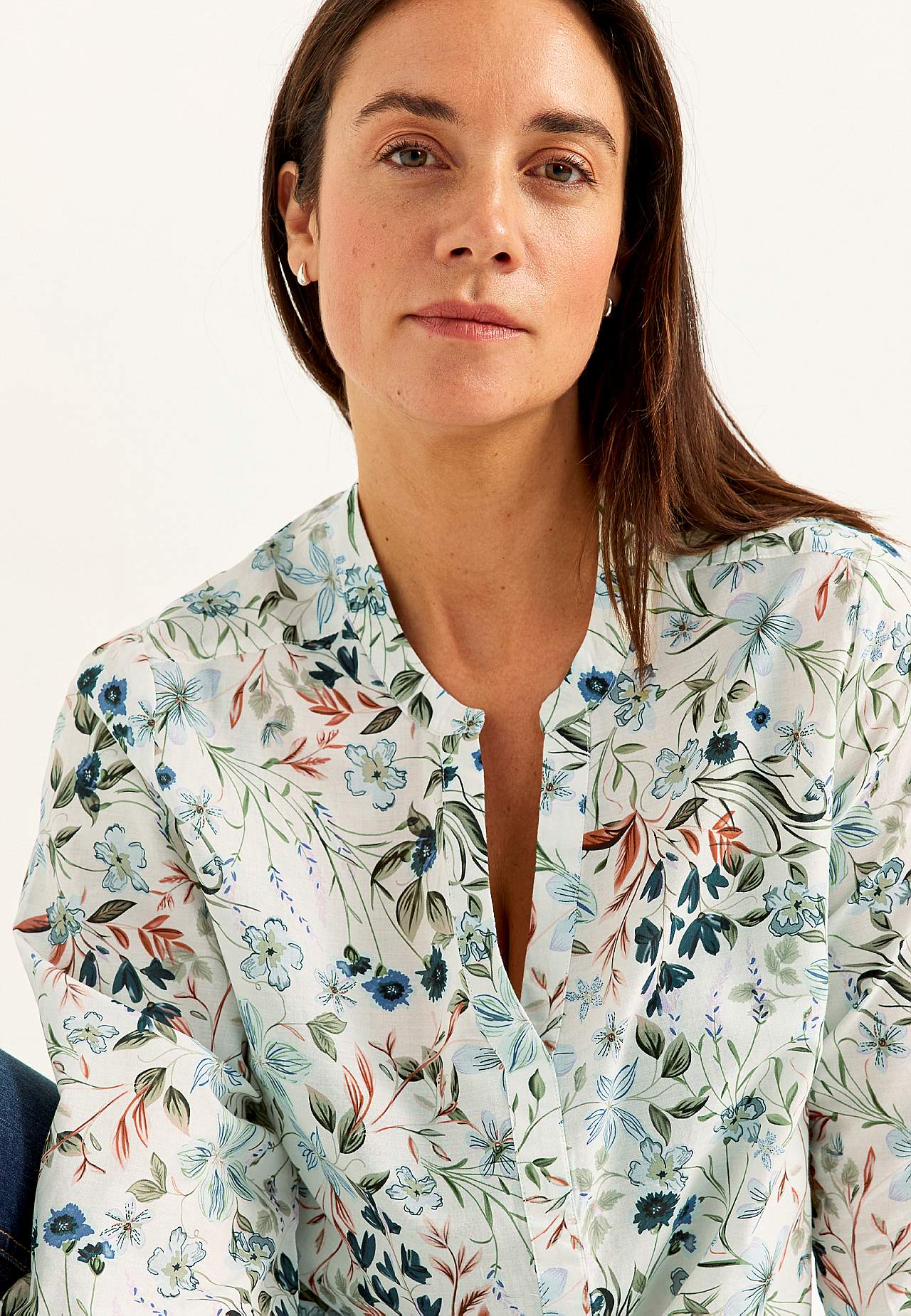 Tunika ihanasta, ilmavasta puuvillainen voileesta. Lämpimiä päiviä varten täydellinen hieman ohuempi, pehmeä materiaali. Löysä istuvuus. Pääntie v-kaula-aukolla ja nappilistalla. Pyöristetty helma. Pituus olkapäältä koon mukaan noin 70-81 cm.