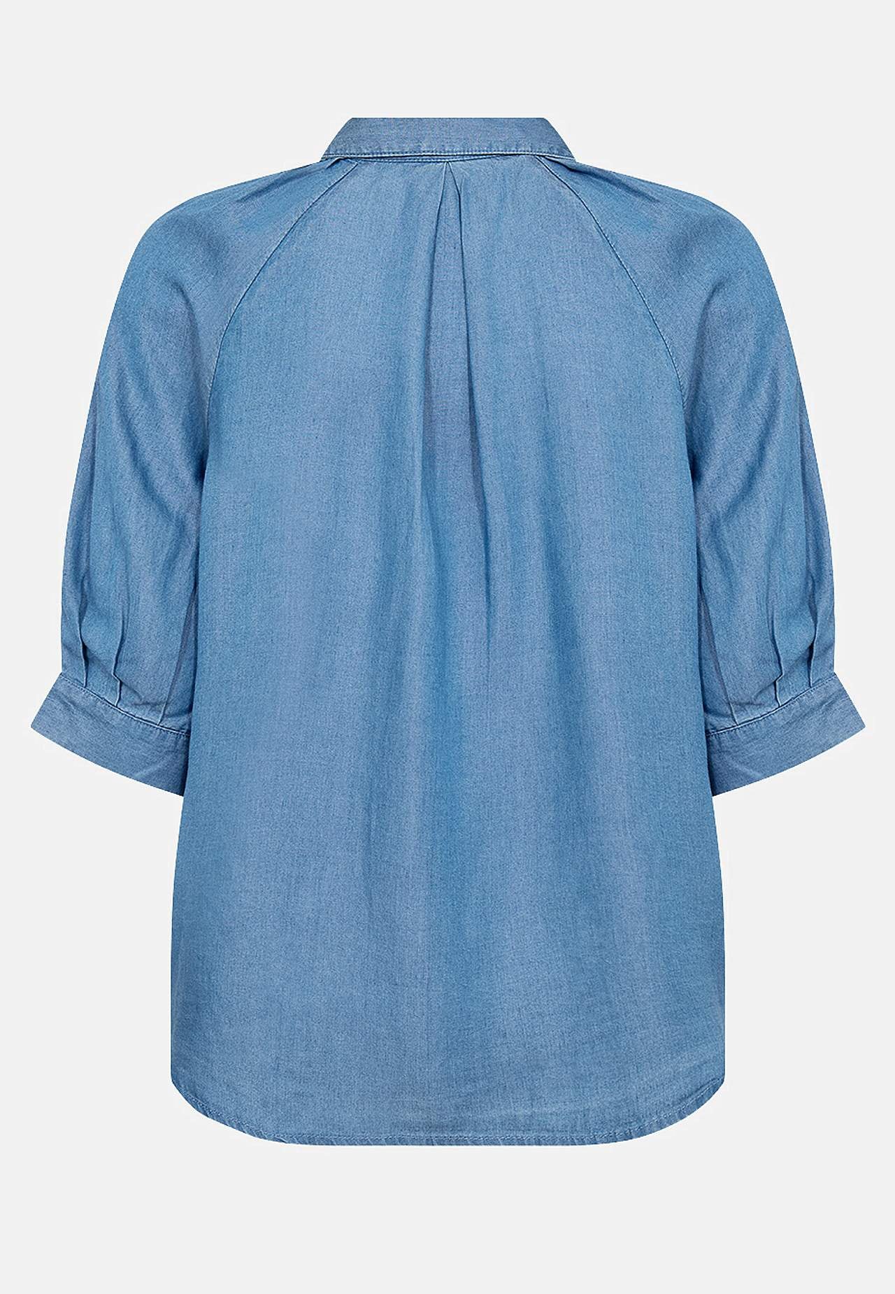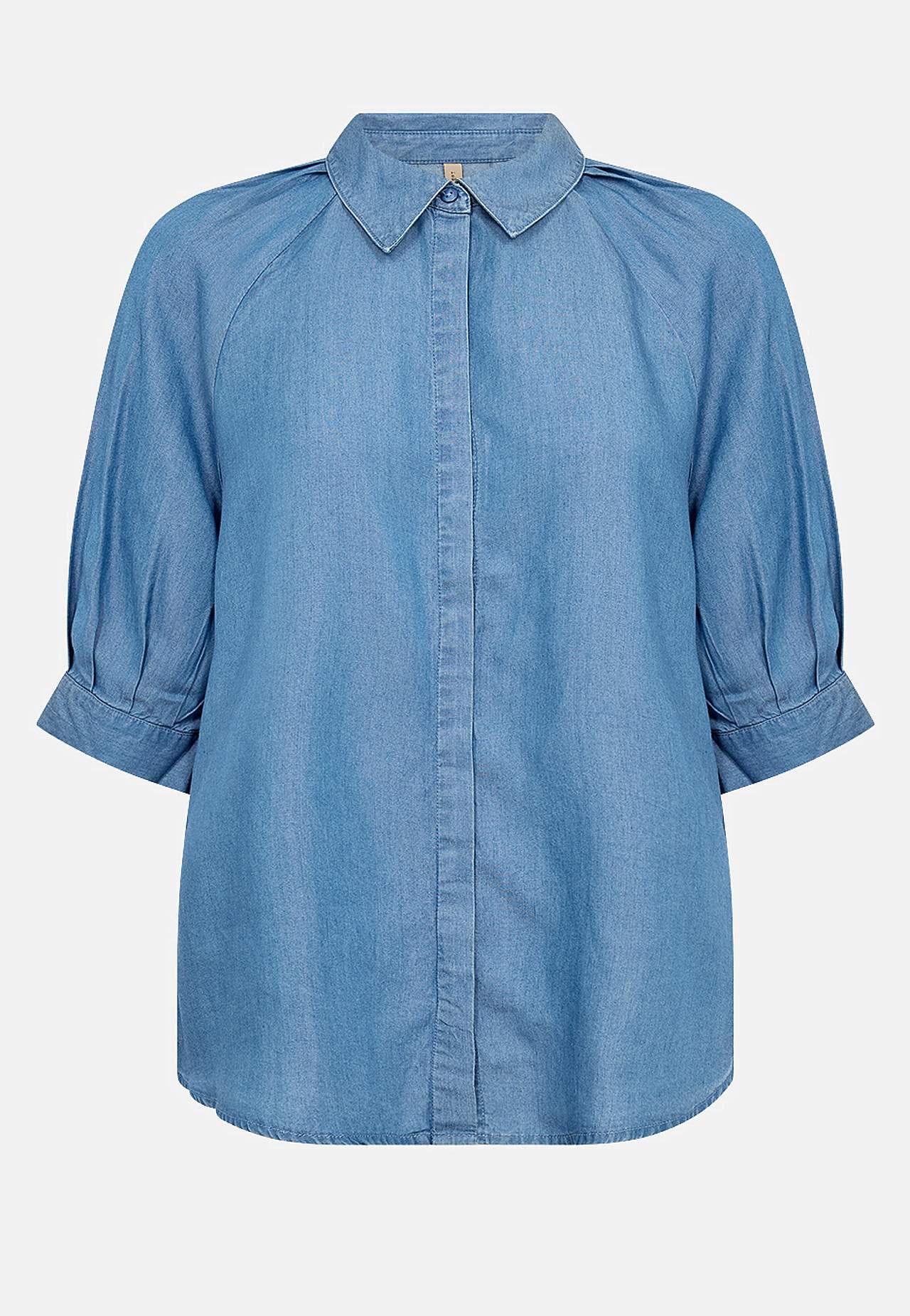 Kudottu, naisellinen pusero denimistä. Upean pehmeä ja ilmava lyosellimateriaali. Normaali istuvuus. Napitettu malli kauluksella ja kätketyillä napeilla. Rypytys olkapäissä. Koristeellinen vekki selässä. Lyhyet, leveät raglanhihat kalvosimella hihansuissa. Pyöristetty helma. Pituus olkapäästä n. 64 cm koossa S (38). Yhdistä... Lue lisää