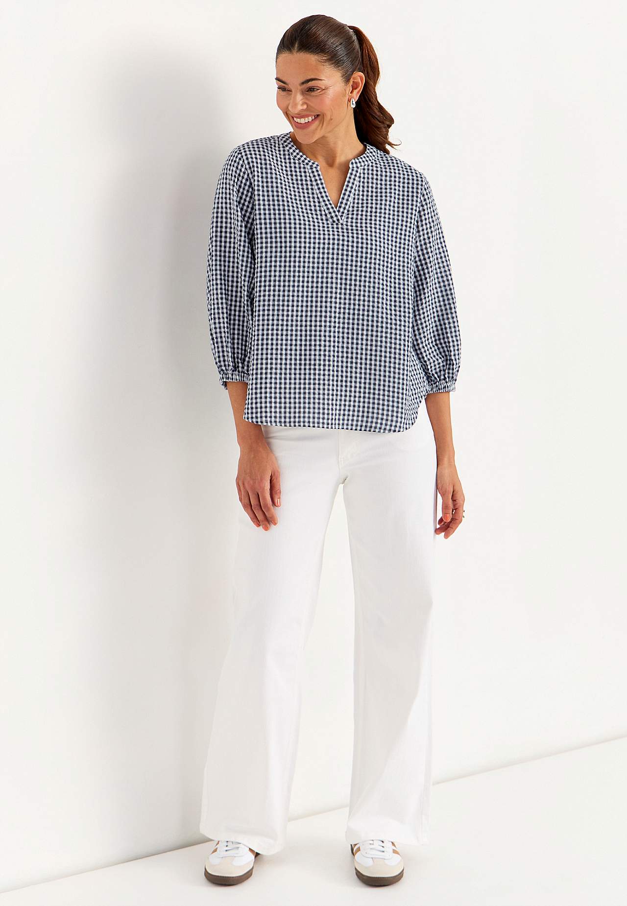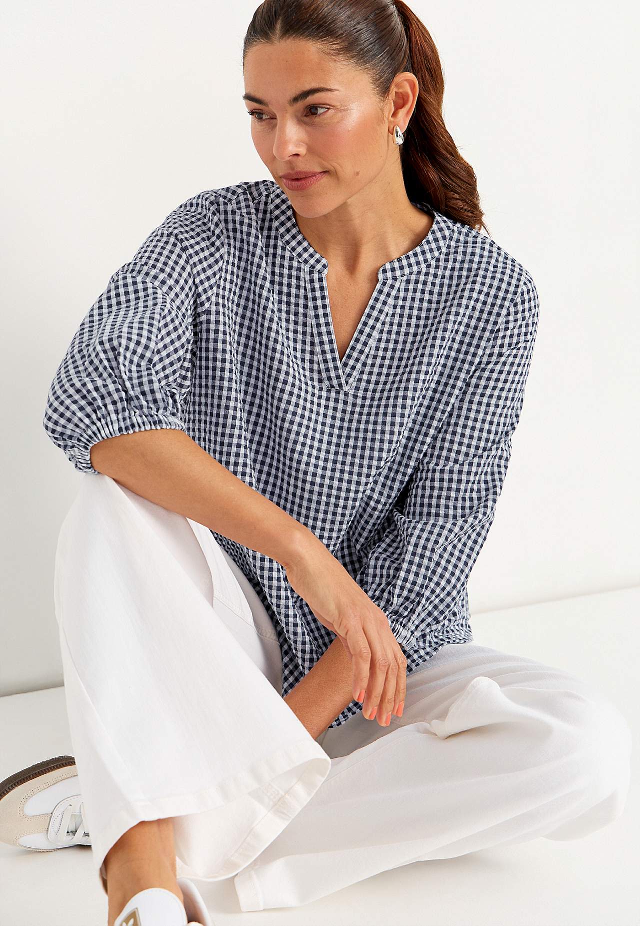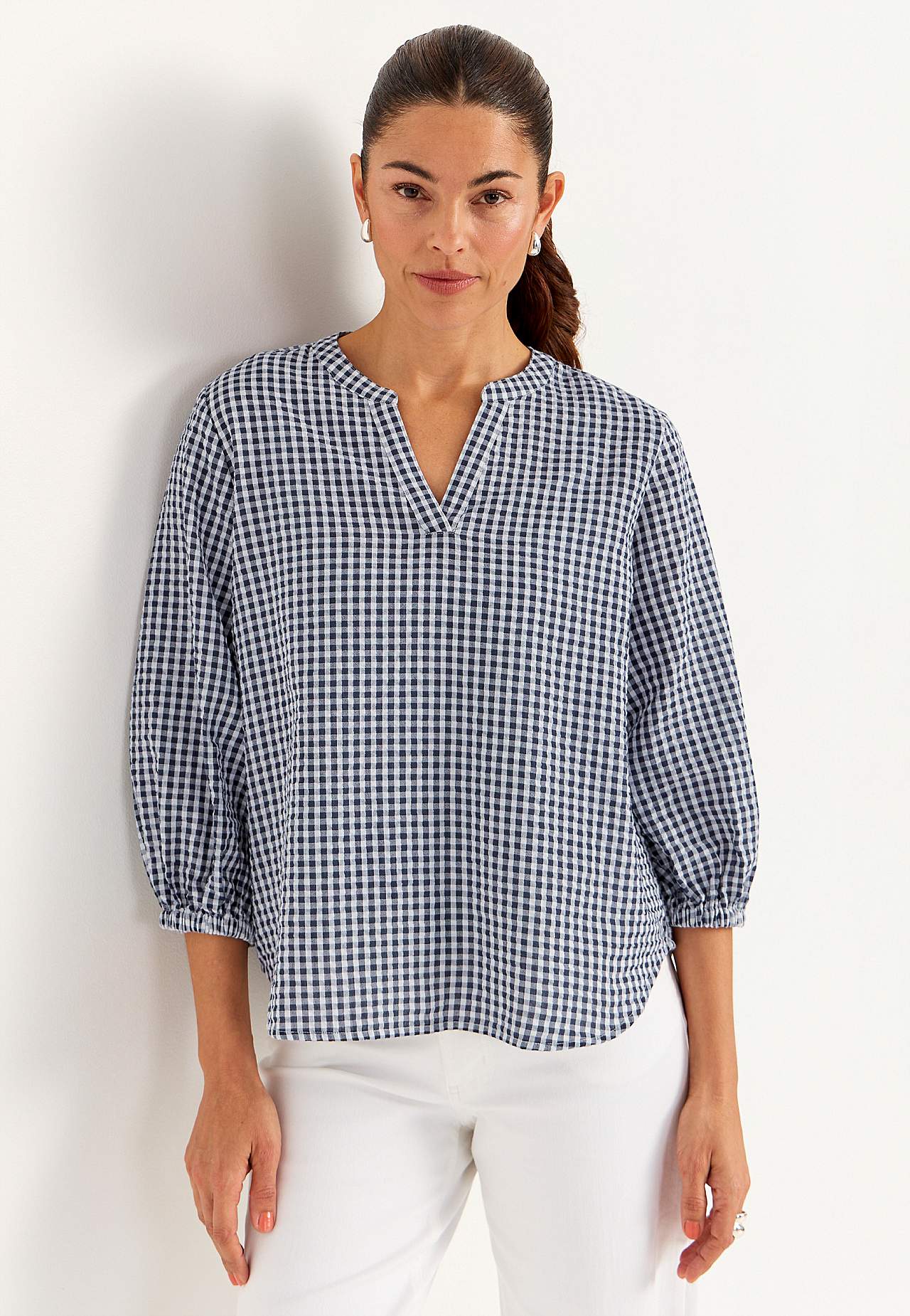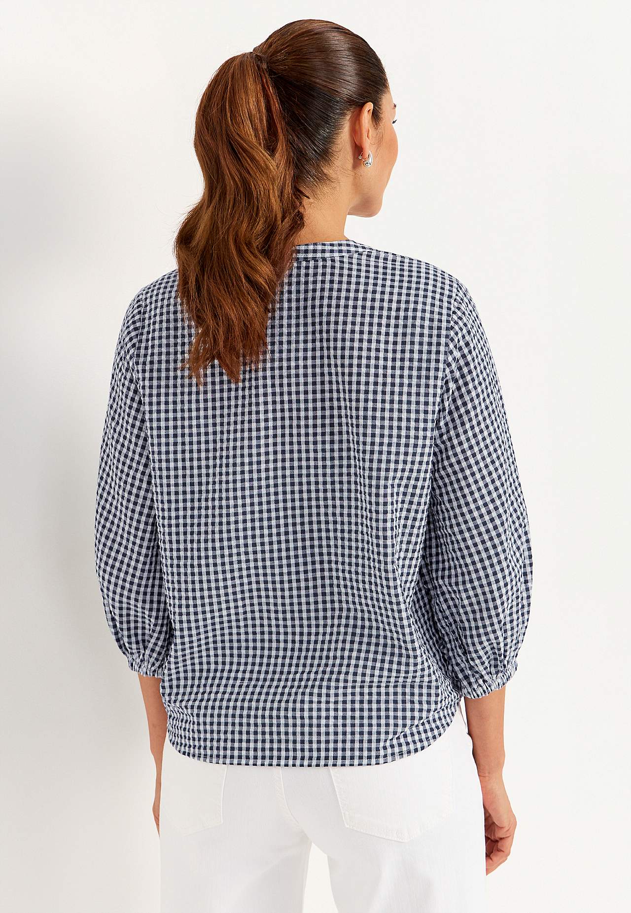 Pieniruutuinen pusero seersuckerista