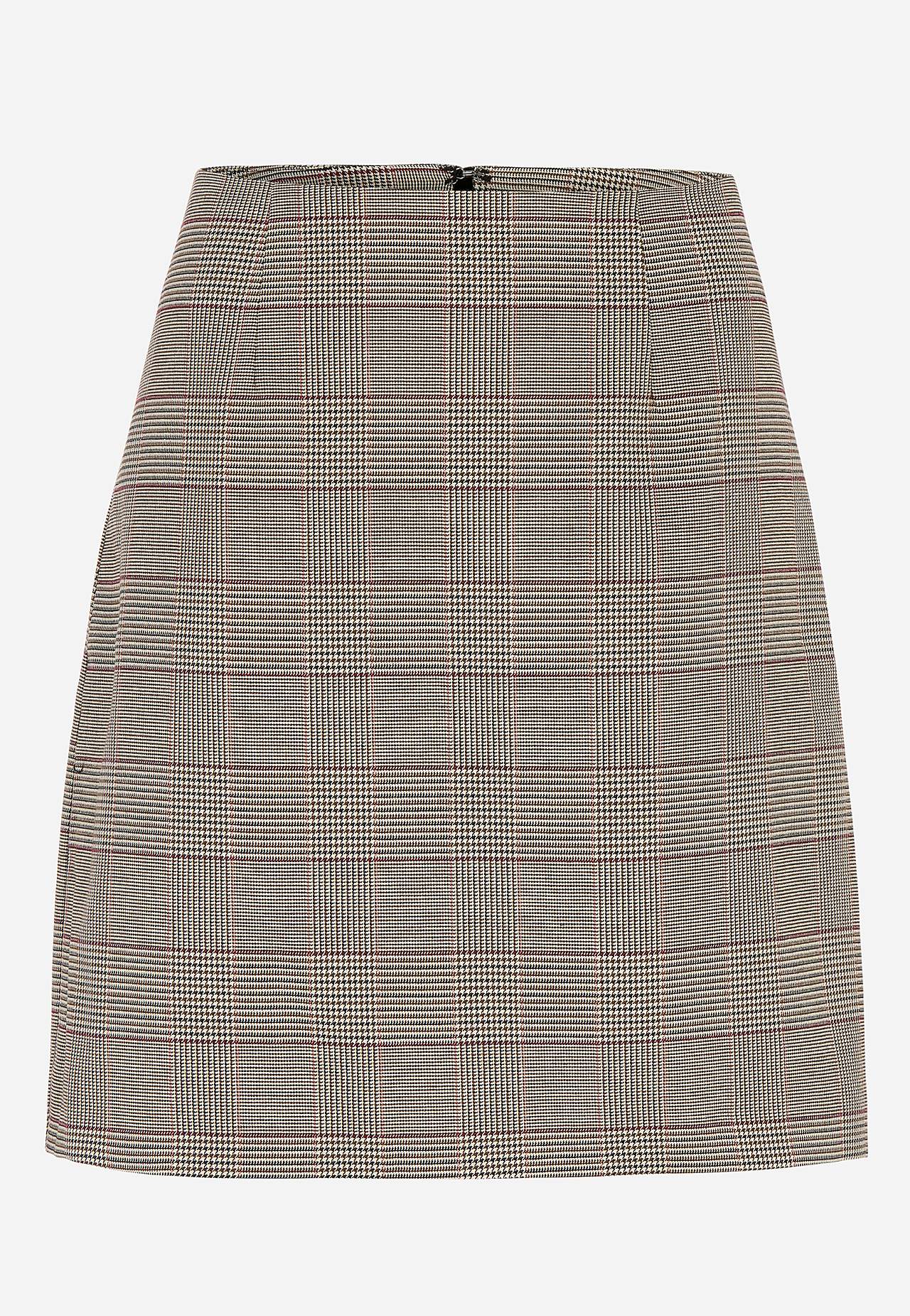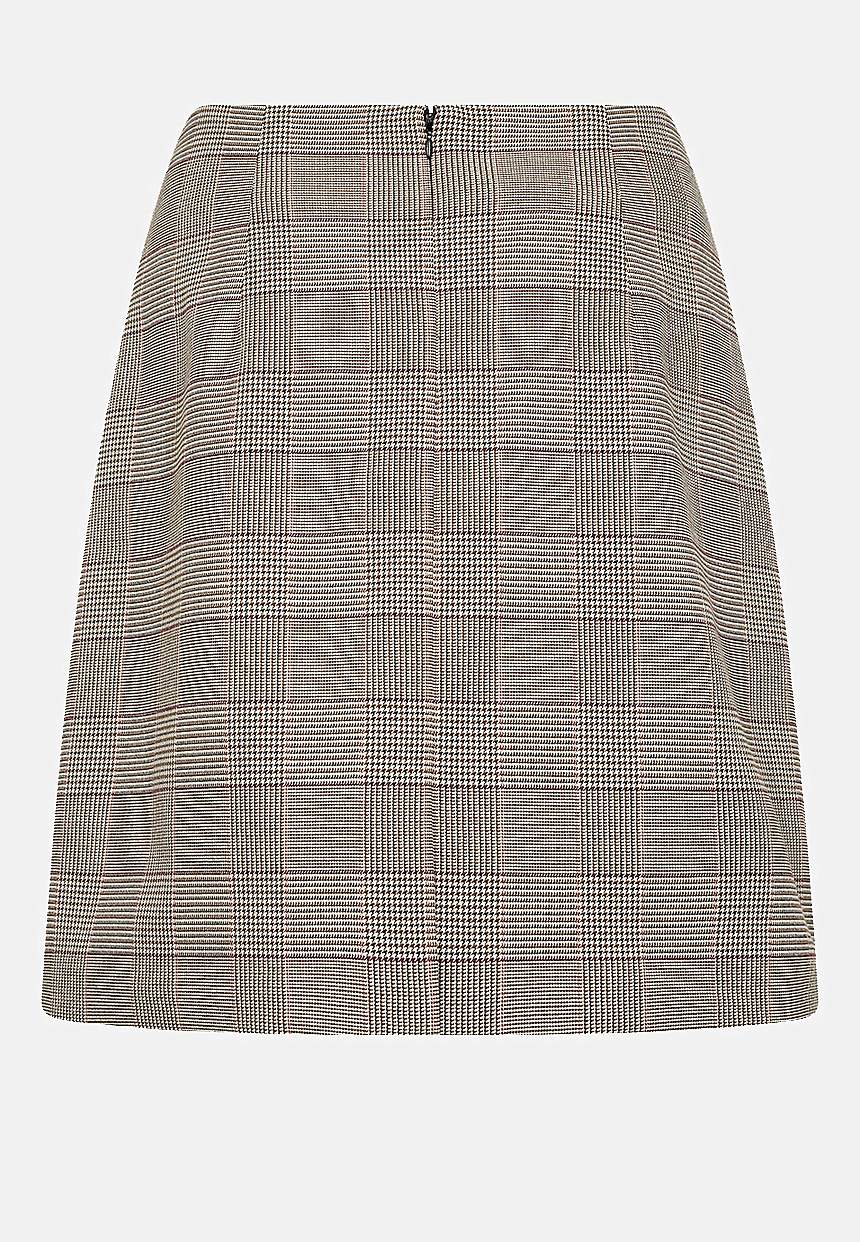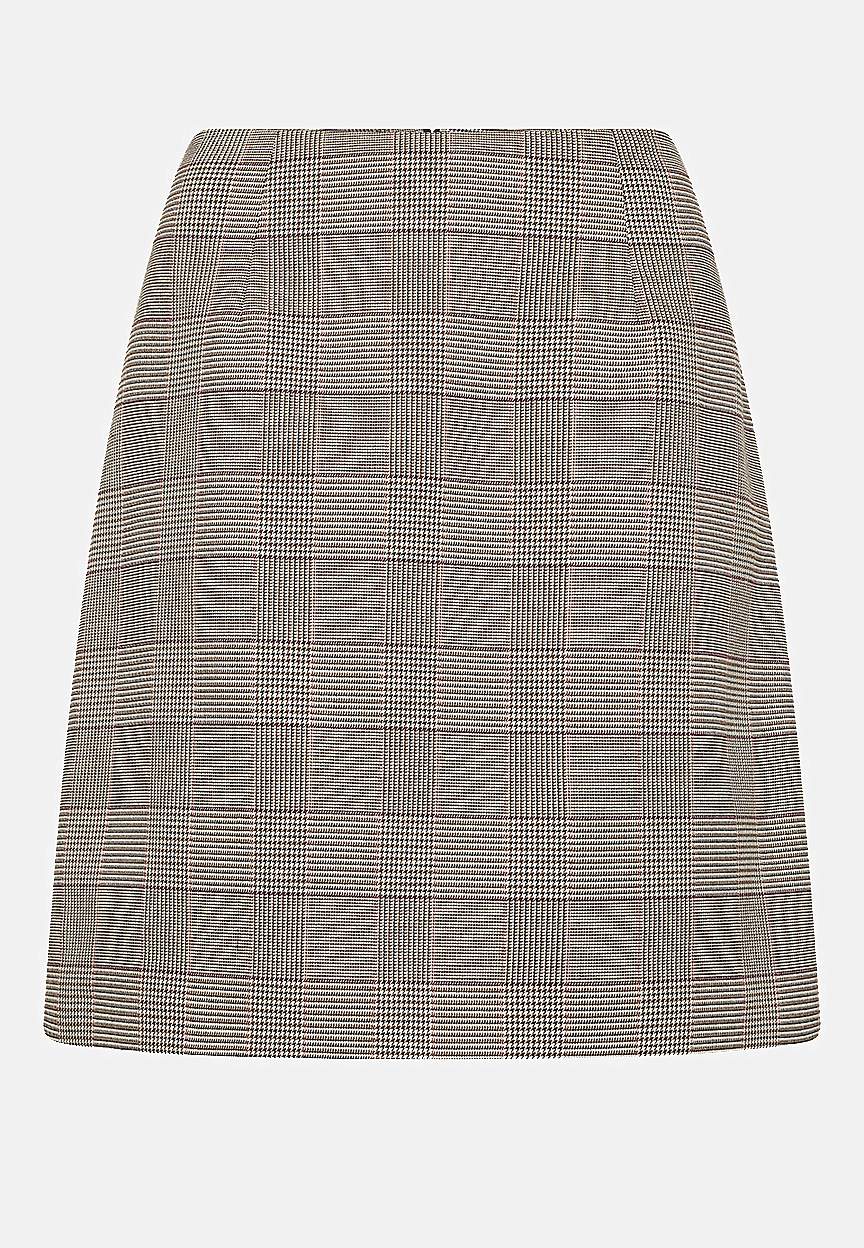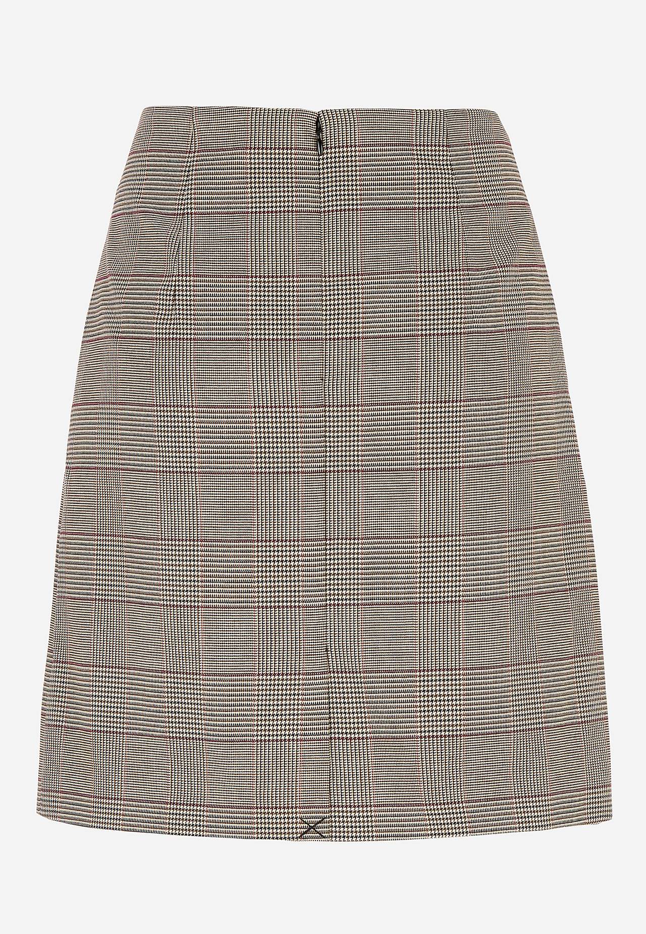 Tyylikäs, vuorattu hame klassisella ruutukuviolla. Vartalonmyötäinen istuvuus. Laskos sekä edessä ja takana parempaa istuvuutta varten. Vetoketju takana hakaskiinnityksellä. Halkio takana. Suora helma. Yhdistä vapaasti tähän tuotteeseen: 701109. PItuus noin 51 cm koossa 38.