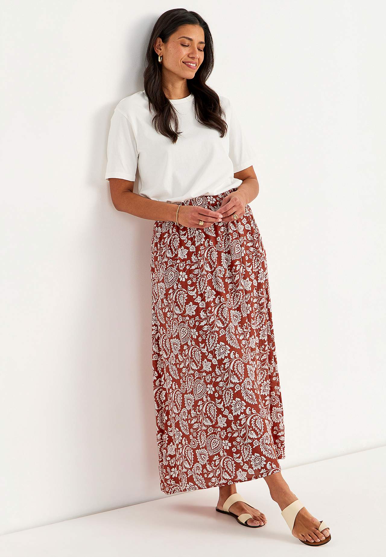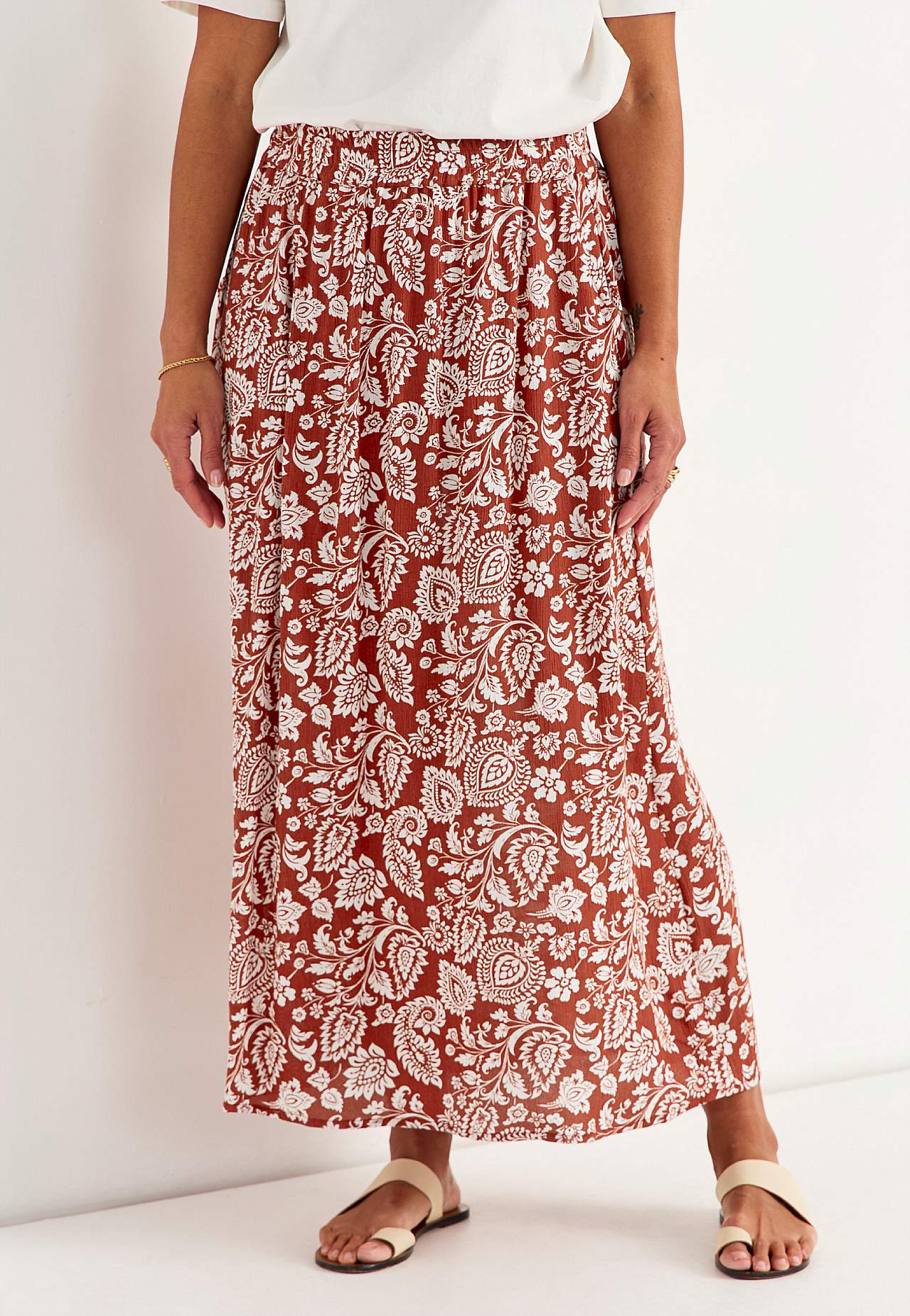 Pitkä, kudottu viskoosihame taskuilla. Kreppimateriaali mattapinnalla ja hienolla rakenteella. Pehmeä ja laskostuva viileällä tuntumalla. Leveä, pehmeä joustava vyötärönauha. Vinotaskut edessä. Suora helma. Yhdistä vapaasti tähän tuotteeseen: 702443. Pituus: 95 cm.