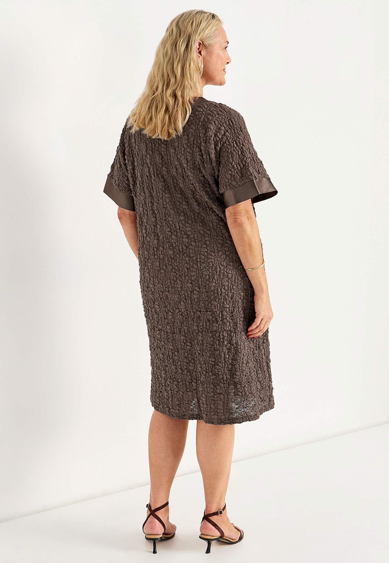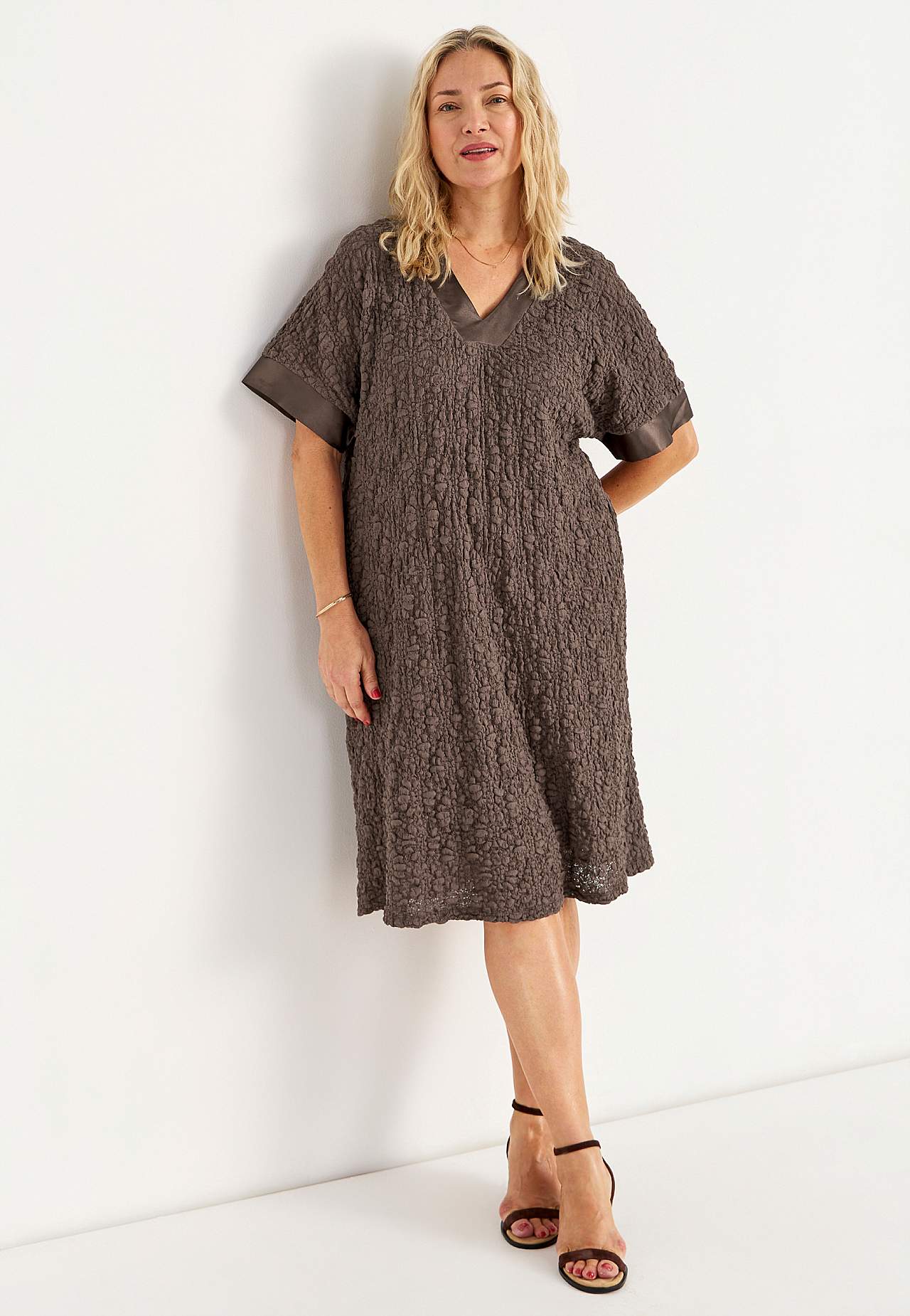 Vuorattu juhlamekko ihanasta, joustavasta pitsijerseystä. Tyylikäs satiinireuna kaula-aukossa ja hihansuissa. Pehmeä, joustava vuori trikoosta. Hieman A-linjainen, ylisuuri istuvuus hieman tyköistuvammalla yläosalla. V-pääntie satiinireunalla. Leveä, vuoraamaton kaftaanihiha satiinireunalla hihansuissa. Suora helma. Pituus ... Lue lisää