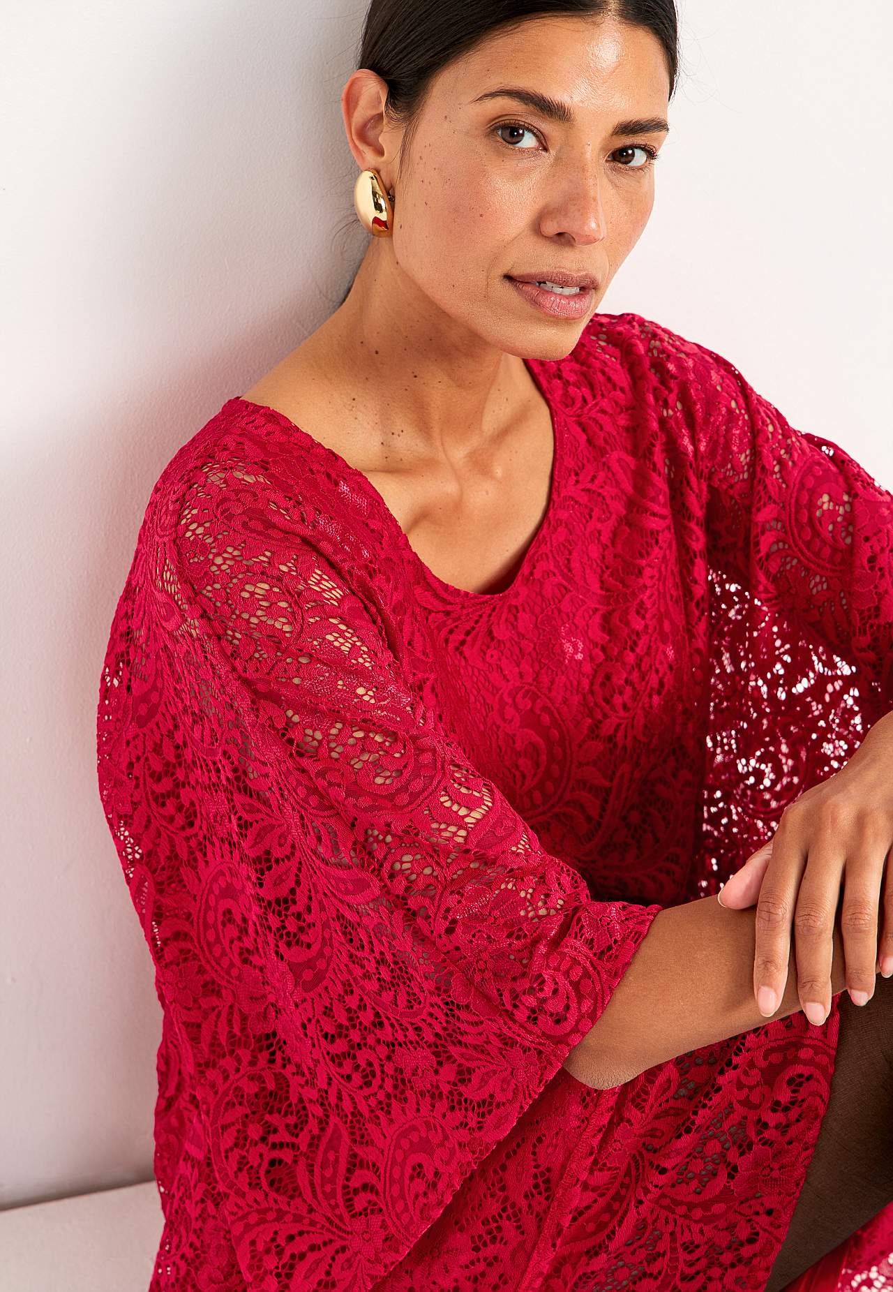 Ilmava kaftaanimalli joustolla. Joustava jerseyvuori tiukalla istuvuudella. Malli pyöreällä kaulalla. Leveät, puolipitkät, vuoraamattomat hihat. Takapituus koon mukaan n. 94-106 cm.