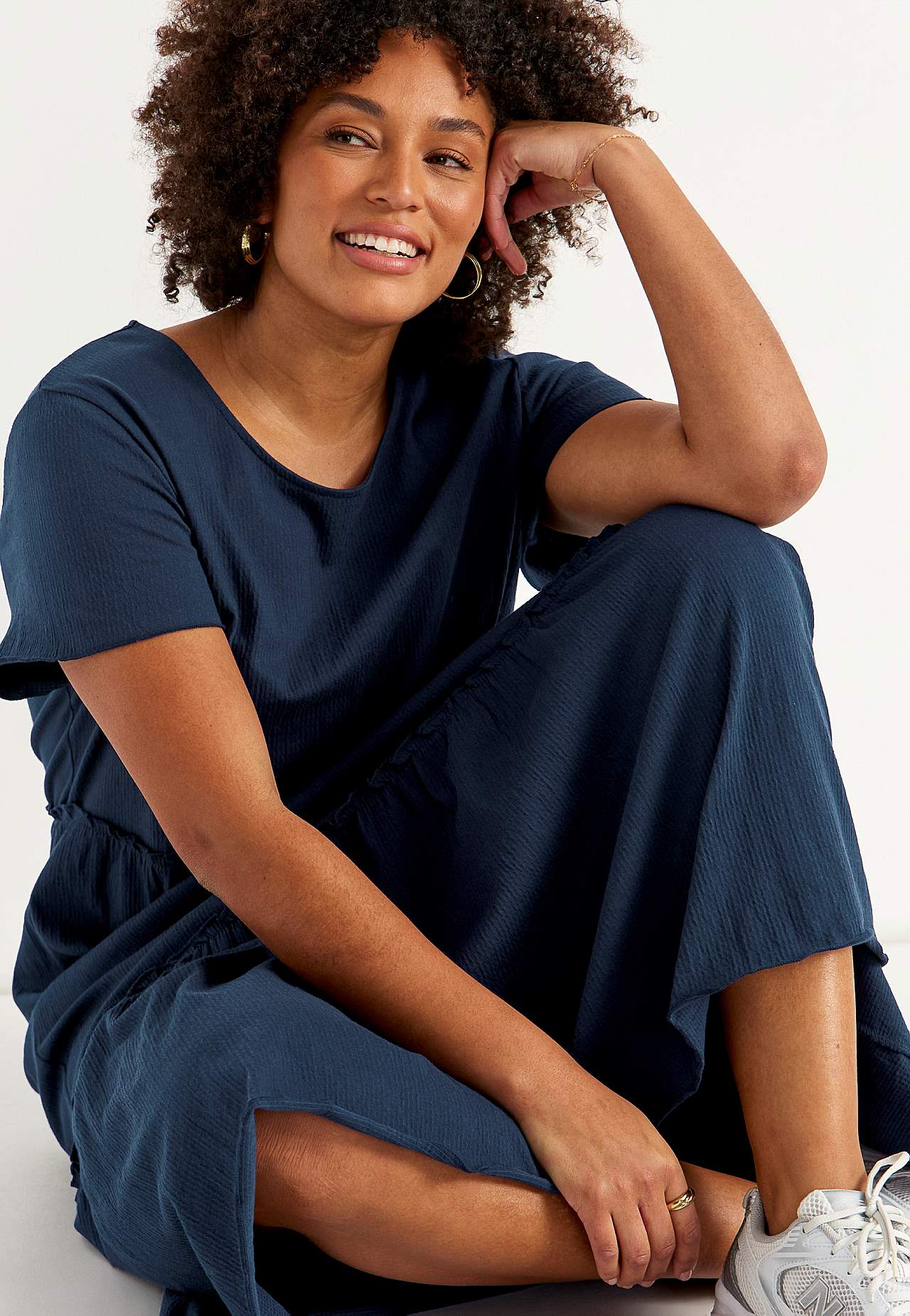 Mekko rypytetystä puuvillajersey-kankaasta