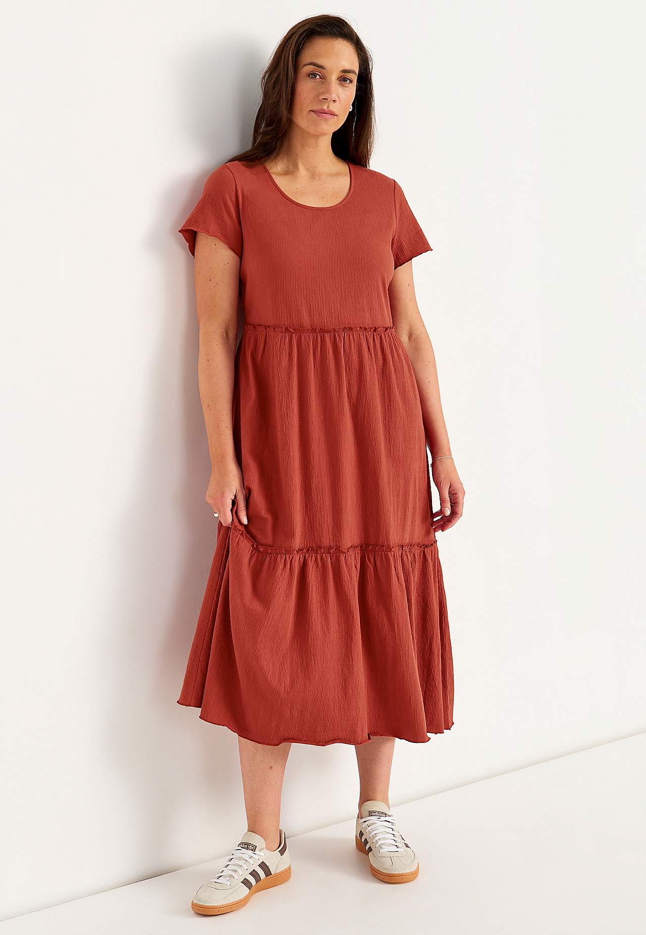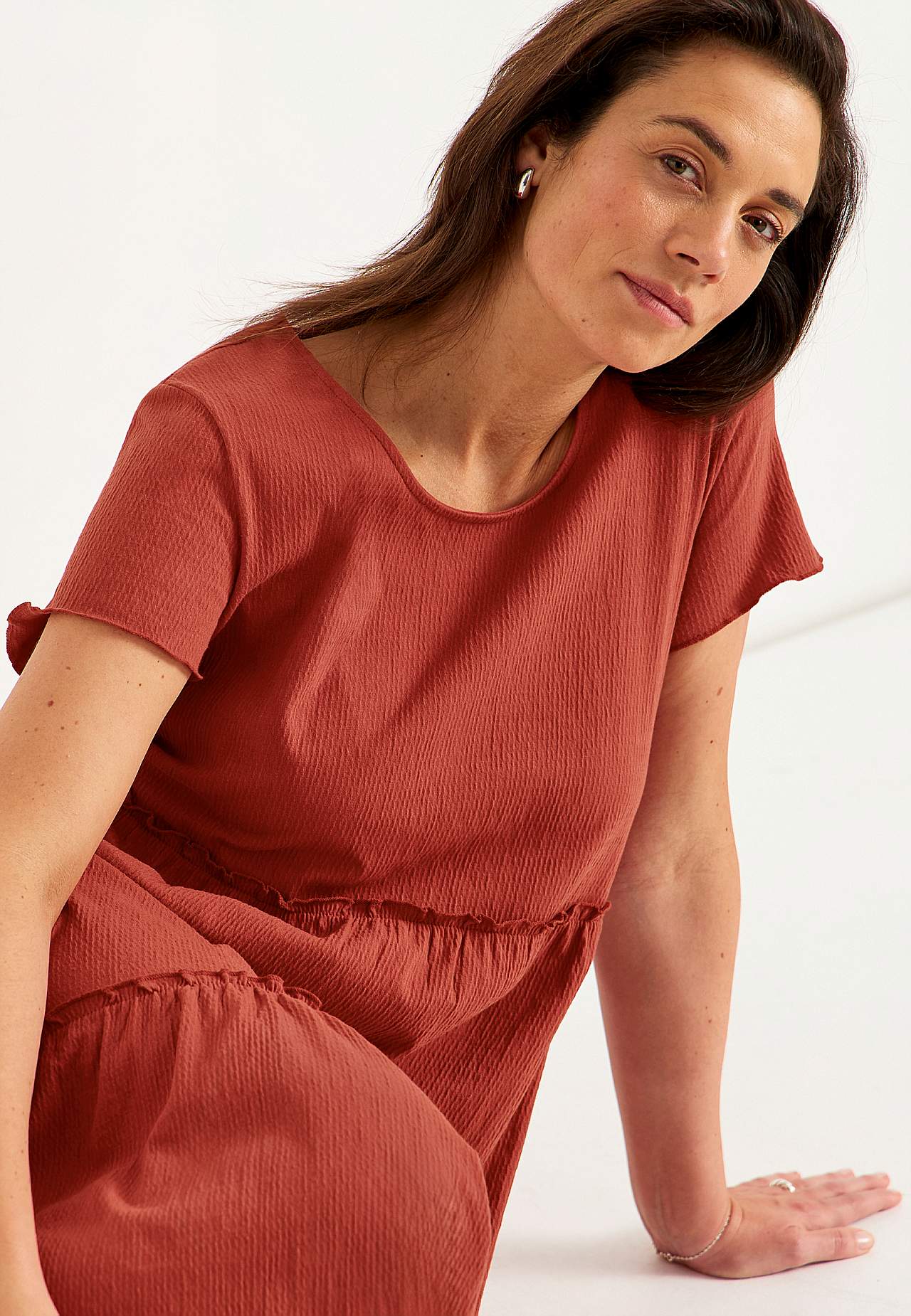Mekko rypytetystä puuvillajersey-kankaasta
