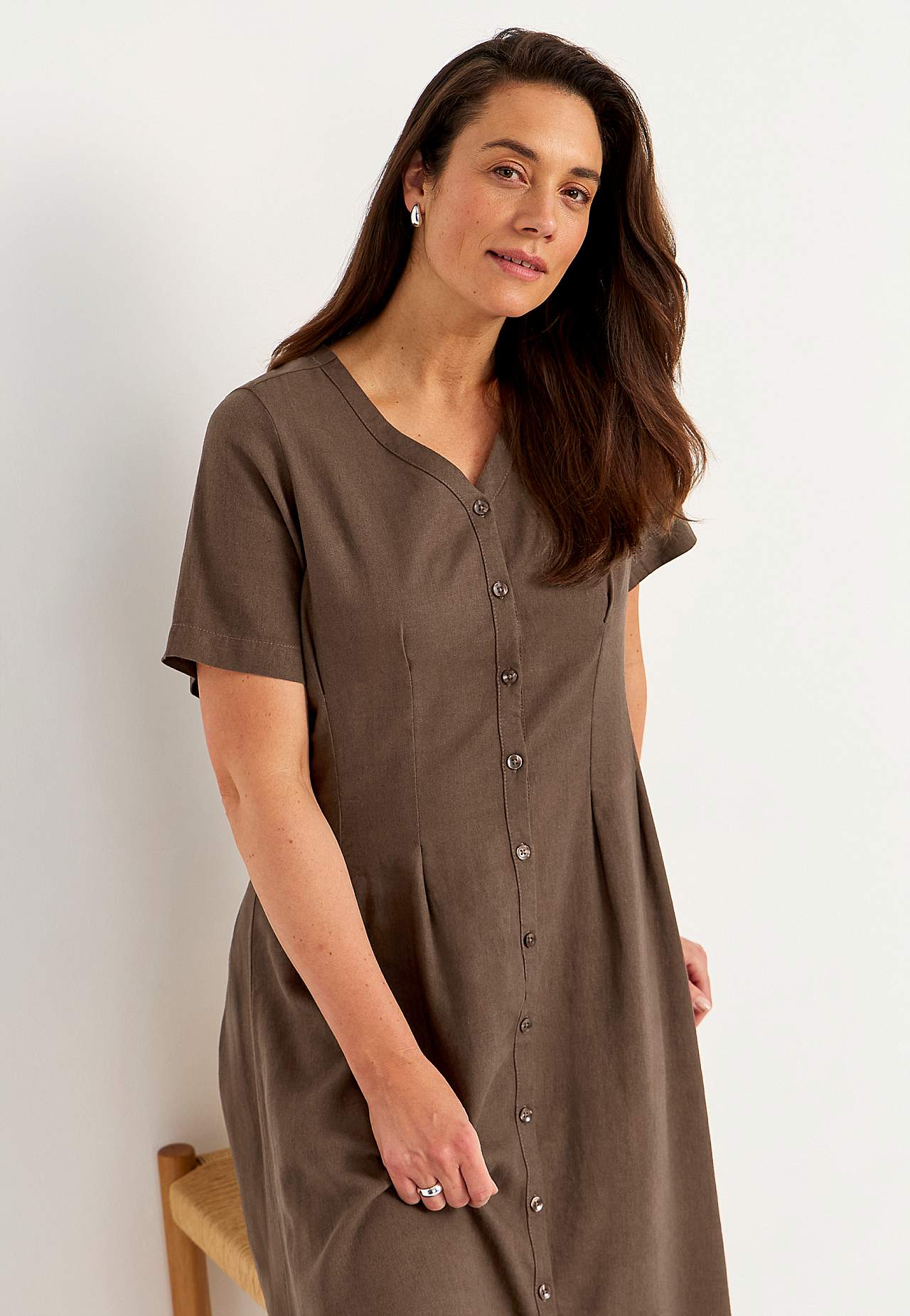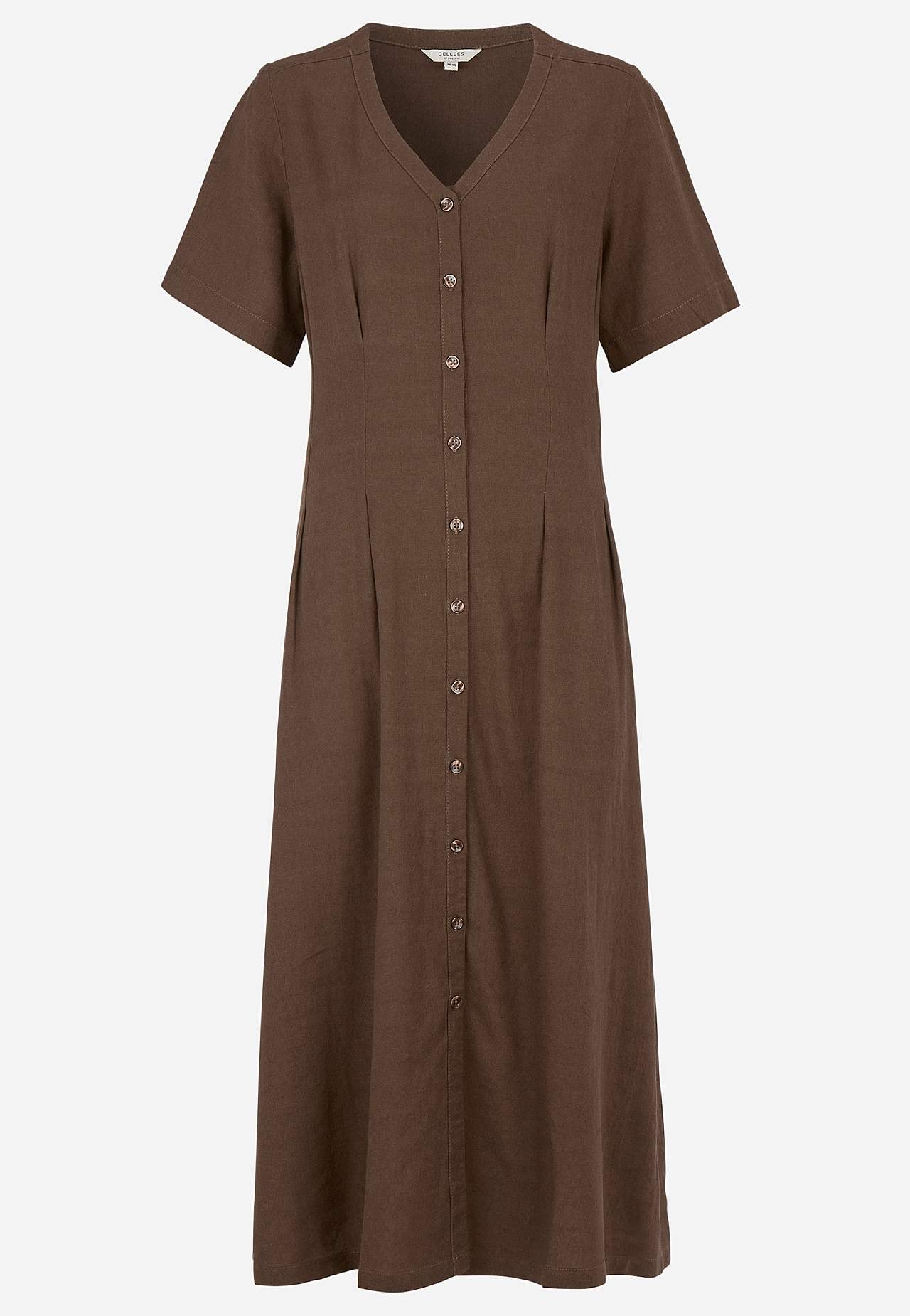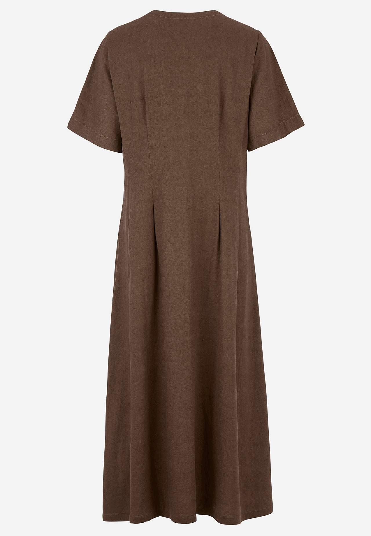 Kudottu mekko ilmavasta pellava-viskoosiseoksesta. Pehmeä, hieman raskaampi materiaali luonnollisella rakenteella. Normaali istuvuus. V-kaula-aukkoinen, napitettu malli. Lyhyet, leveät hihat. Hieman tyköistuva vyötärön kohdalla ja leveämpi hameosa. Koristeommelet edessä ja takana imartelevalla vekillä. Lievästi pyöristetty ... Lue lisää
