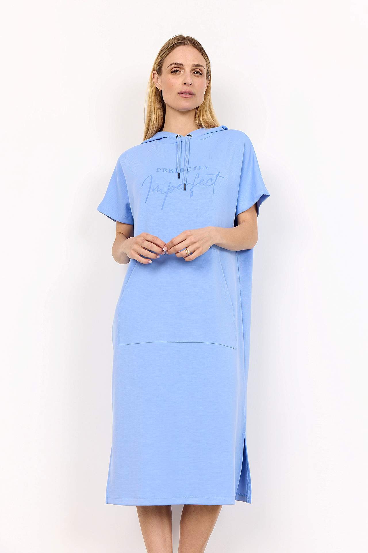 College-mekko pehmeästä modaalisekoitteesta ylisuurella mallilla. Hieman paksumpi, ihana trikoolaatu. Suuri huppu kiristysnyörillä. Tekstiprintti edessä. Suuri etutasku. Lyhyet hihat. Suora helma halkiolla sivuilla. Pituus olkapäästä n. 110 cm koossa S (38).