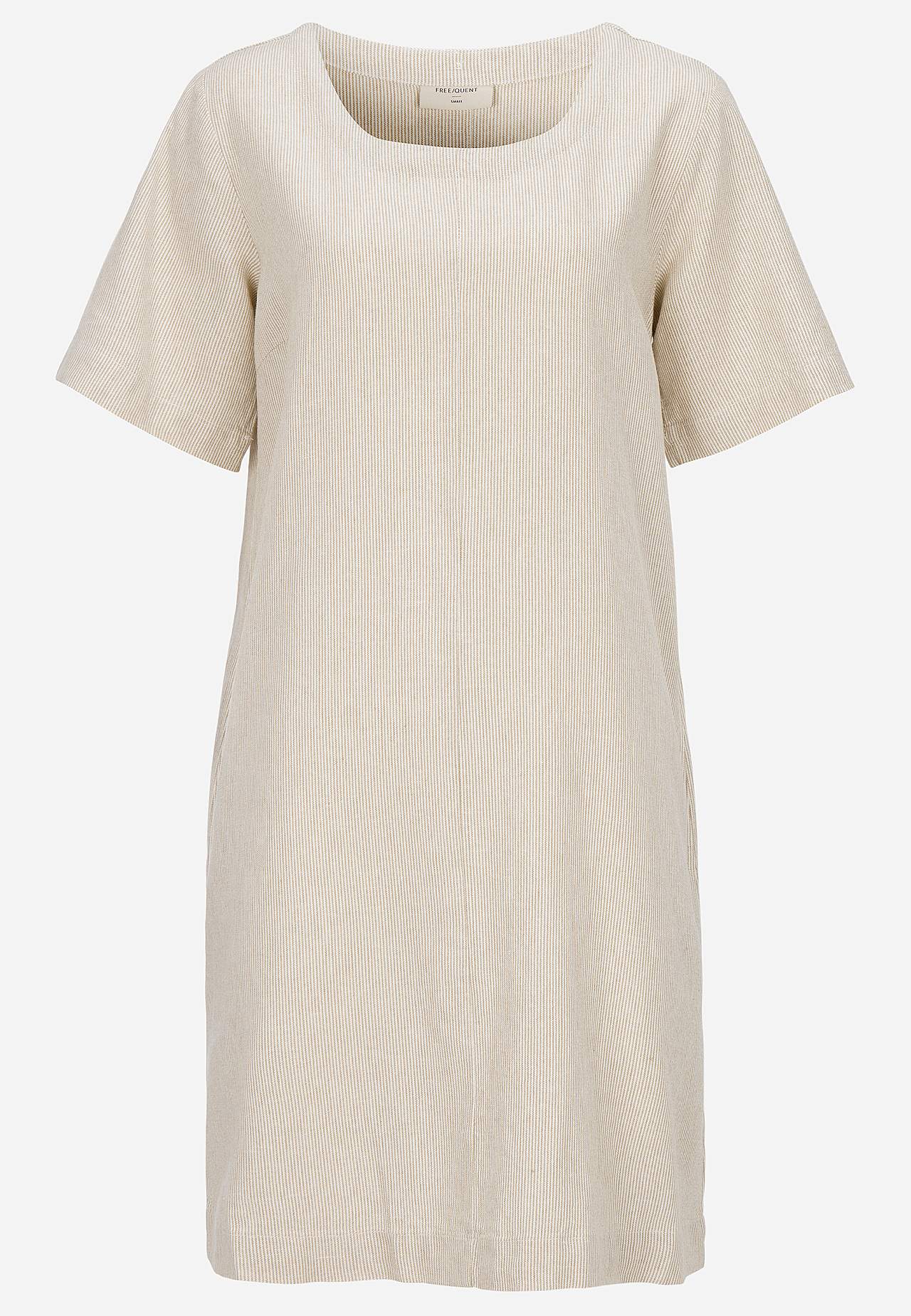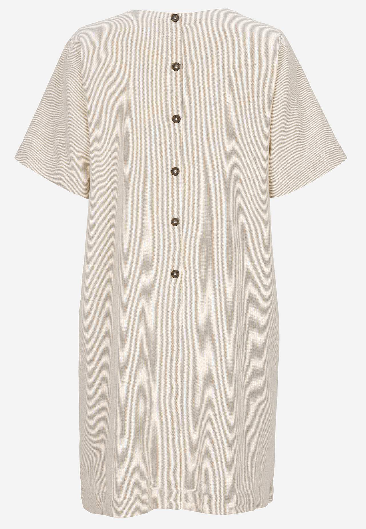 Lyhythihainen pellavamekko lankavärjätyillä raidoilla