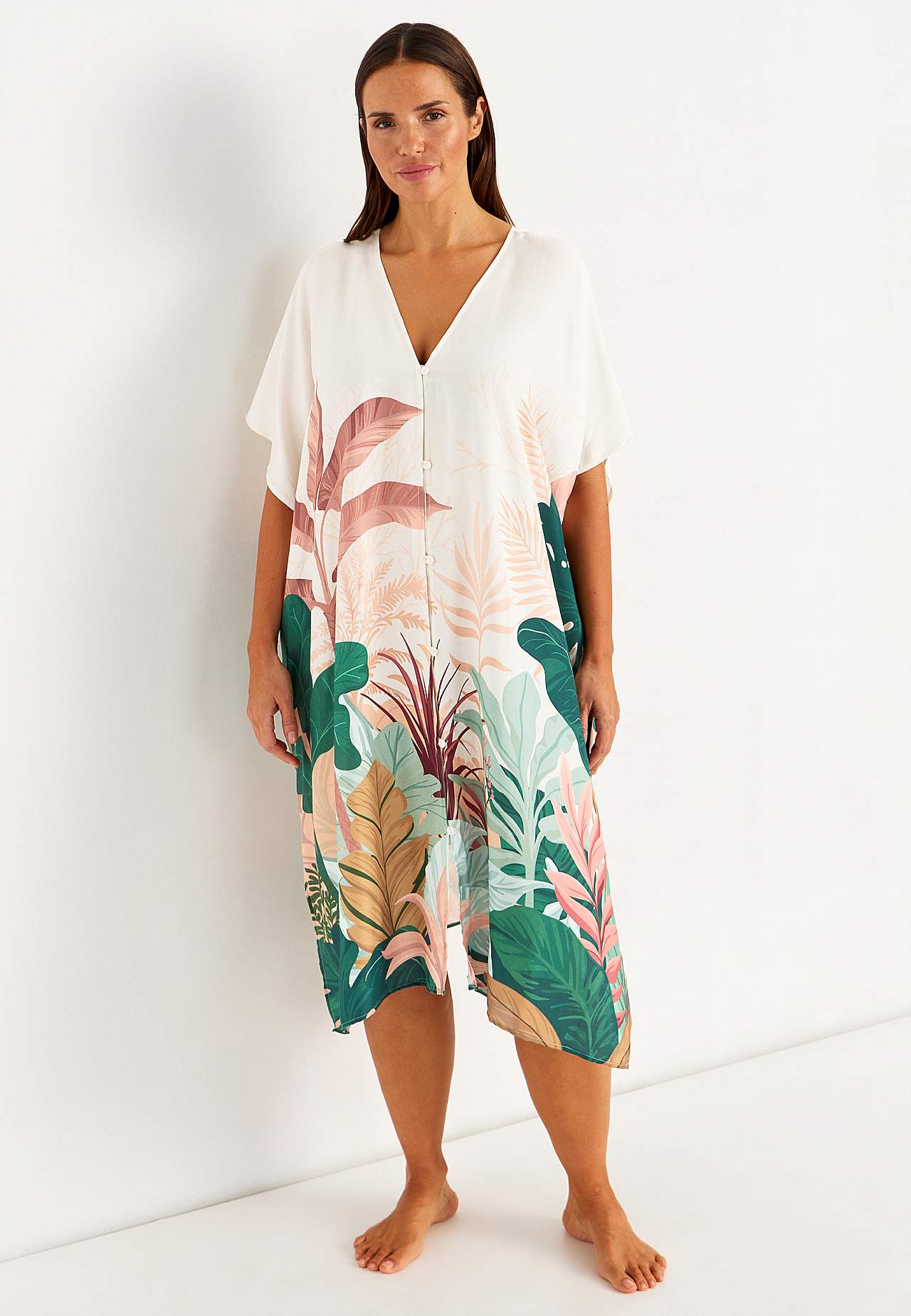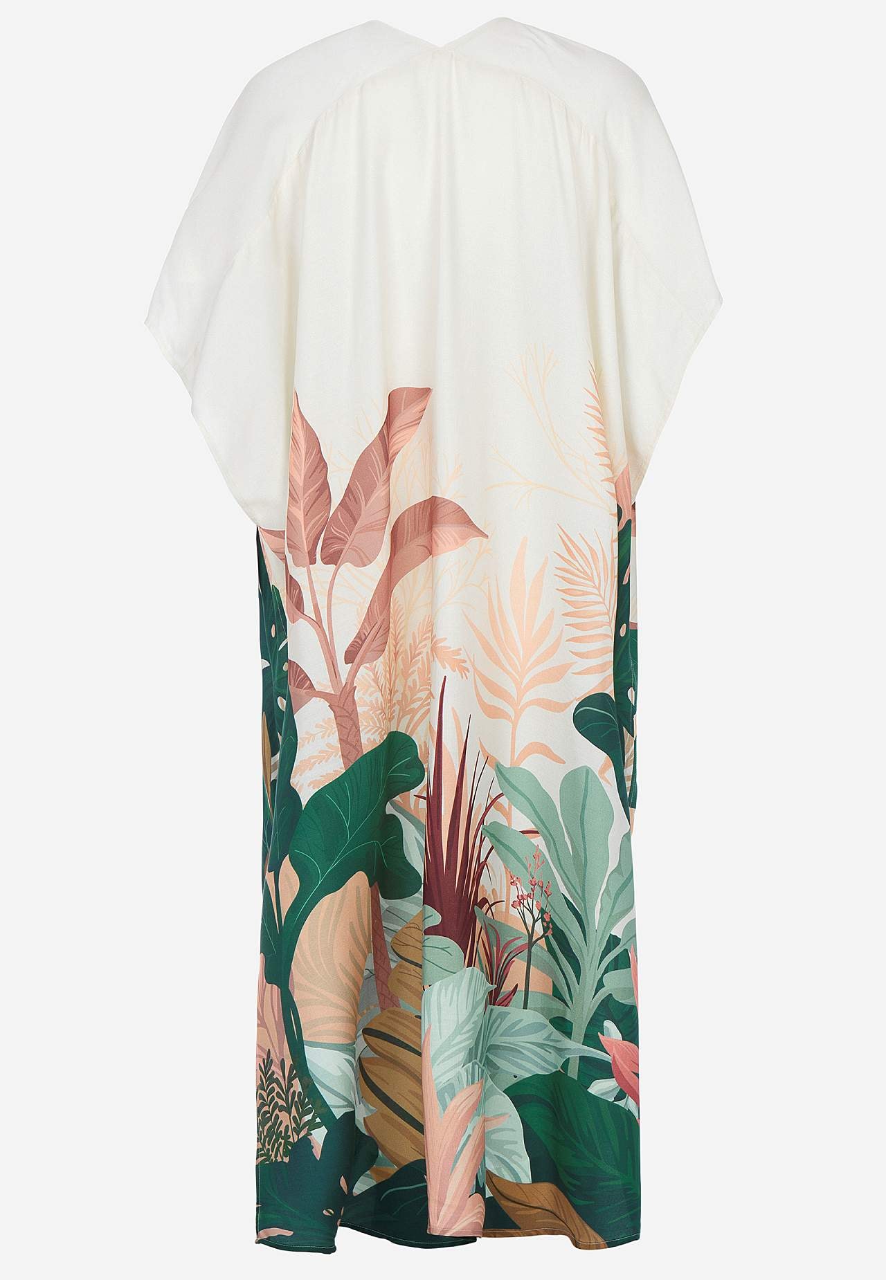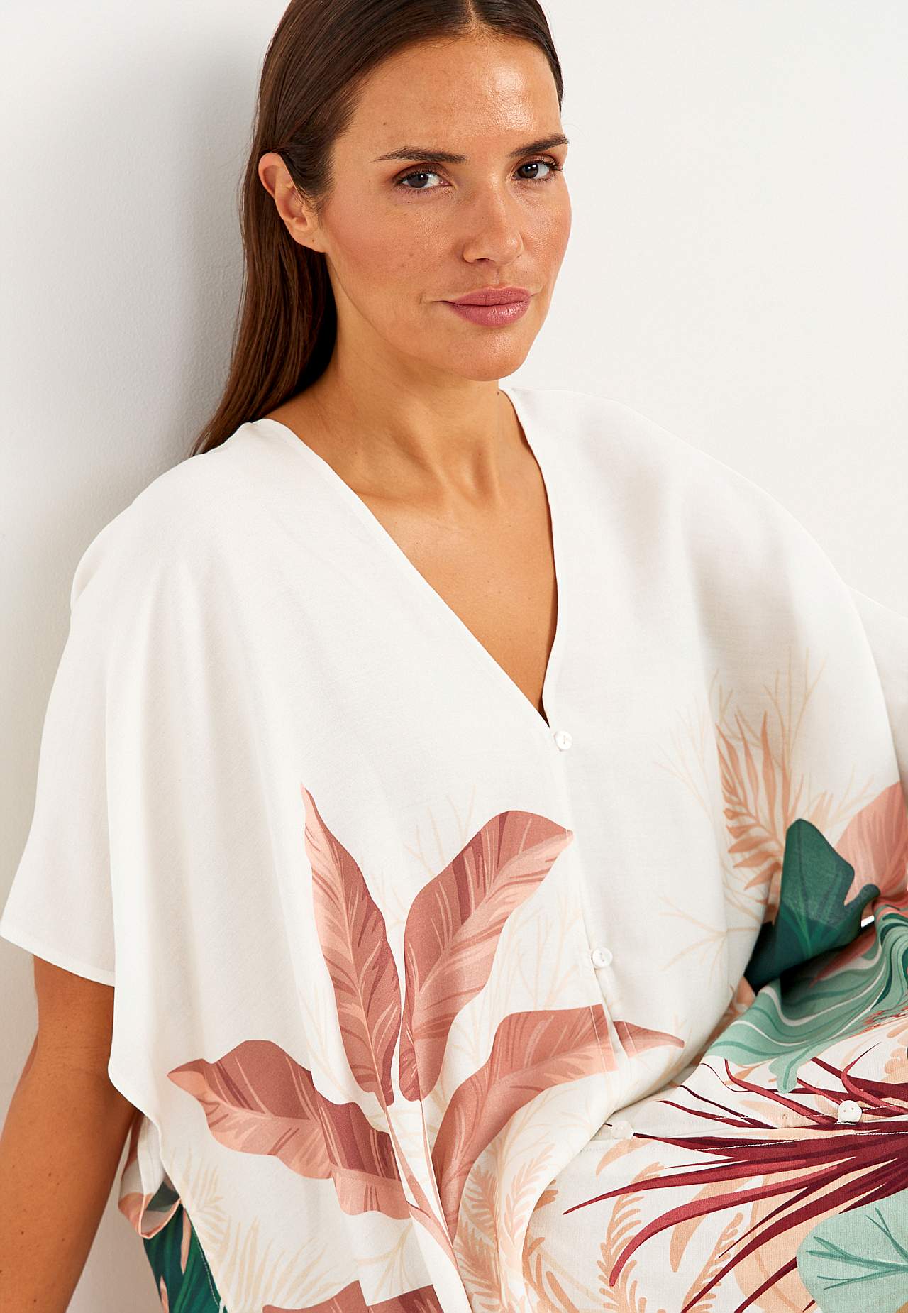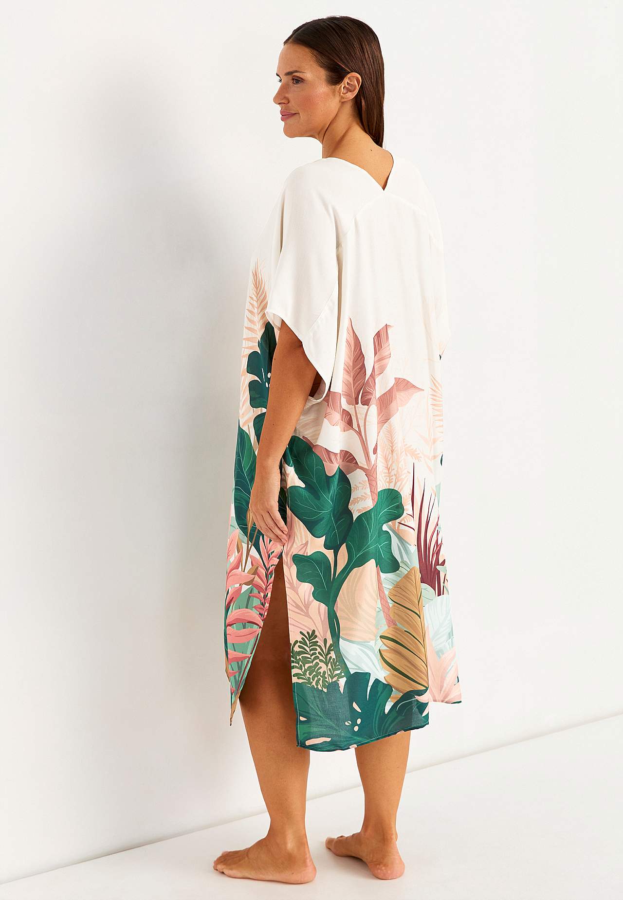Ihanan ilmava, pehmeä kaftaani. Tilava istuvuus kauniilla laskeutumisella. Halkiot sivuilla. Pituus olalta n. 115 cm kaikissa kooissa.