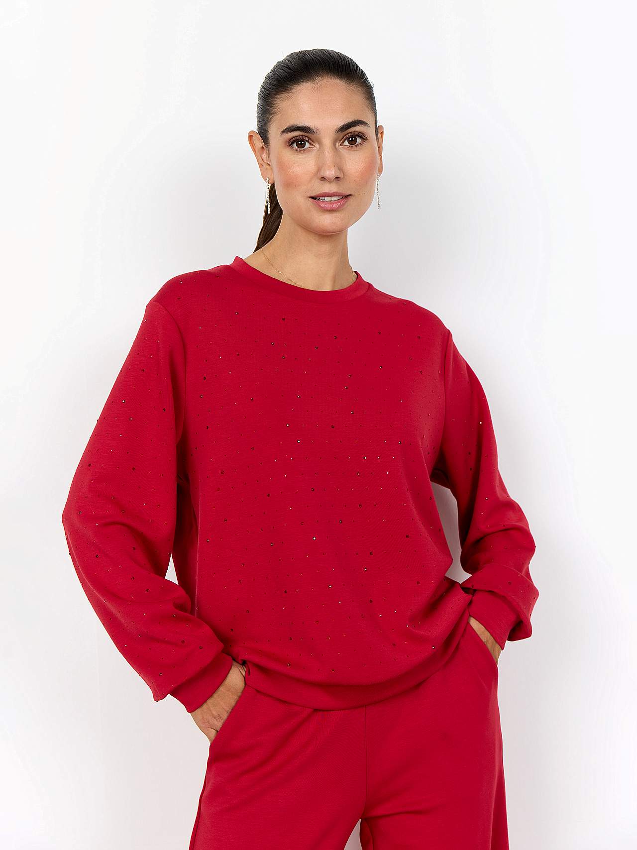 Collegepaita strassiyksityiskohdilla edessä ja hihoissa. Silkinpehmeä, hieman raskaampi trikoo modaalisekoitteesta. Rento istuvuus. Pyöreä pääntie. Laskettu olkapää. Pitkät hihat resorilla. Suora helma resorilla. PItuus noin 62 cm koossa S (38).