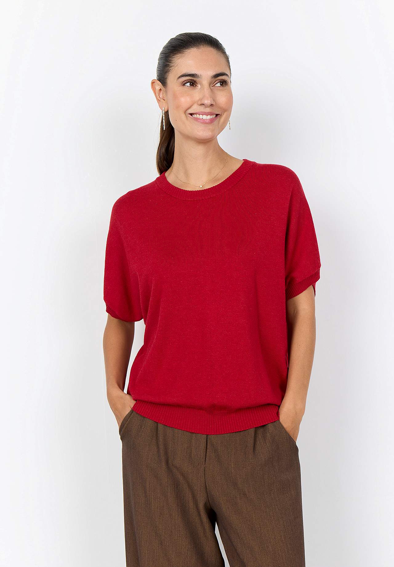 Tiheäsilmukkainen villaneulepusero siistillä siluetilla. Pehmeä laatu kevyellä hohdolla. Suora istuvuus. Pyöristetty kaula-aukko. Lyhyet pingviinihihat. Suora resorihelma. Pituus olkapäästä n. 62 cm koossa M (40).
