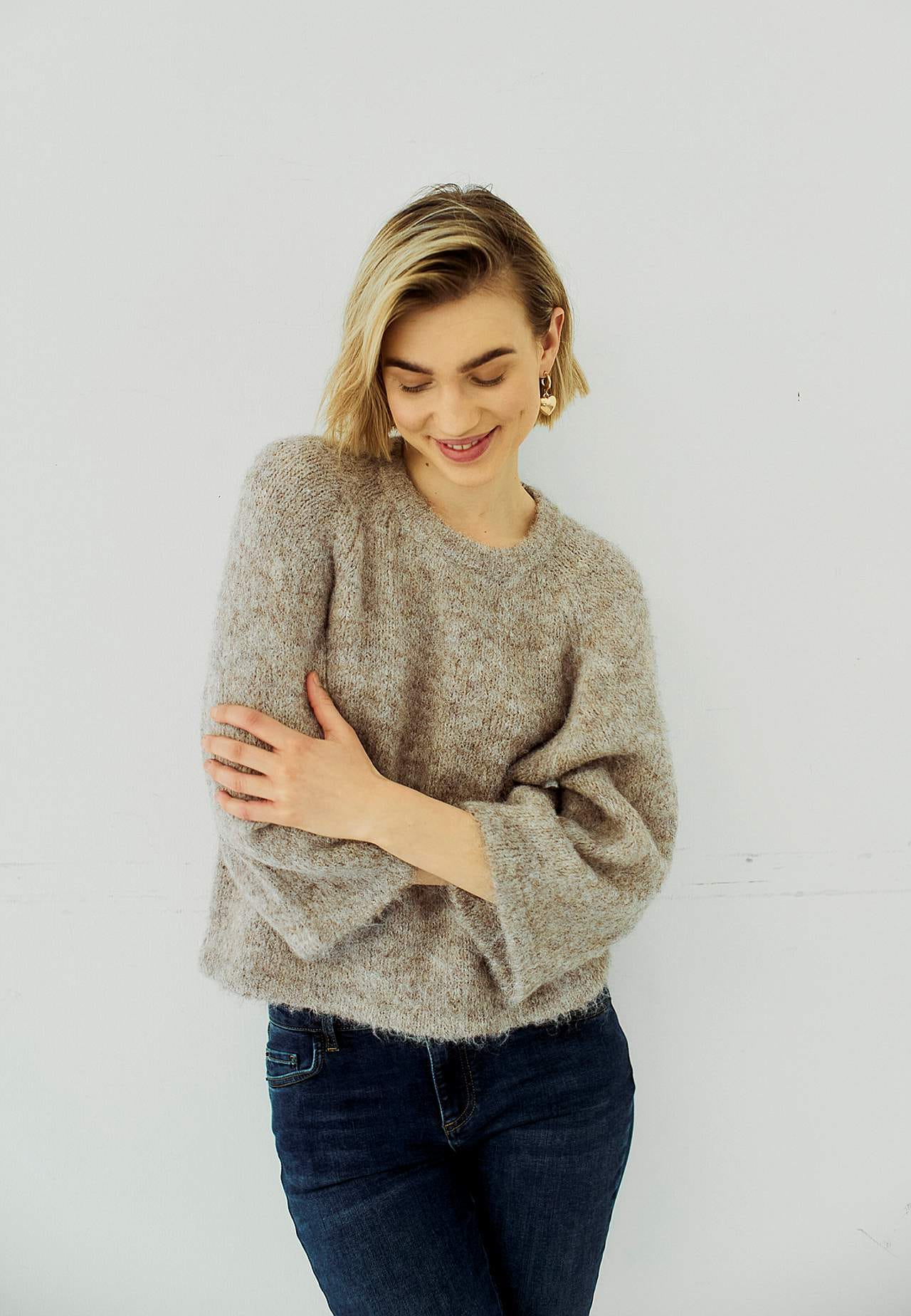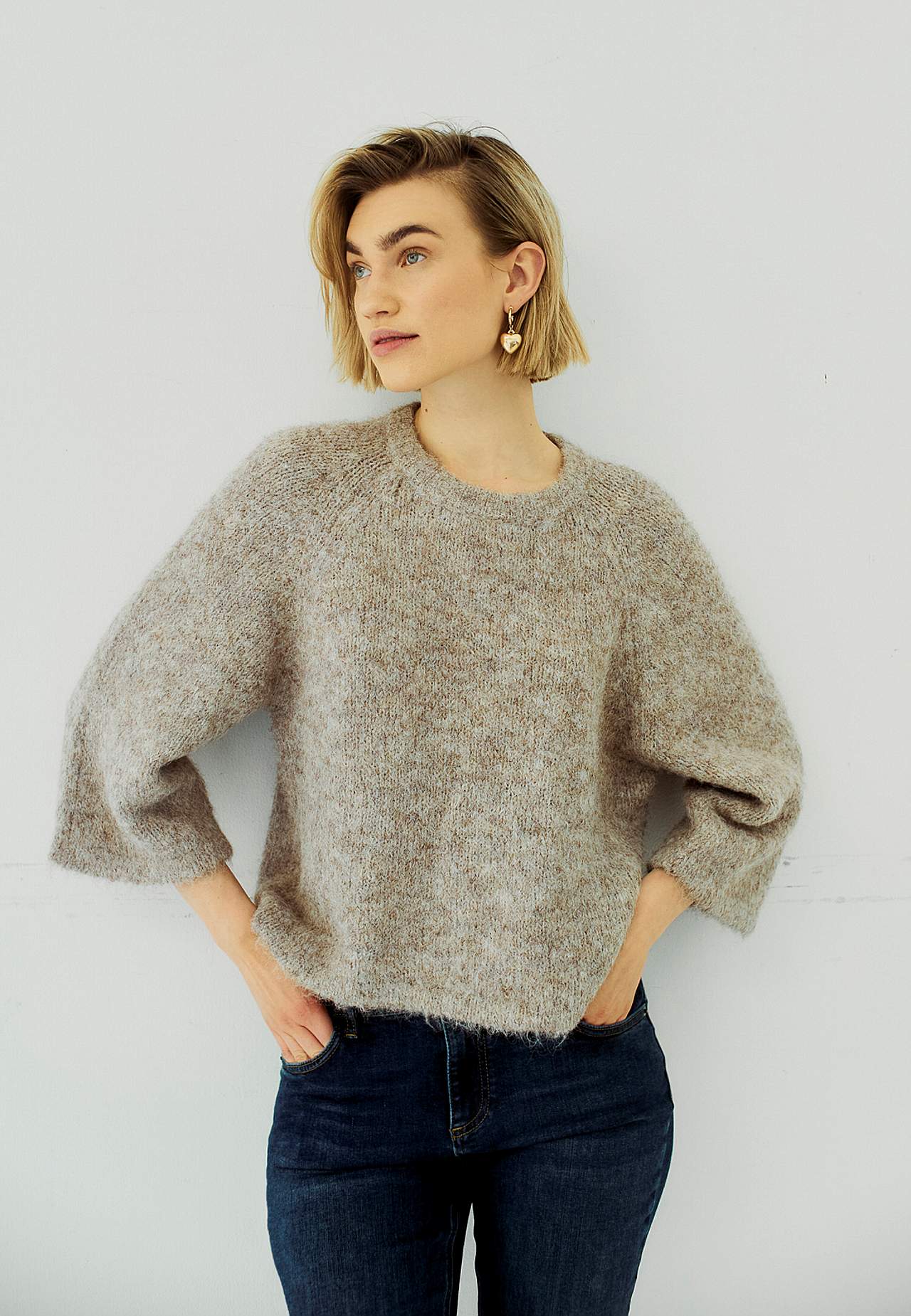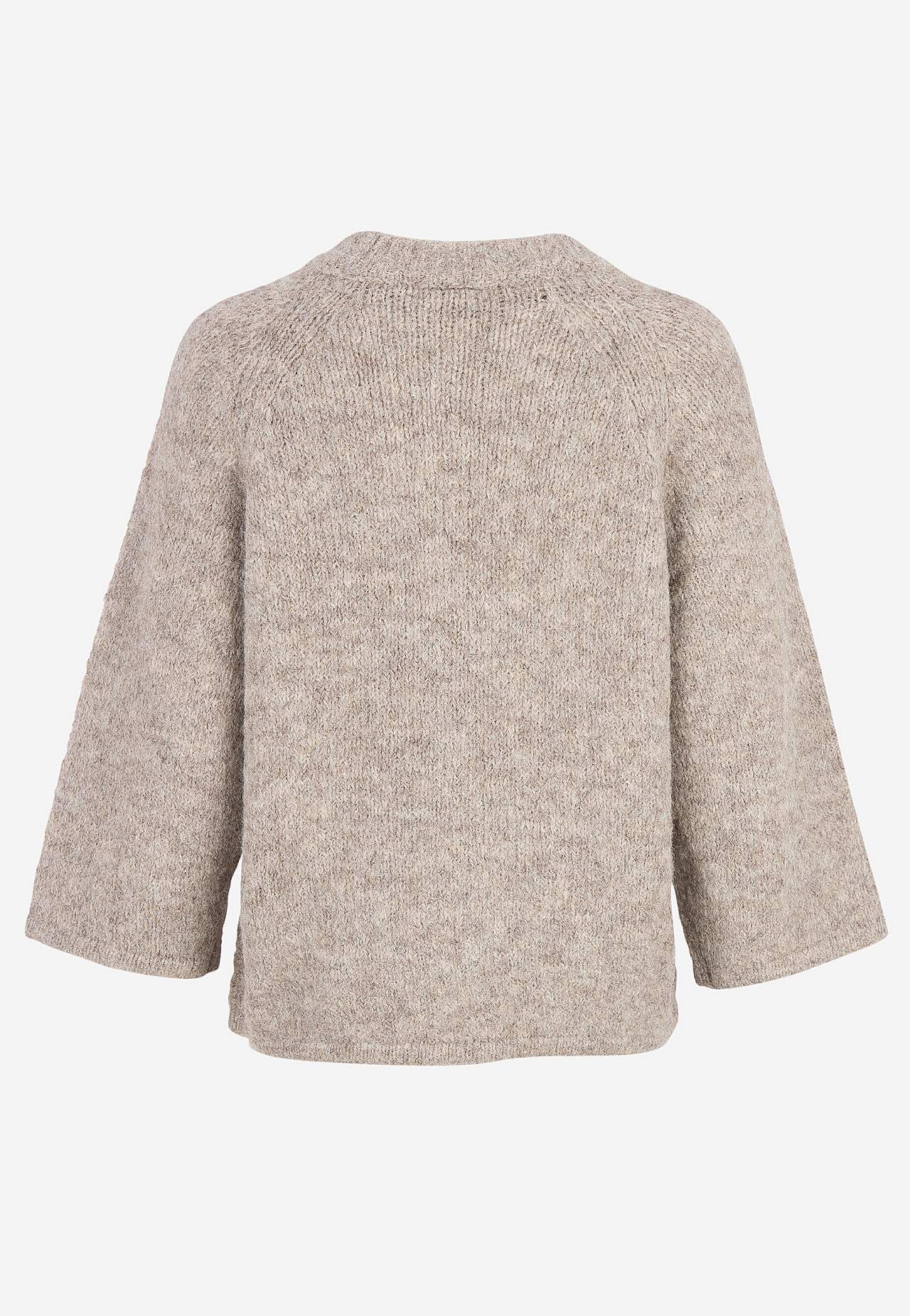 Mukava, hyvin pehmeä pusero. Rento istuvuus. Pyöreä, joustinneulottu pyöreä pääntie. Leveät, 3/4-pituiset raglanhihat. Joustinneulottu resori alahelmassa, kaula-aukossa ja hihansuissa. Suora helma. Pituus olkapäästä n. 57 cm koossa S (38).