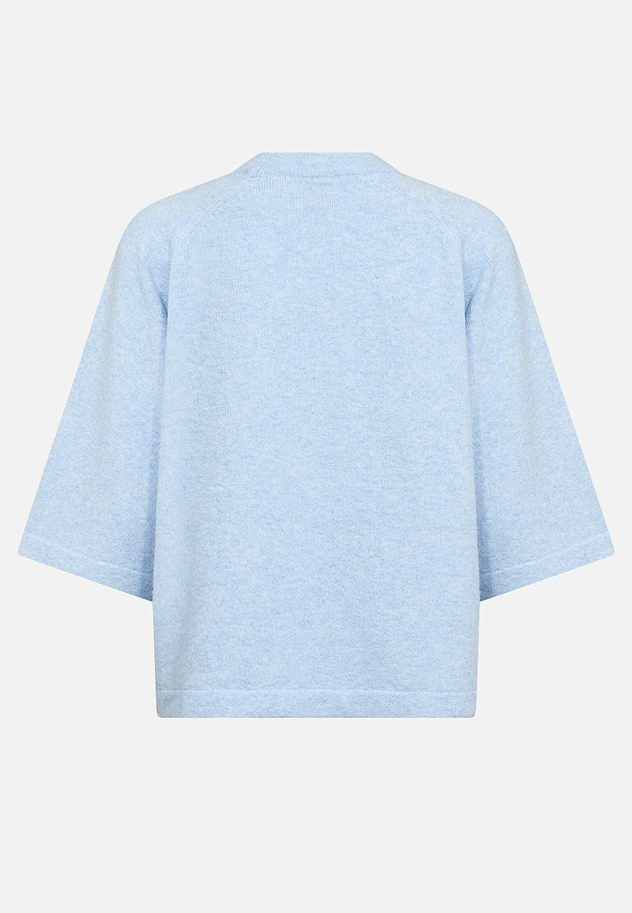 Neulottu, ilmava paita meleeratusta langasta. Pehmeä, joustava materiaali. Suora, rento istuvuus. Pyöristetty, joustinneulottu pääntie. Puolipitkät, leveät raglanhihat. Suora helma. Pituus olkapäästä n. 58 cm koossa S (38).