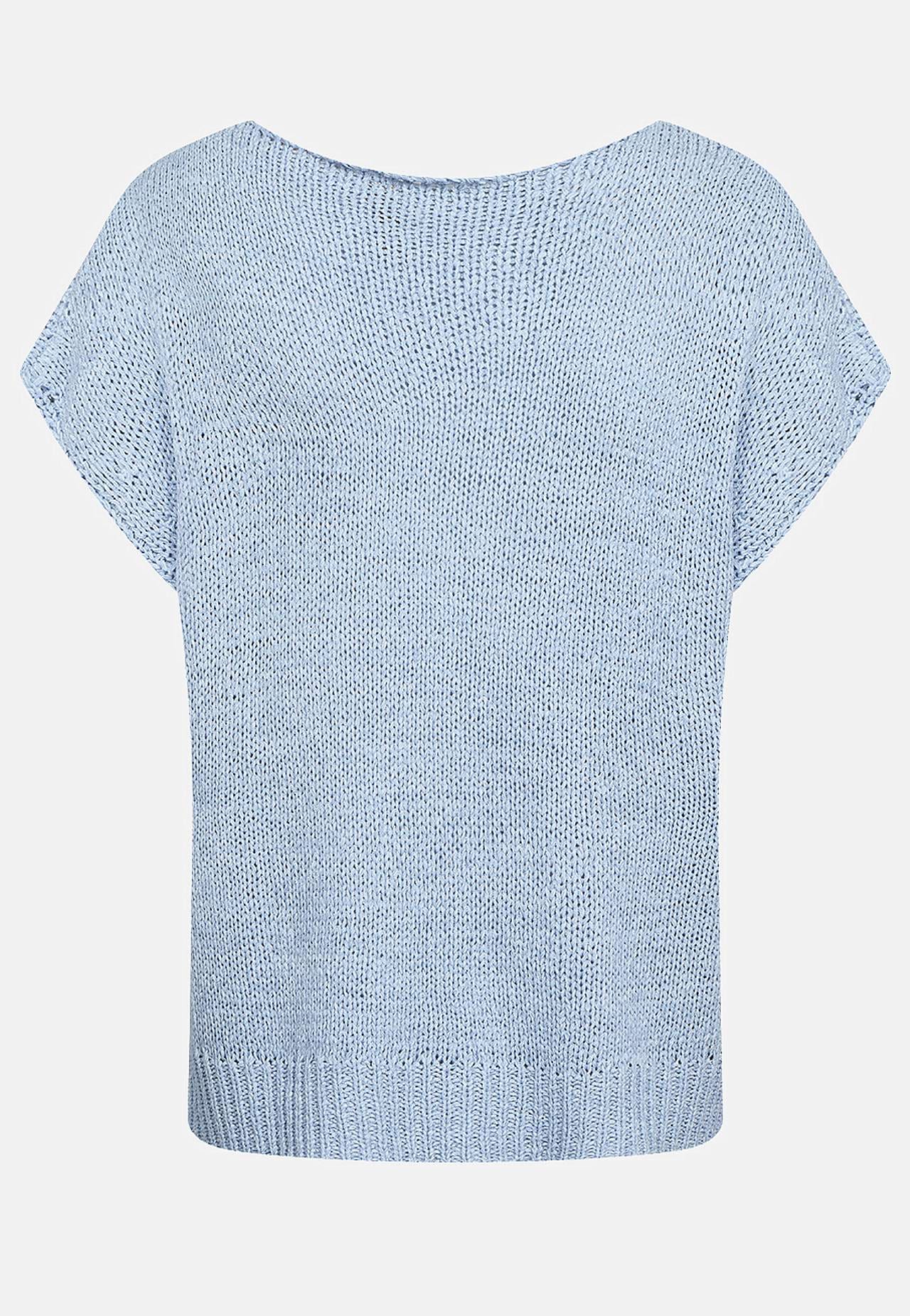 Ilmava, pehmeä paita kuvioinnilla reikämäisillä yksityiskohdilla edessä. Kaunis käytettäväksi topin tai hihattoman paidan yllä. Rento istuvuus. Pyöreä pääntie. Lyhyet holkkihihat. Suora, joustinneulottu helma. Pituus olkapäästä n. 57 cm koossa 38/40 (S/M).