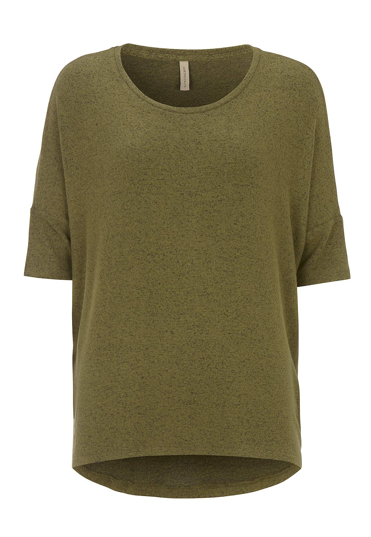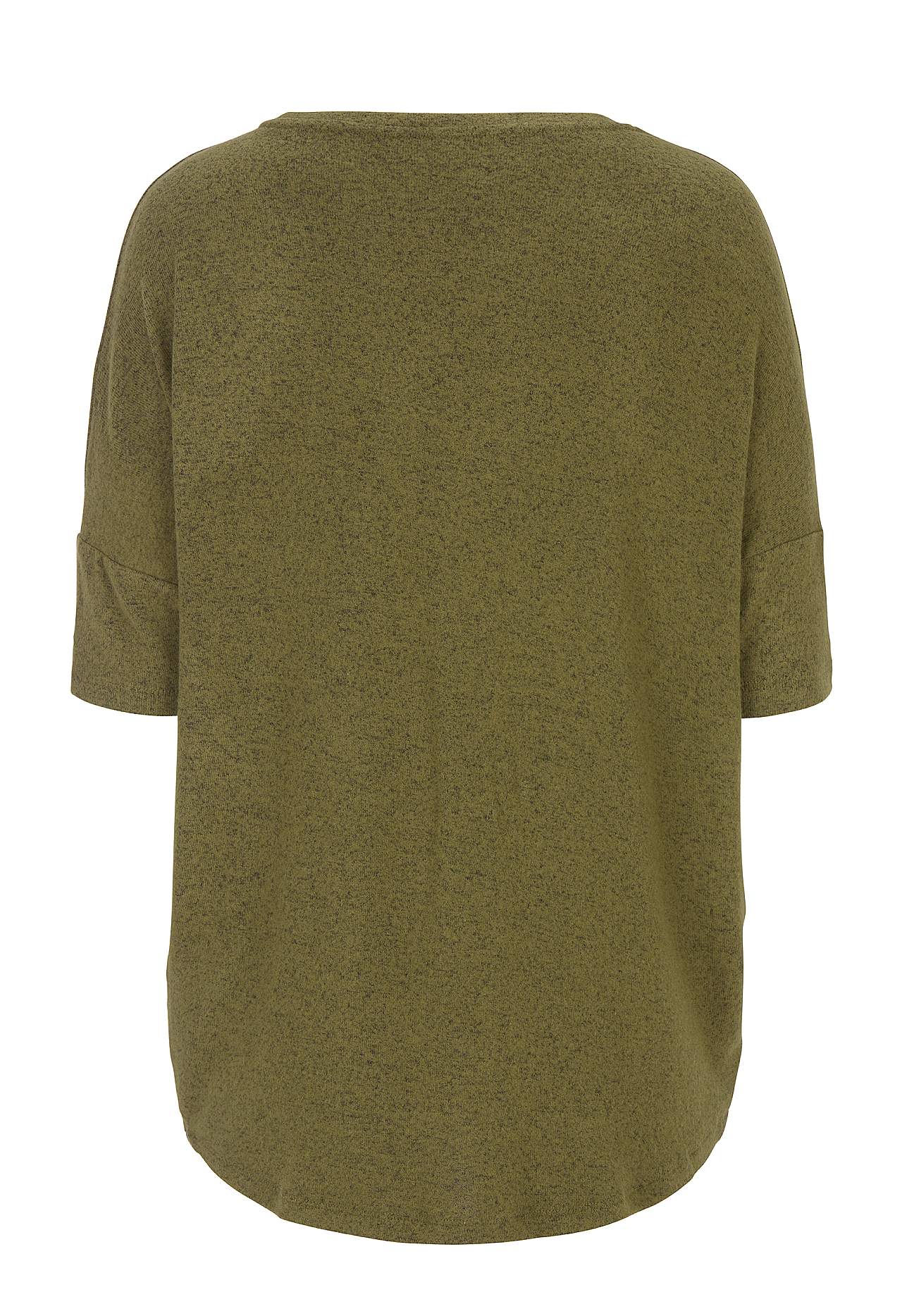 Toppi pehmeästä, harjatusta, hieman raskaammasta trikoosta. Ylisuuri istuvuus. Pyöristetty kaula-aukko. 3/4-hiha pudotetulla olkapäällä. Takaa hieman pidempi helma. Pituus keskellä etuosaa n. 62 cm. Takapituus keskeltä n. 70 cm koossa S (38). Yhdistä vapaasti tähän tuotteeseen: 700966.