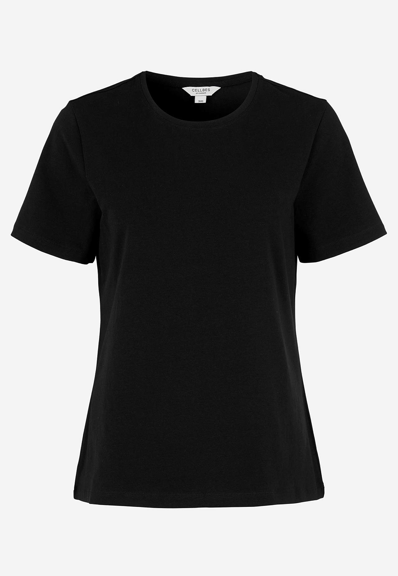 T-paita pehmeästä, orgaanisesta puuvillajersey-kankaasta mukavalla joustolla. Täydellinen perusvaate, jota voit käyttää ja rakastaa yhä uudelleen. Normaali istuvuus. Klassinen, pyöreä kaula-aukko. Lyhyet hihat. Takapituus olkapäältä koon mukaan noin 62-69 cm.