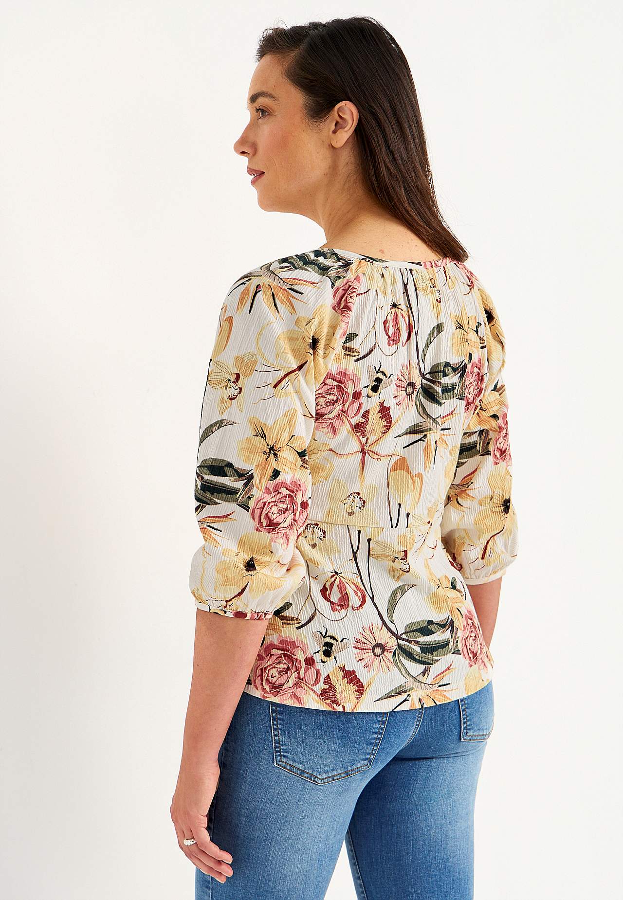 Toppi rypytetystä puuvillajersey-kankaasta