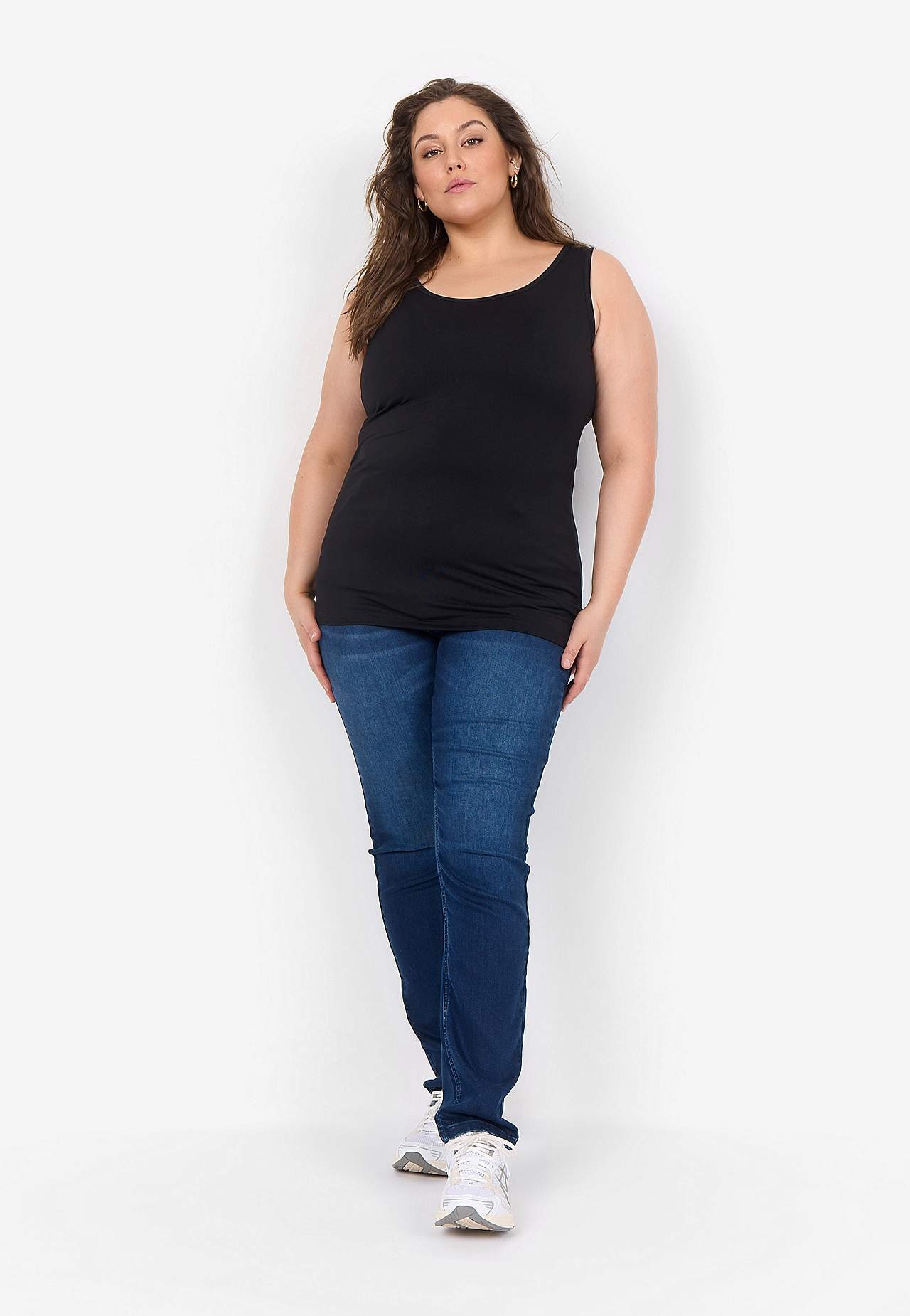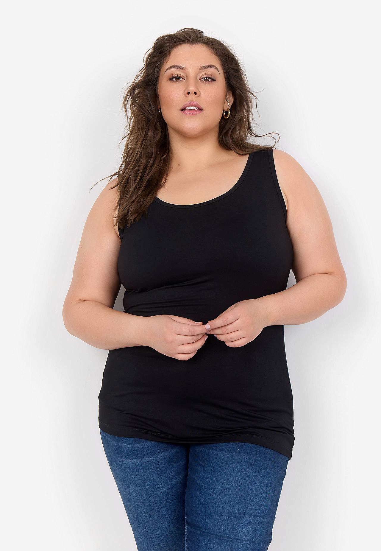 Ilmava hihaton paita pehmeästä lyocellista ja elastaanista. Tyköistuva istuvuus. Mukava, tilava malli. Pyöristetty kaula-aukko. Hihaton malli. Suora helma. Pituus olkapäästä n. 72 cm koossa M (46/48).