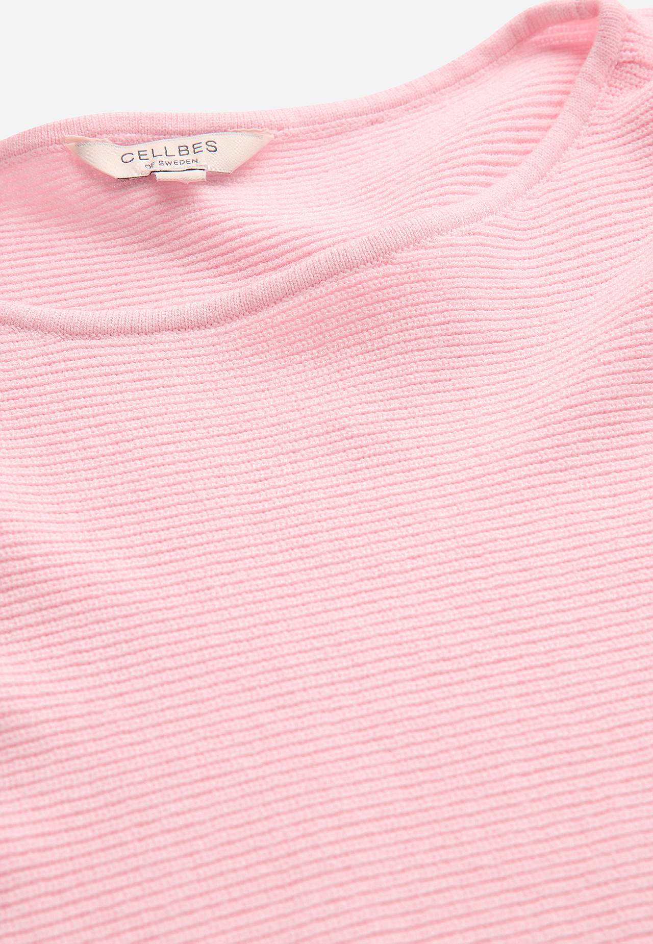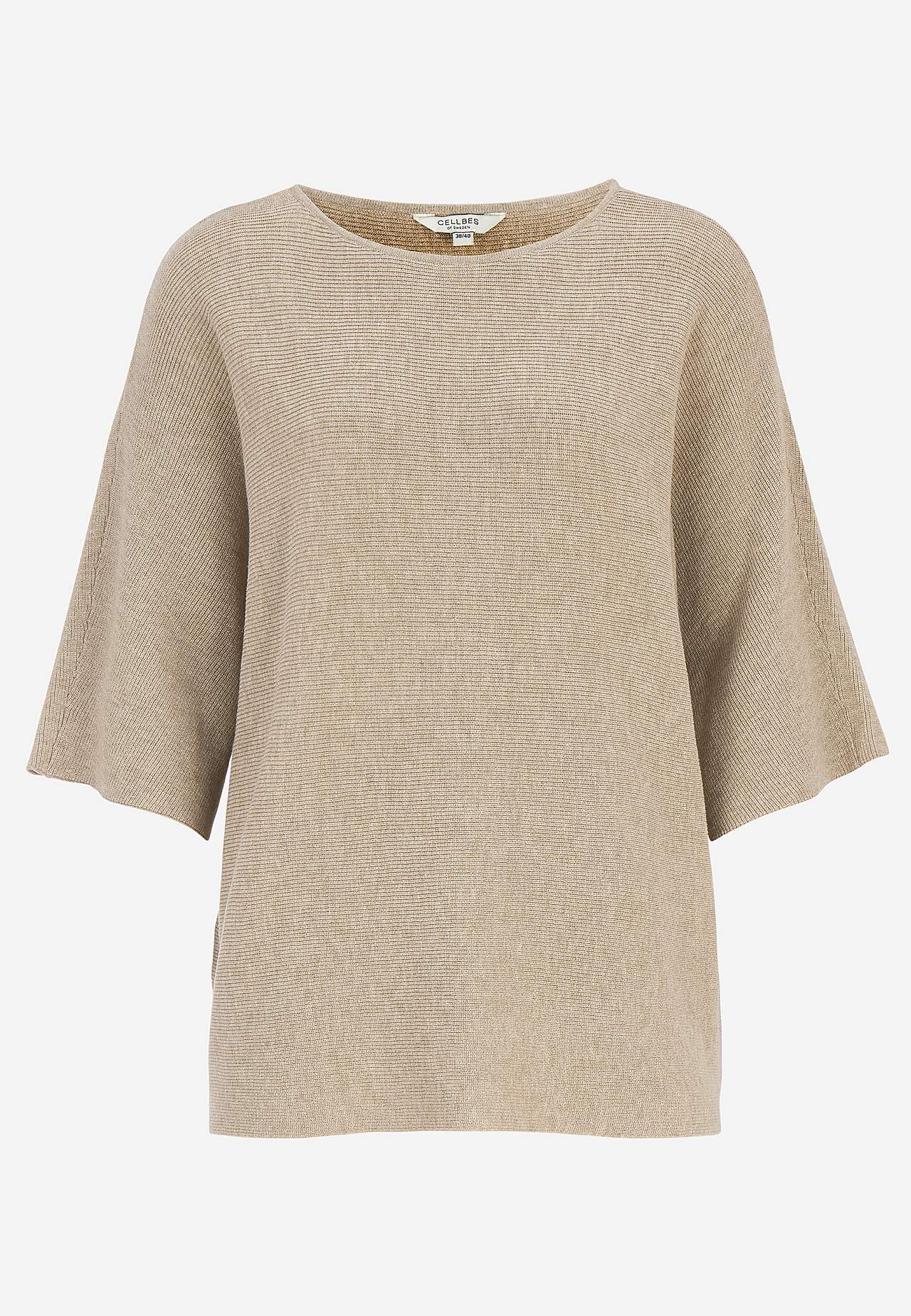 Pehmeä, joustava pusero. Vaakasuora ommel. Väljä ja rento istuvuus. Pääntie venepääntiellä. 3/4-pituiset pingviinihihat. Pituus olkapäältä koon mukaan noin 59-66 cm.