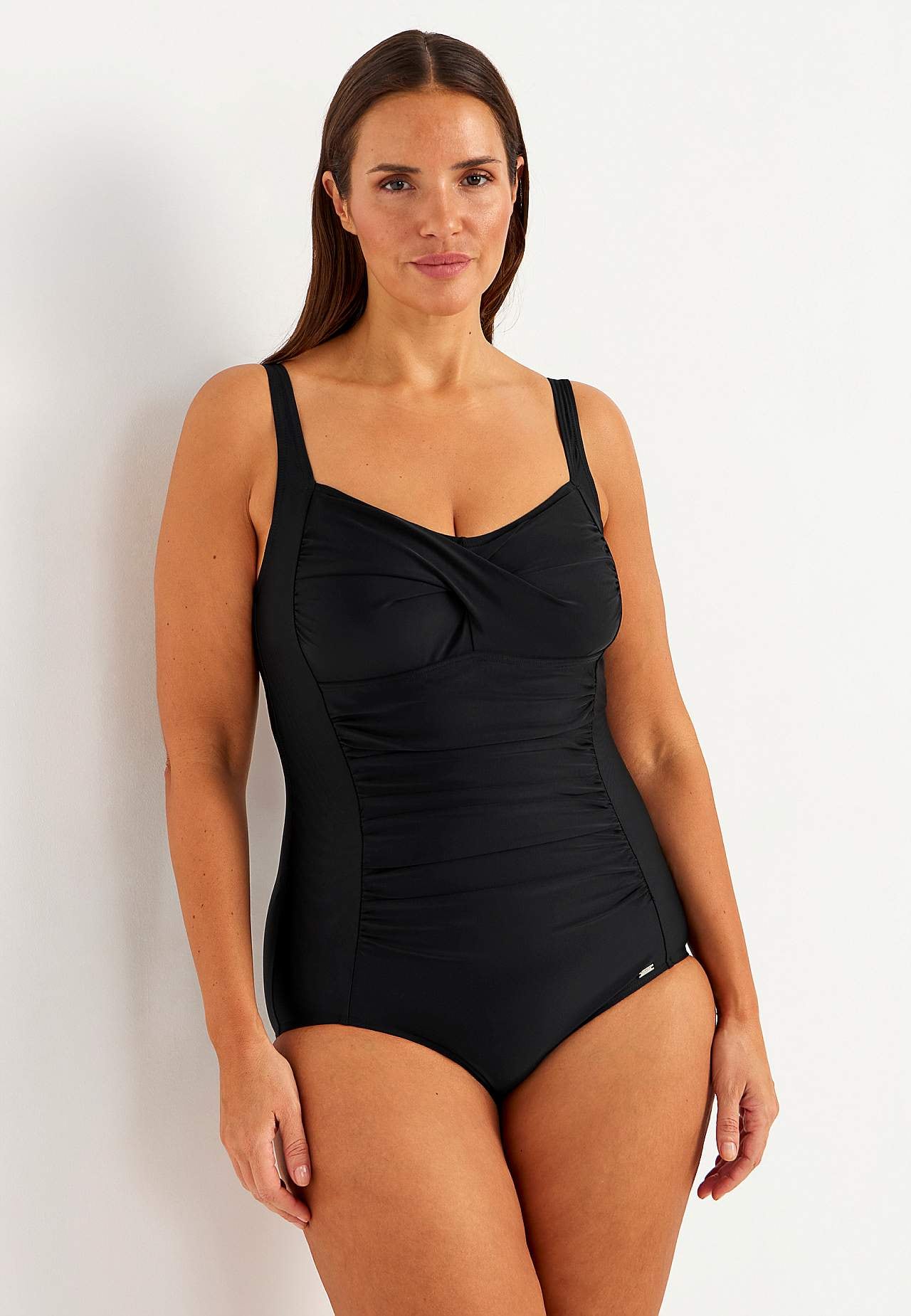 Uimapuku muotoiluvaikutuksella, joka veistää ja korostaa kauniita muotojasi ja siluettiasi. Poimutettu, vartaloa imarteleva yläosa topatulla kupilla. Tyylikäs uimapuku muotoilueffektillä. Sisäänrakennettu rintaliivitoppi resorilla rintojen alapuolella ja irrotettavalla toppauksella. Imartelevat laskokset edessä. Säädettävät... Lue lisää