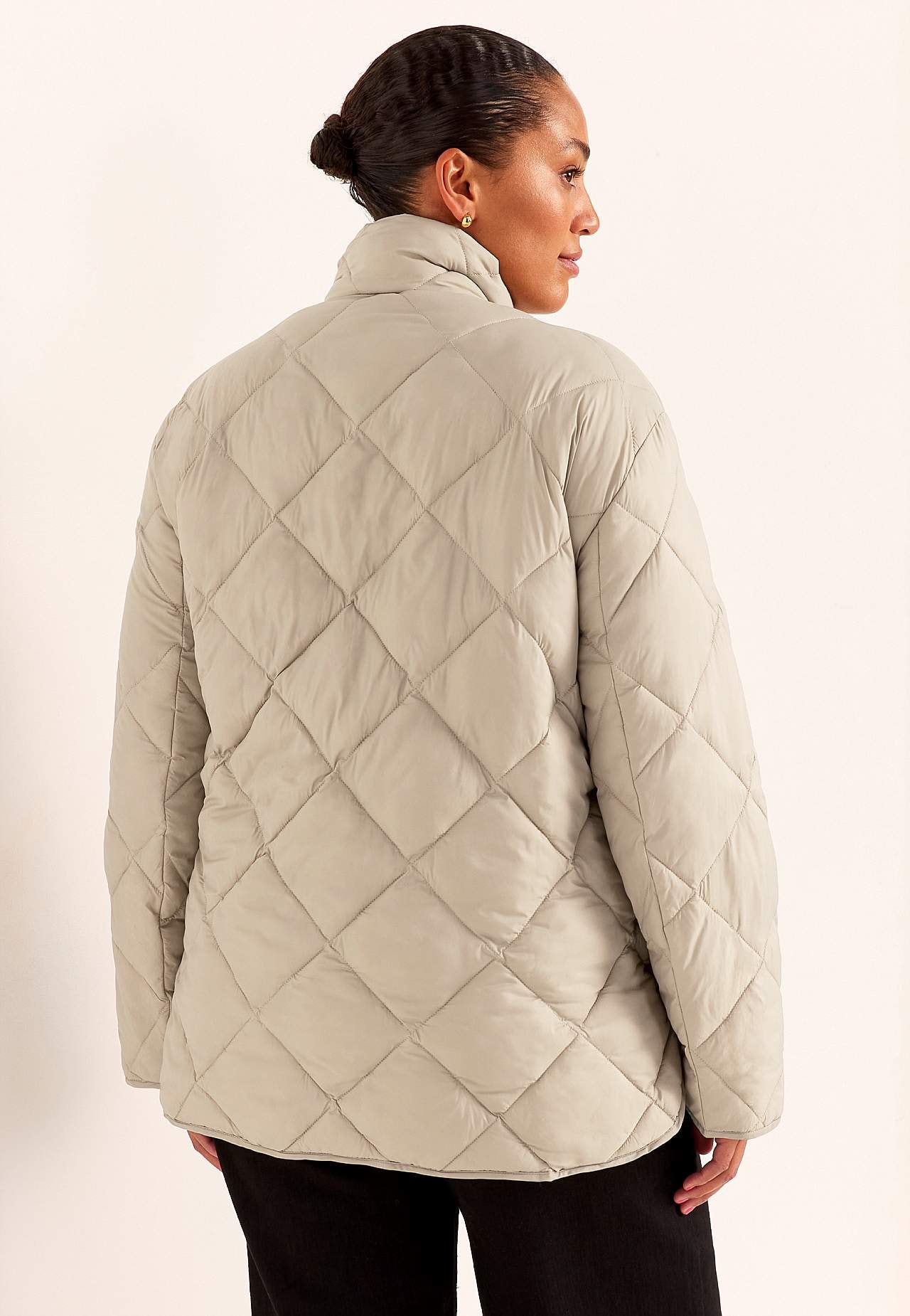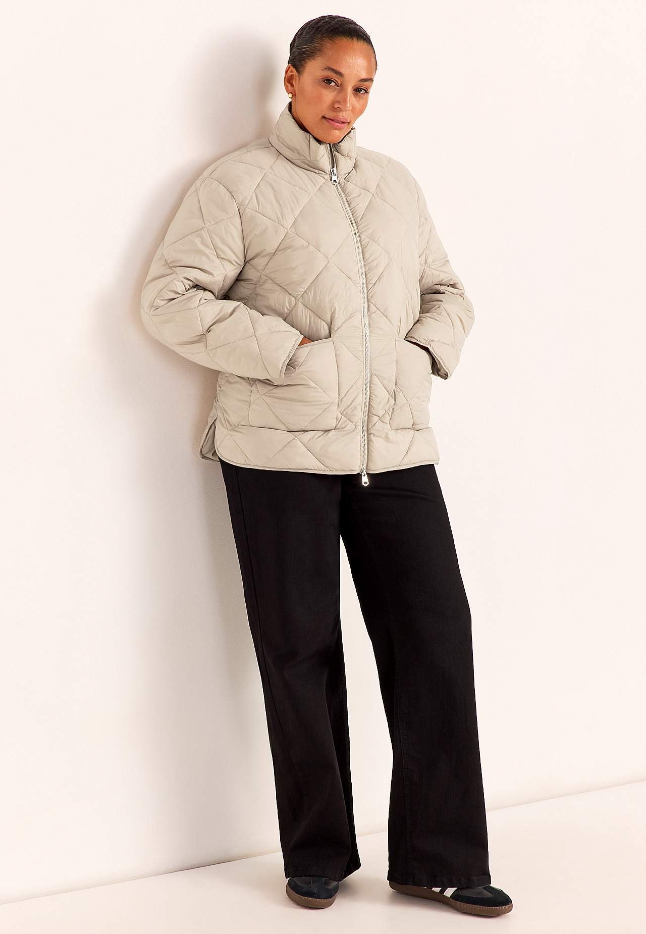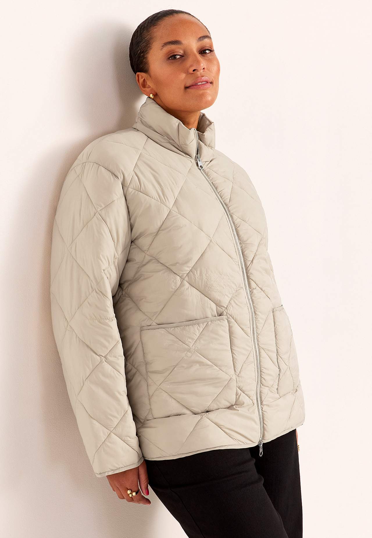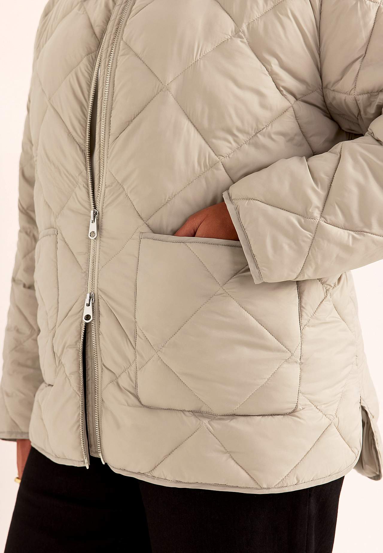 Täysin vuorattu takki tyylikkäällä, rennolla muotoilulla. Hieman kiiltävä pinta ja untuvan kaltainen, pehmeä, pörröinen täyte. Tikattu ruutukuvio. Suora istuvuus. Mukava, mukava pystykaulus. Hieman matalaolkainen olkapää. Pitkät, suorat hihat hienolla helmalla hihansuissa. Kaksisuuntainen vetoketju tuuliläpällä. Etutaskut.... Lue lisää